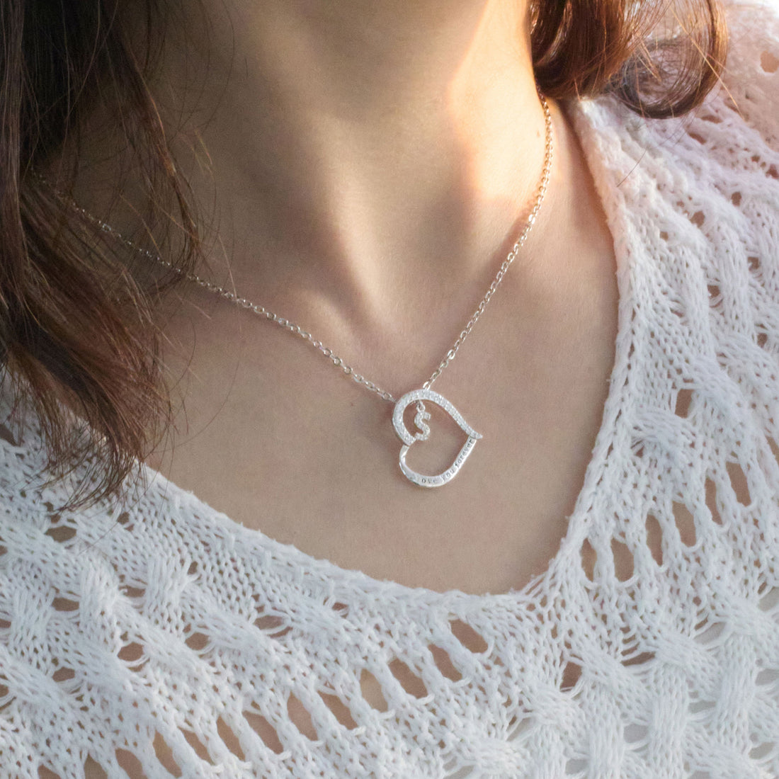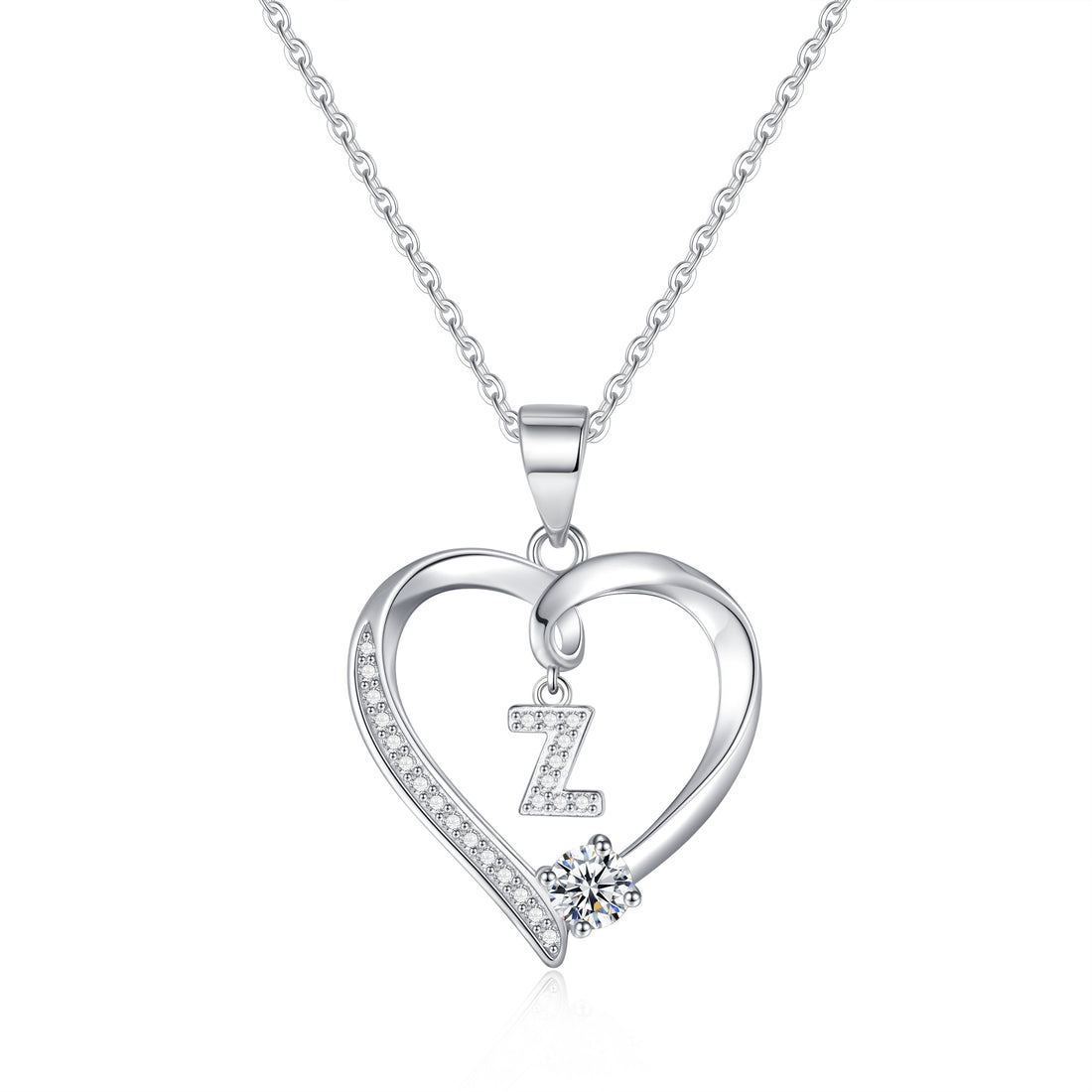 Silvery necklace, heart-shaped letter necklace, 925 silver plated zircon pendant necklace, women's jewelry gift, Valentine's Day gift for women's wives and girls