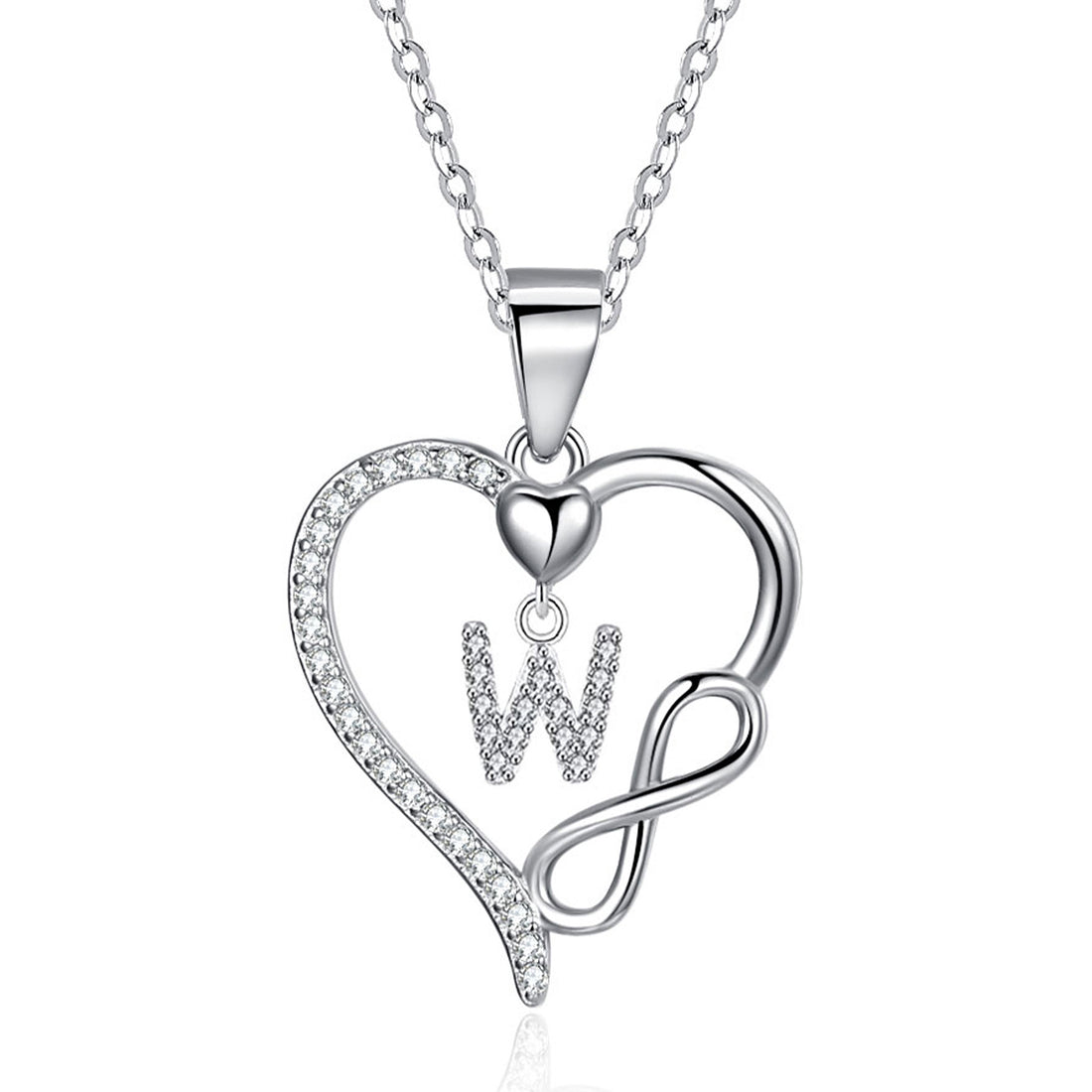 Silvery necklace, heart-shaped pendant with first letter necklace, 925 silver plated zircon pendant necklace, women's jewelry gift, Valentine's Day gift for women's wives and girls