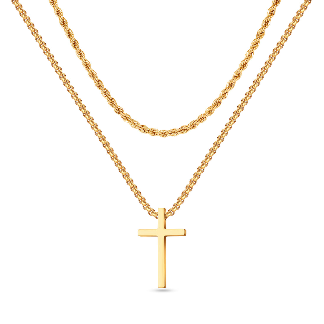 Stainless steel cross necklace, styled D-Figaro&rope chain