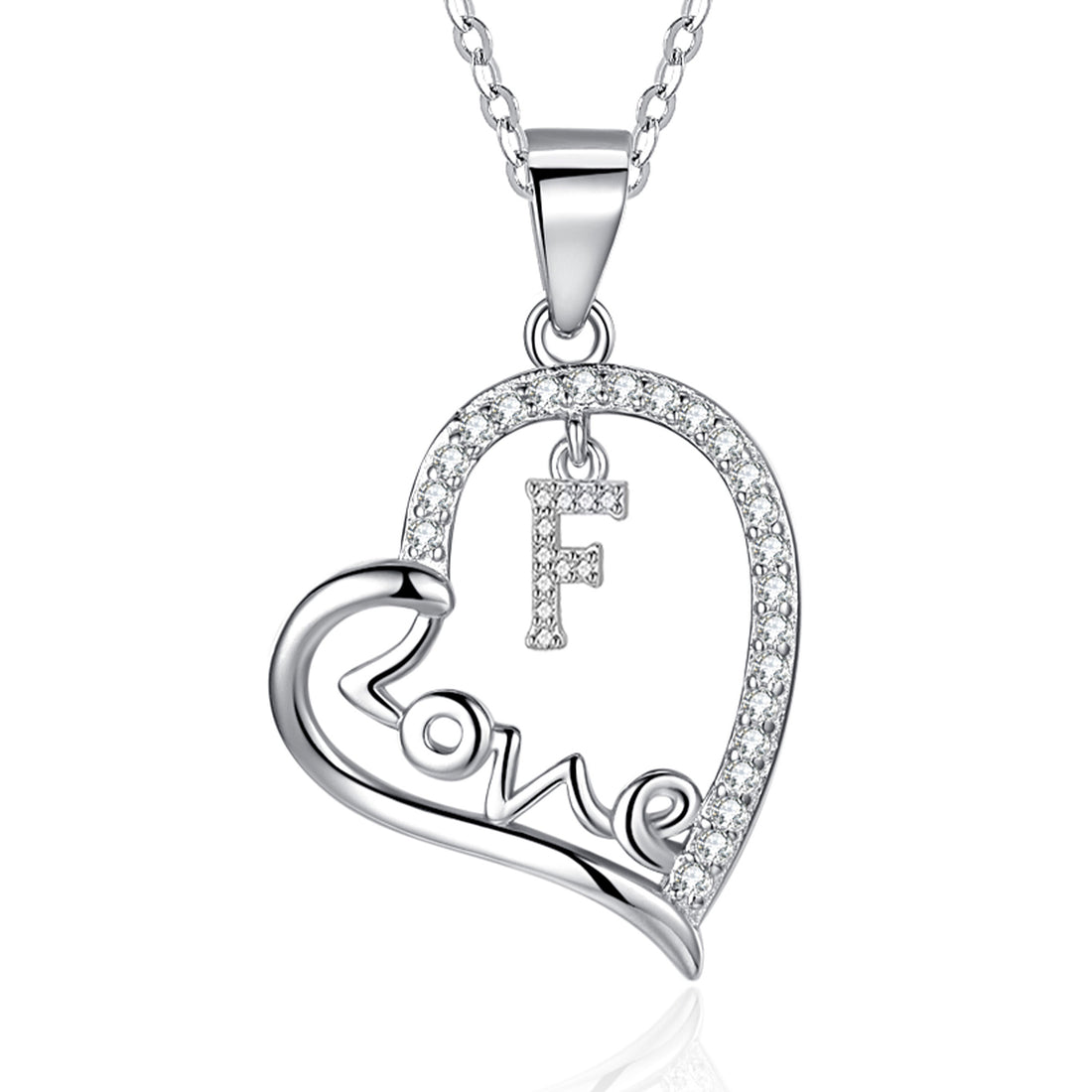Silvery, heart-shaped zircon initial letter pendant necklace, women's jewelry, a gift for girls;