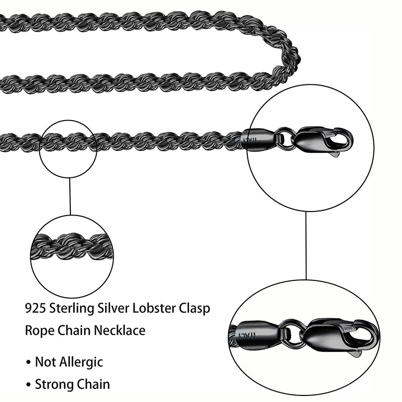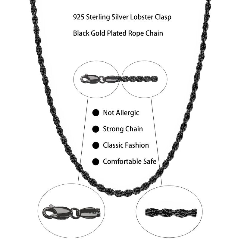 Black, 2mm/2.5mm chain necklaces, 16\18\20\22\24\26\30inch