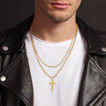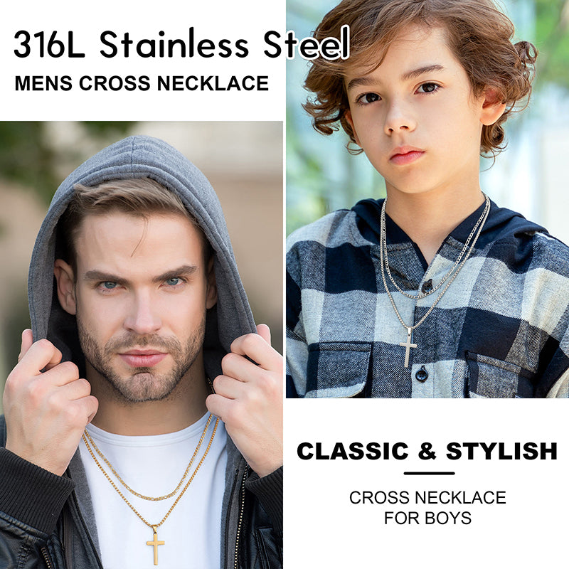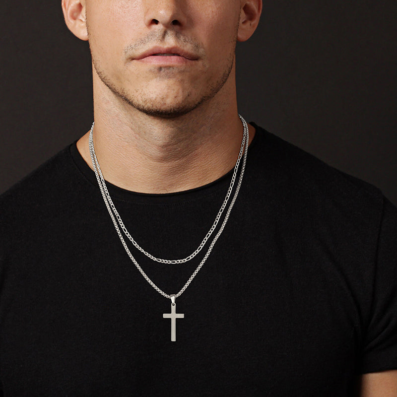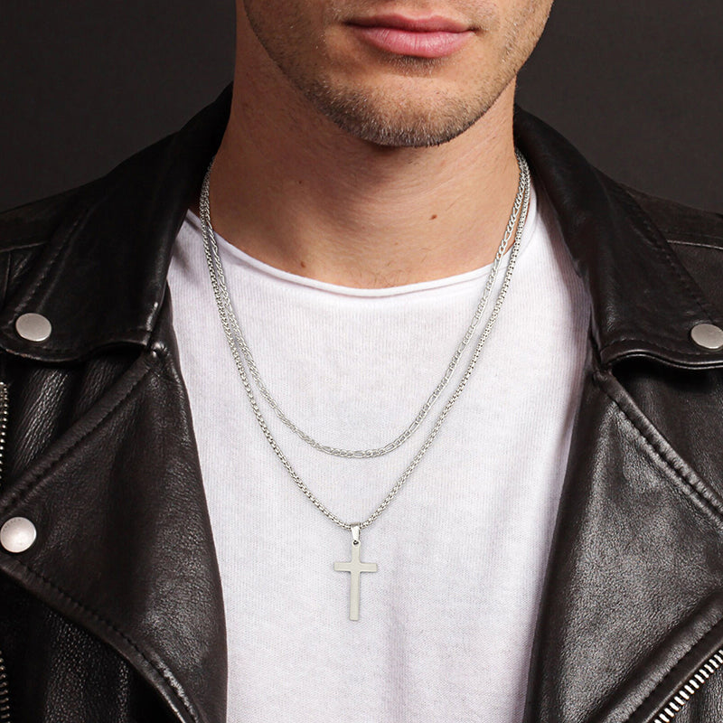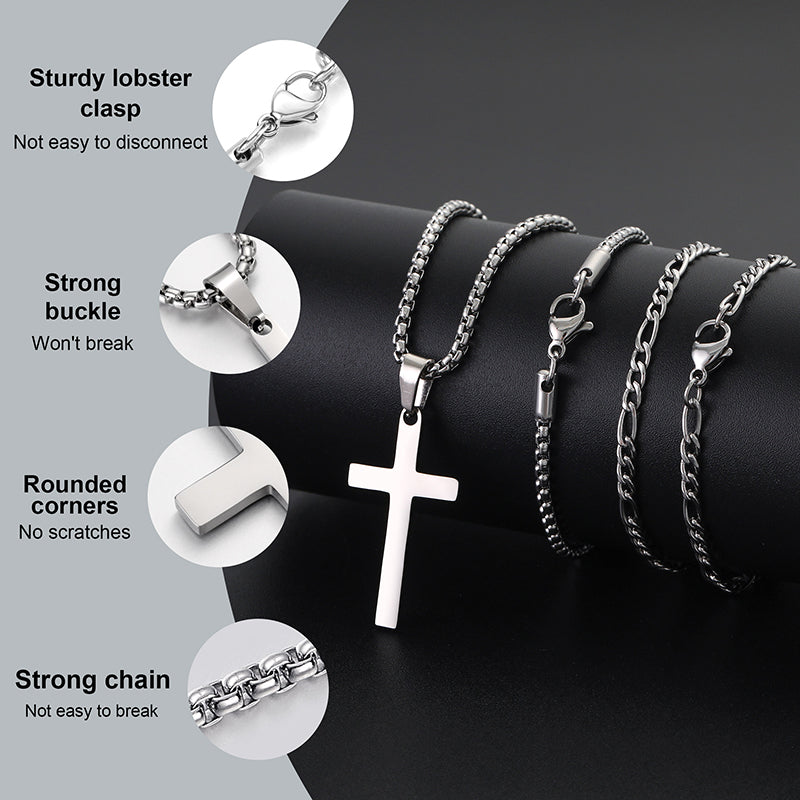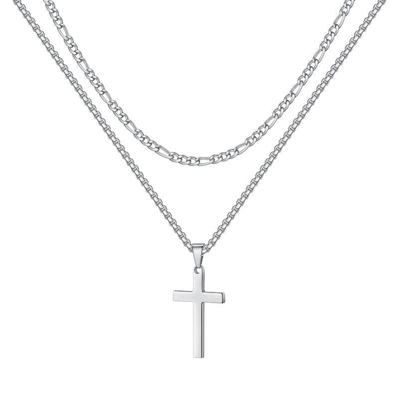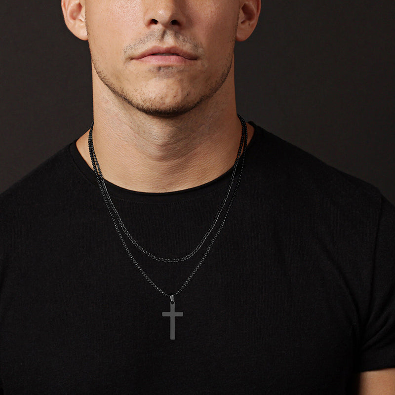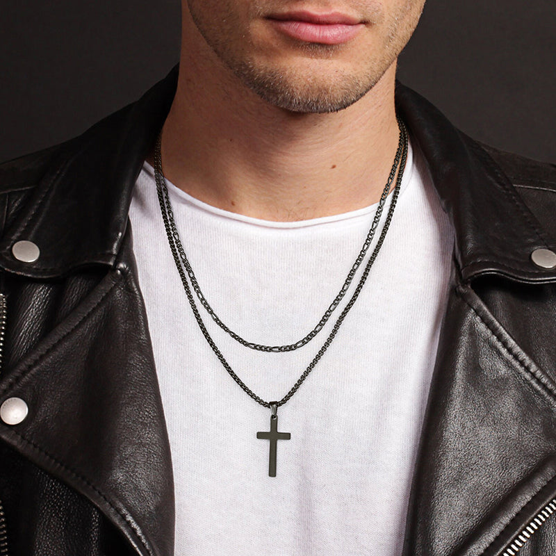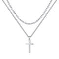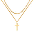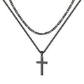 Black/Golden/Silvery, Short Gallo Chain, Extended Box Chain, Double Layer Chain, Cross Tag Necklace, Style E2- Figaro and Box Hole