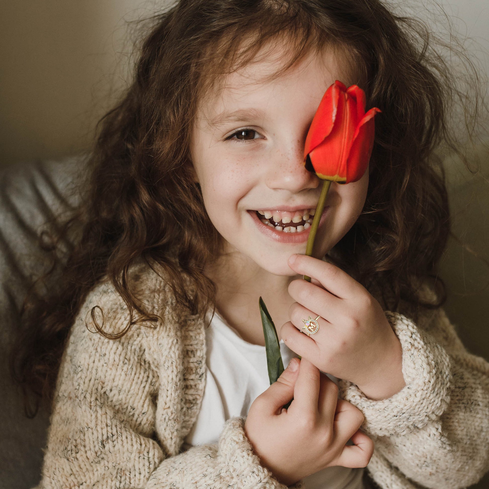 Adjustable Ring: A delicate first letter ring suitable for young girls, easily and comfortably adaptable to various finger sizes, stackable, showcasing your charm with children's jewelry.