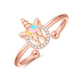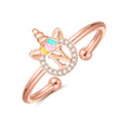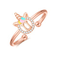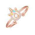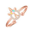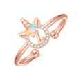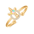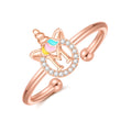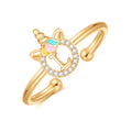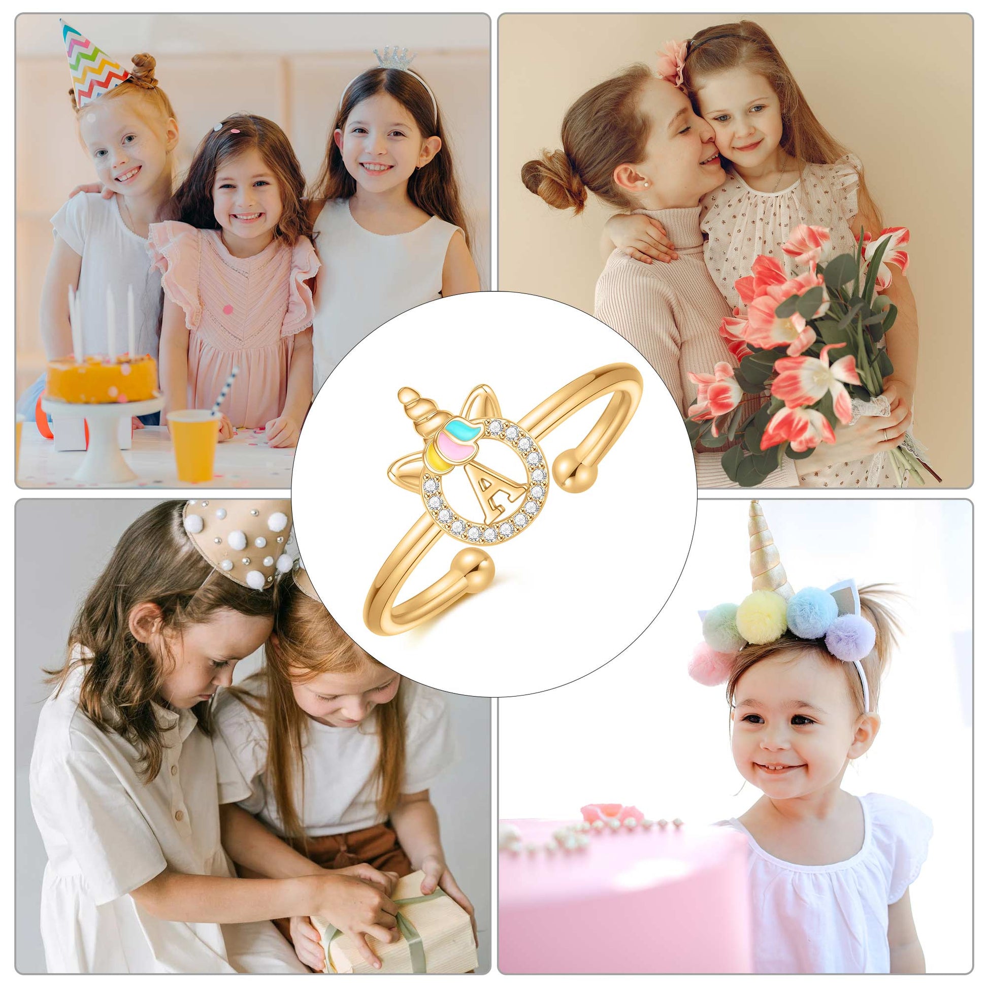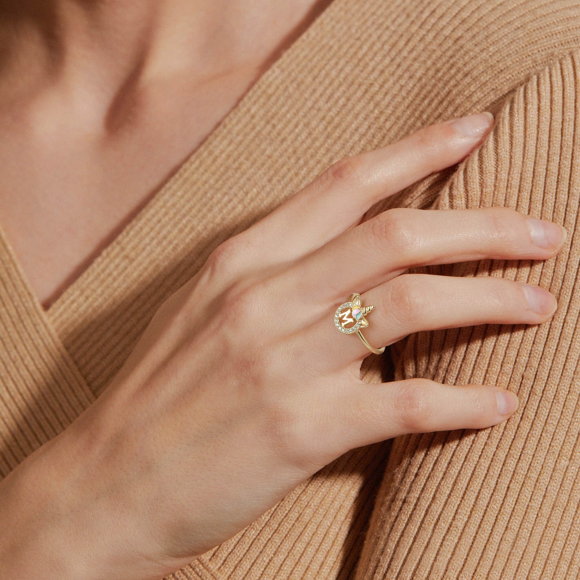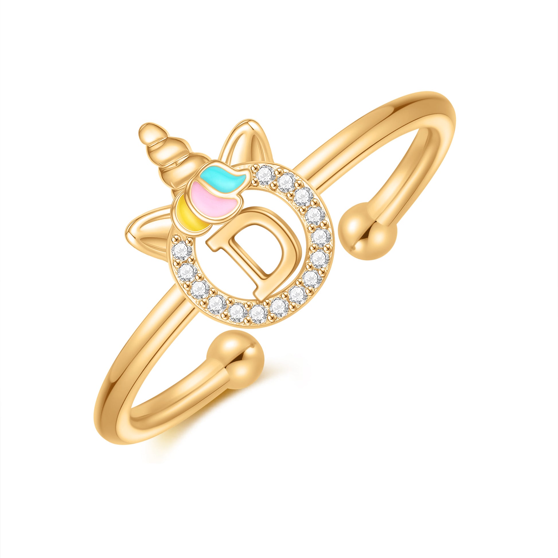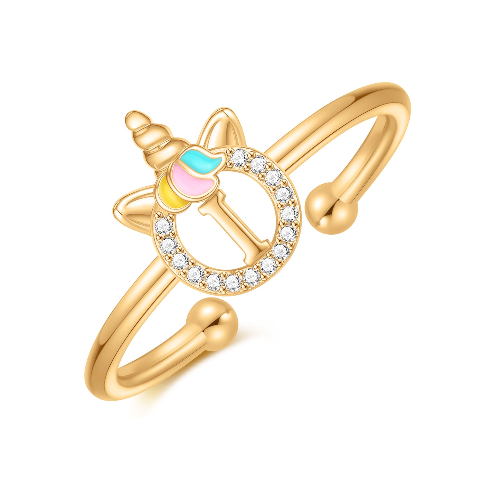 Children's jewelry, golden/rose golden/silvery ring, exquisite unicorn letter unicorn ring, 14K gold-plated/925 silver plated cute ring, hypoallergenic ring, suitable for teenage girls as a gift