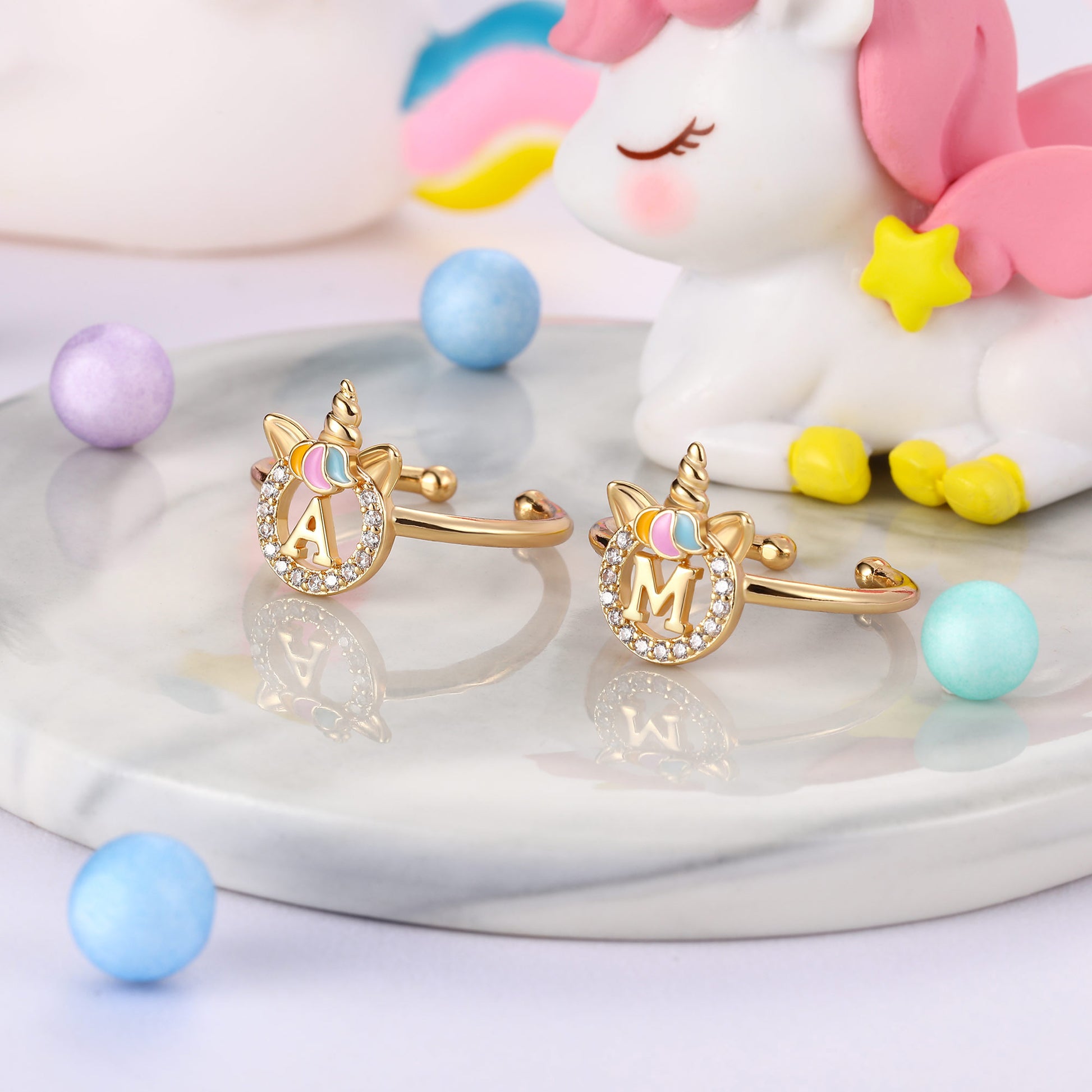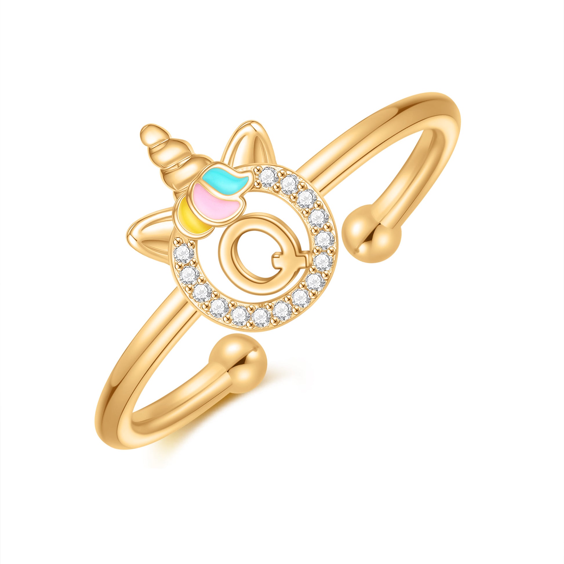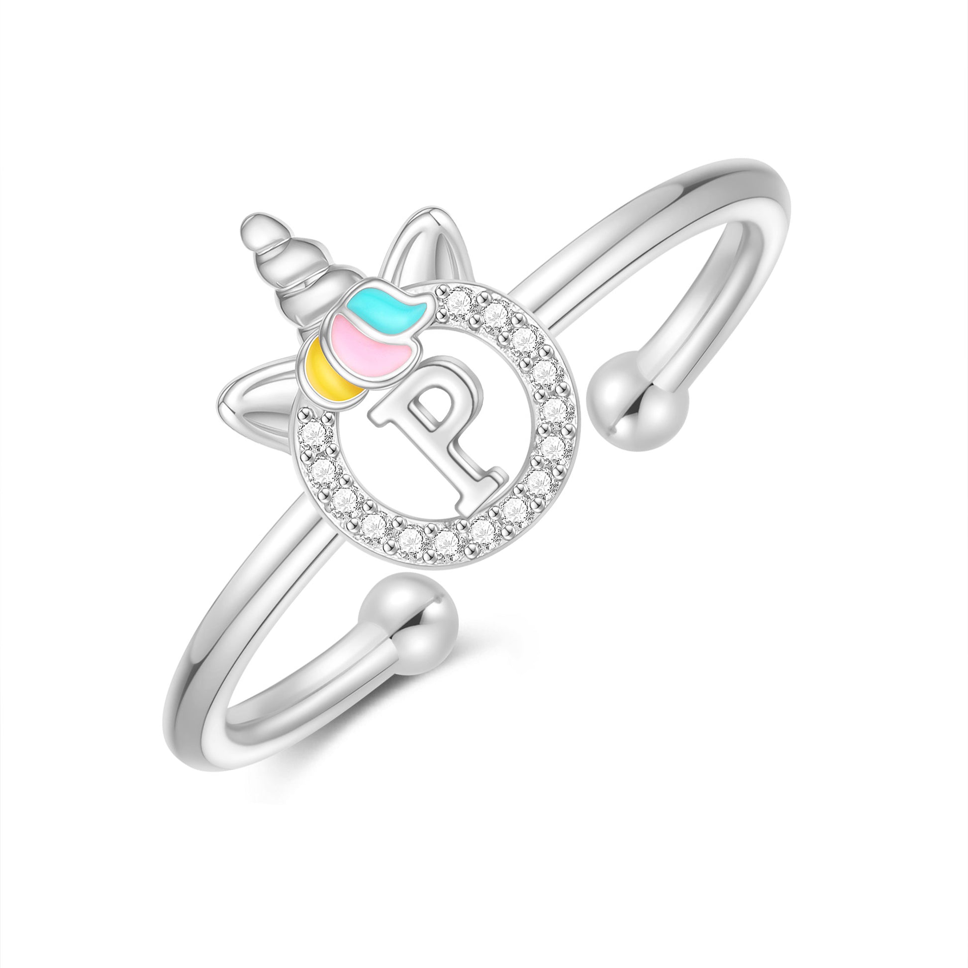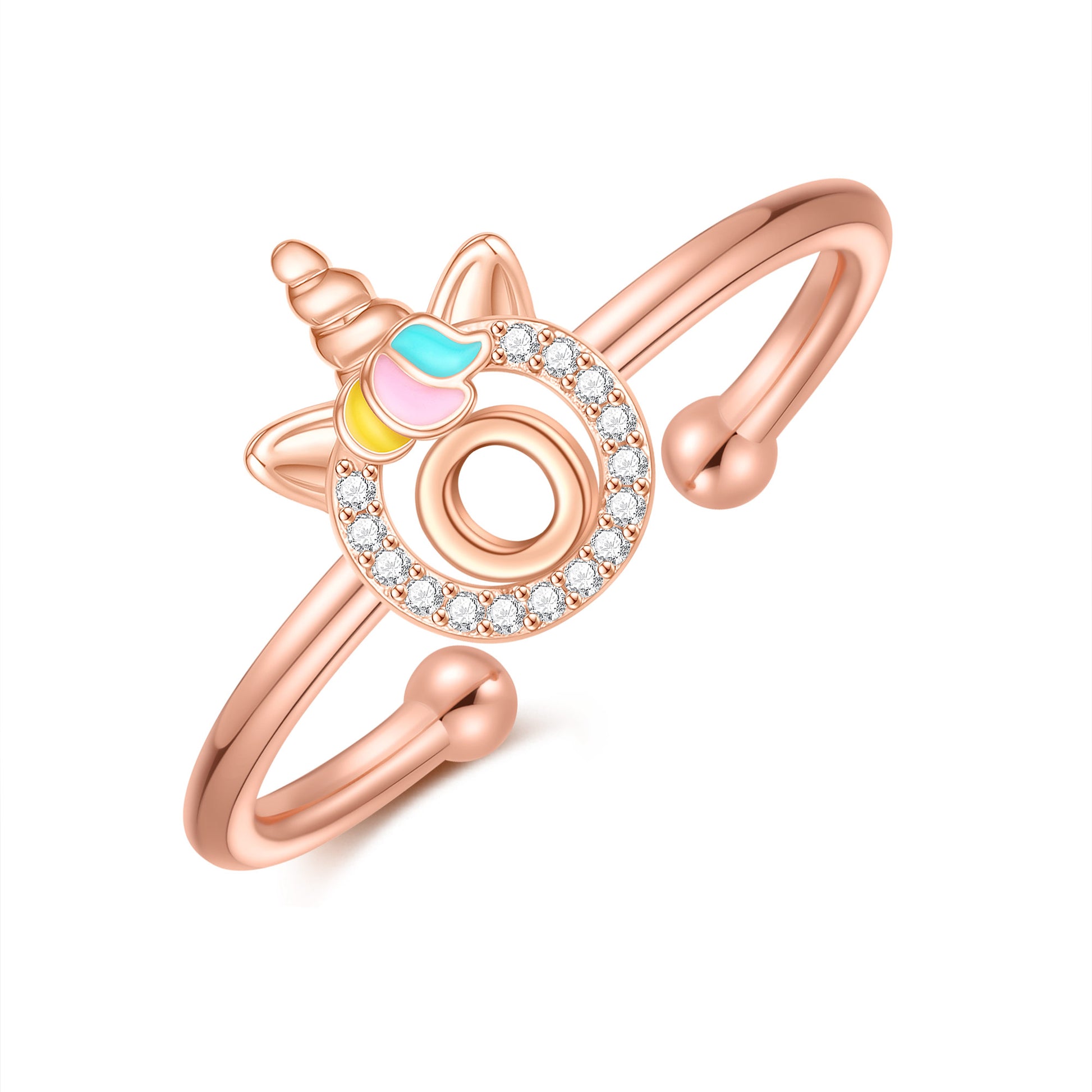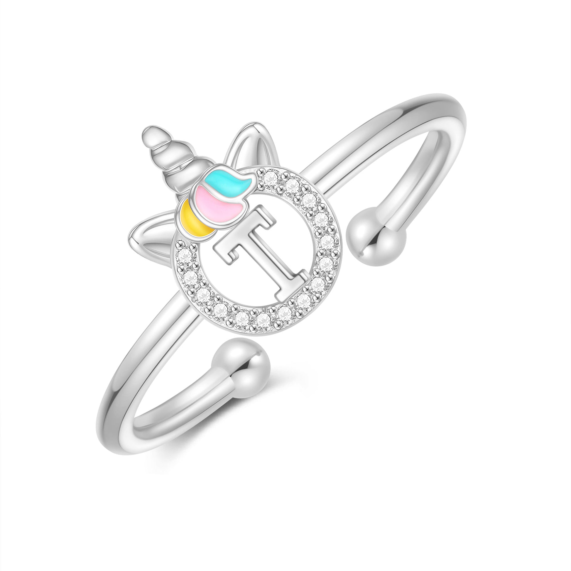 Unicorn Jewelry: Unicorns symbolize justice and bravery, as well as beauty, nobility, and purity. The unicorn girl's first letter ring prays for your happiness, good luck, health, and safety.