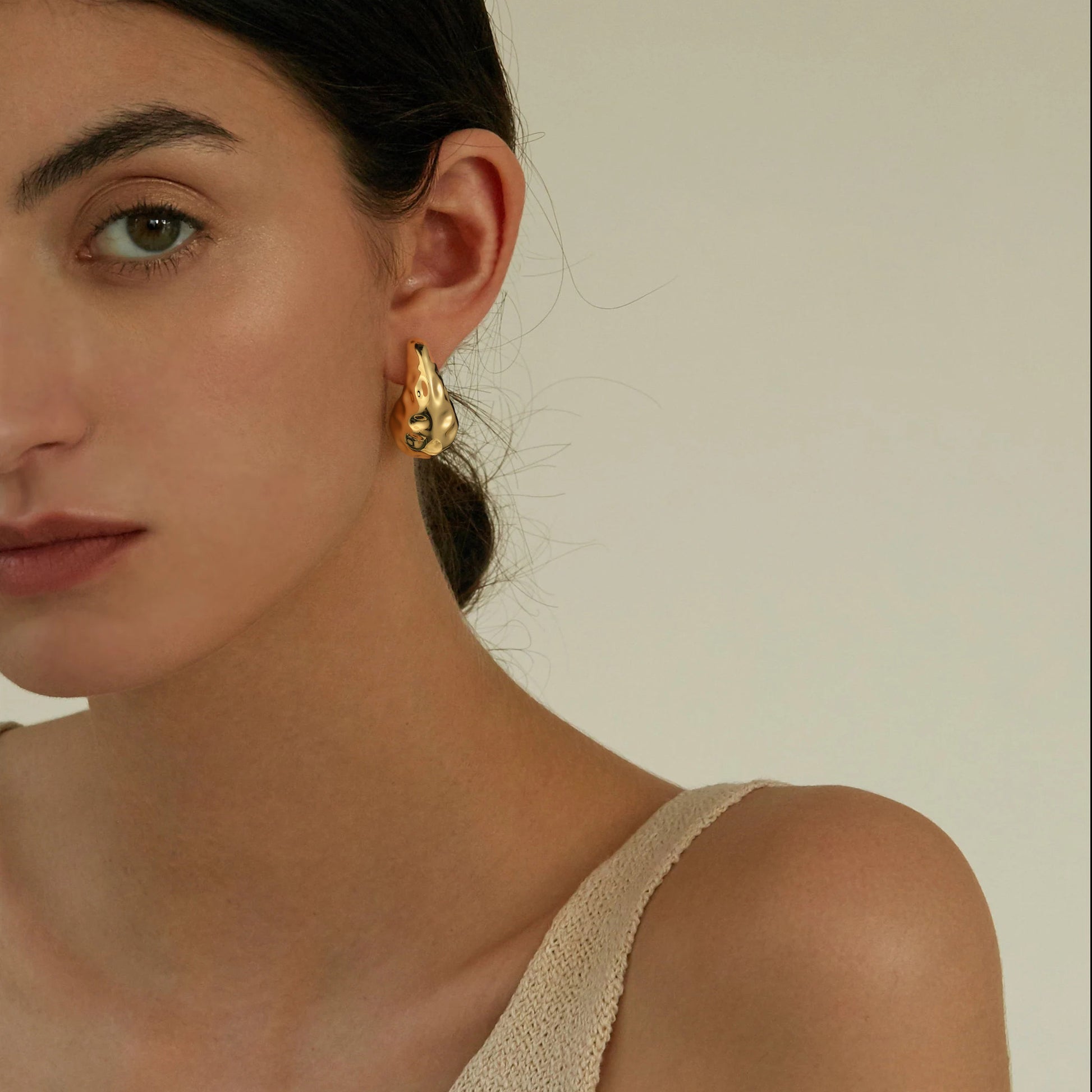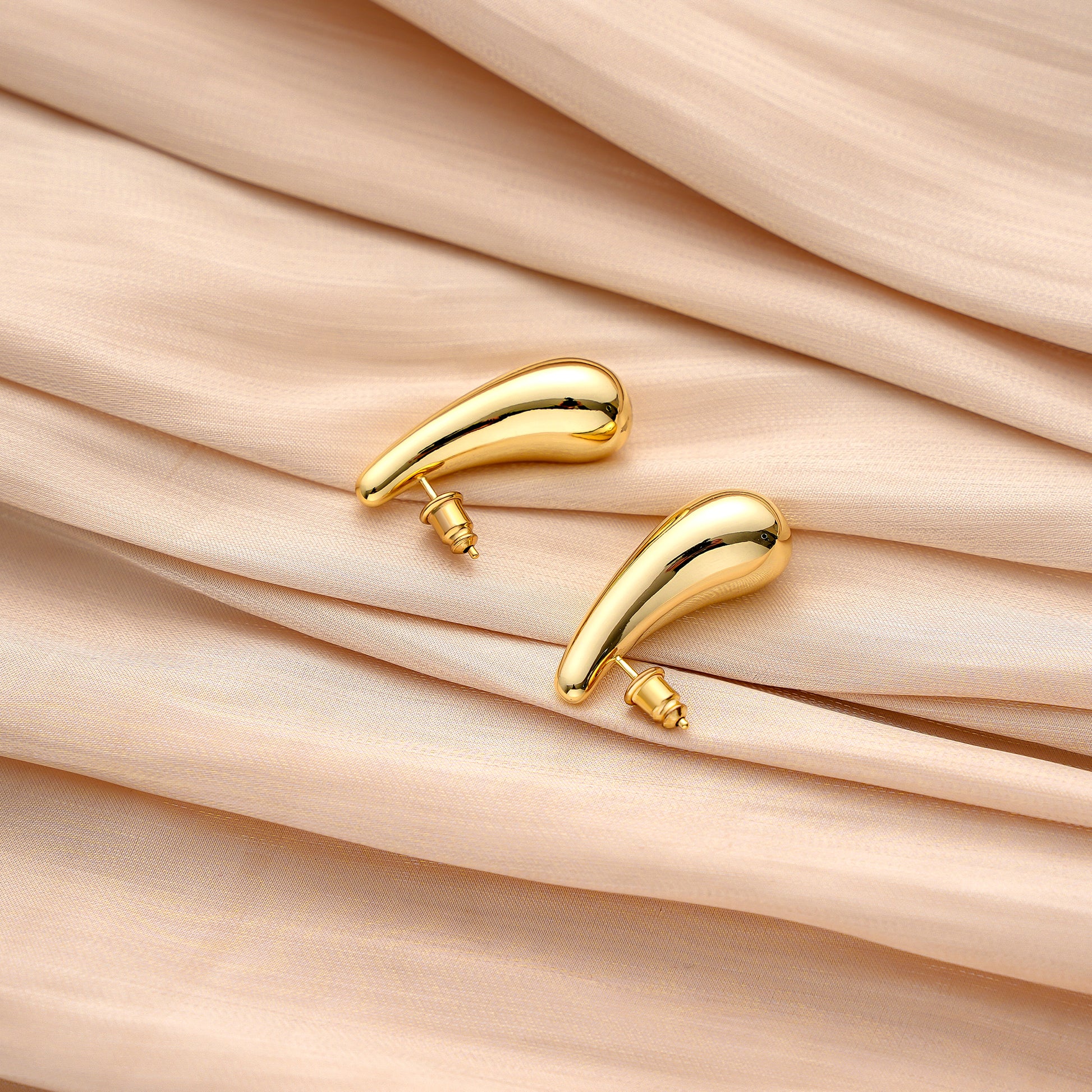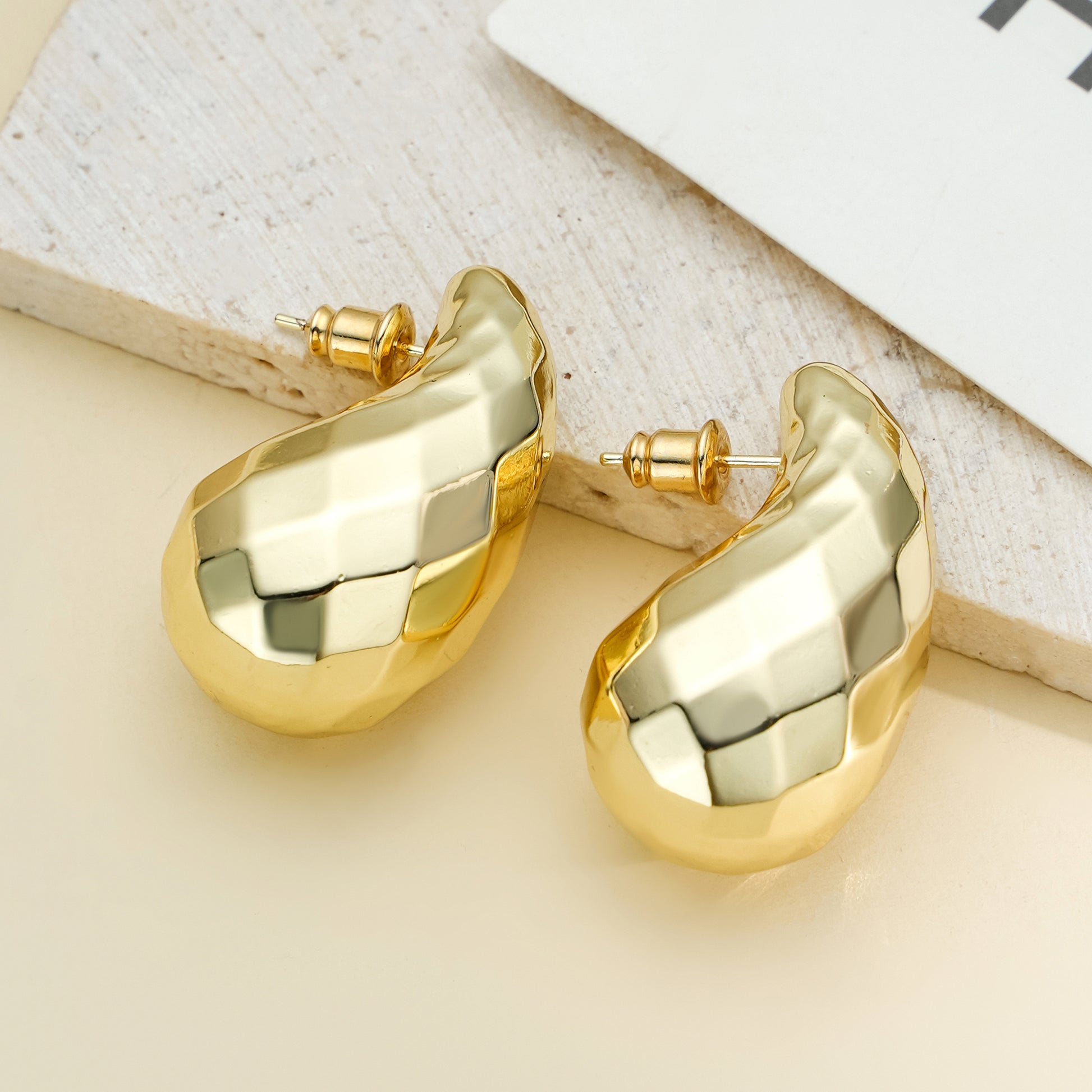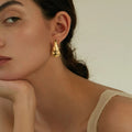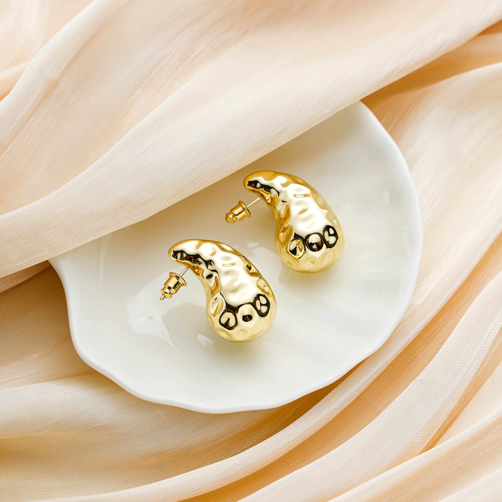 Golden, broad bean-shaped earrings