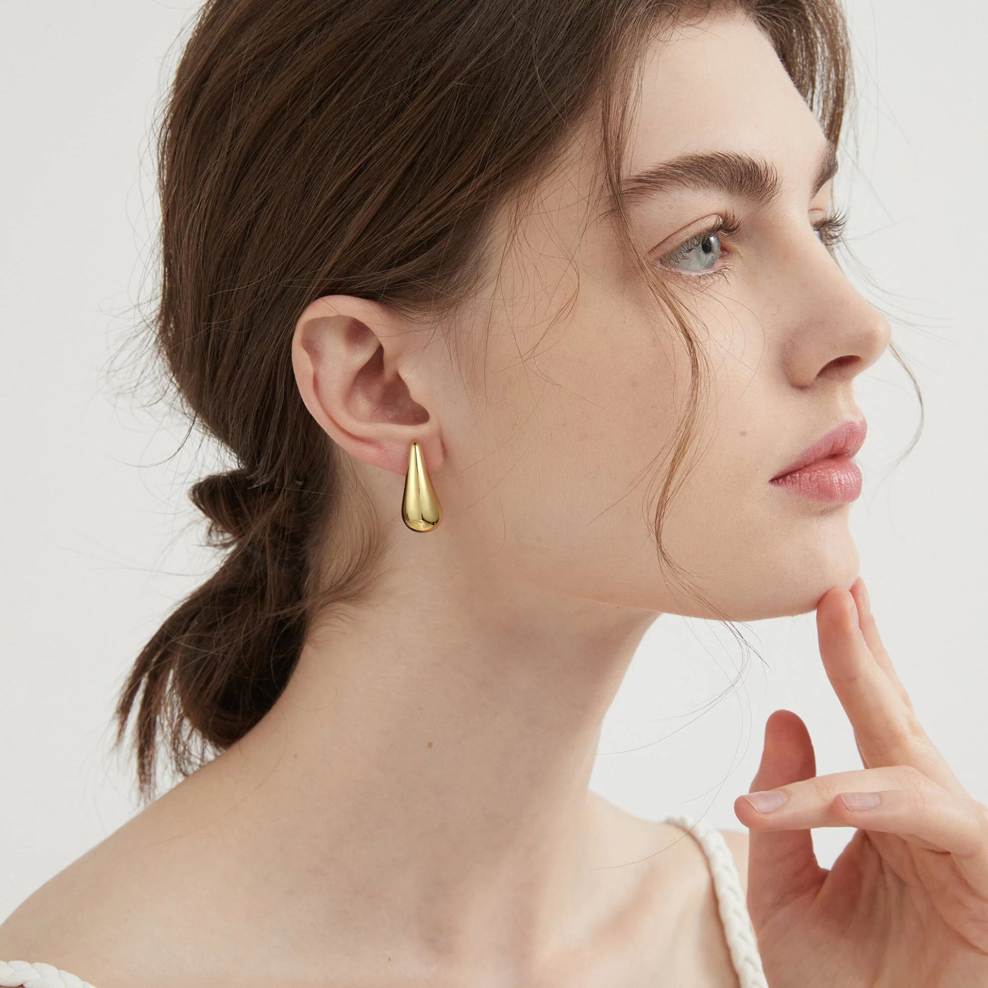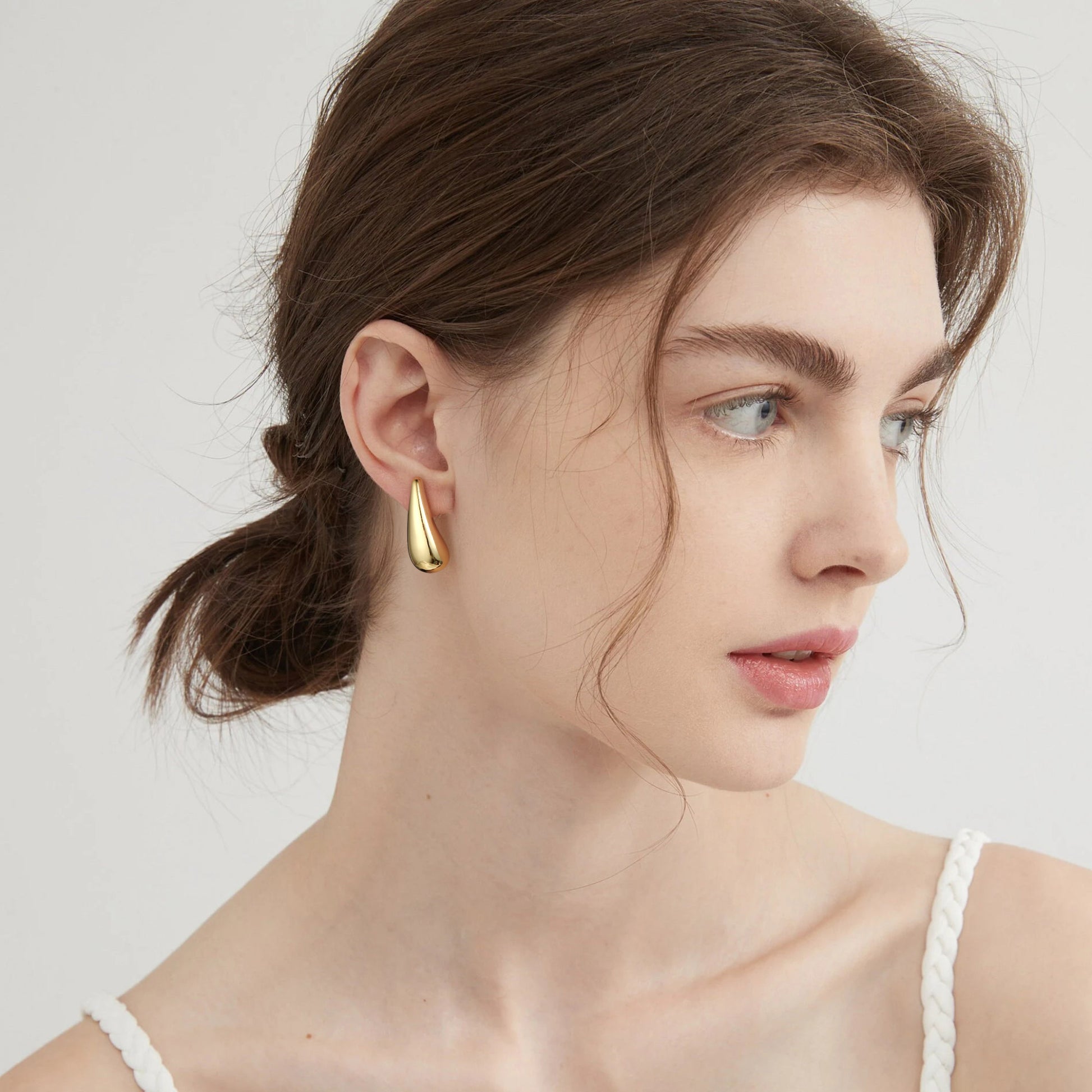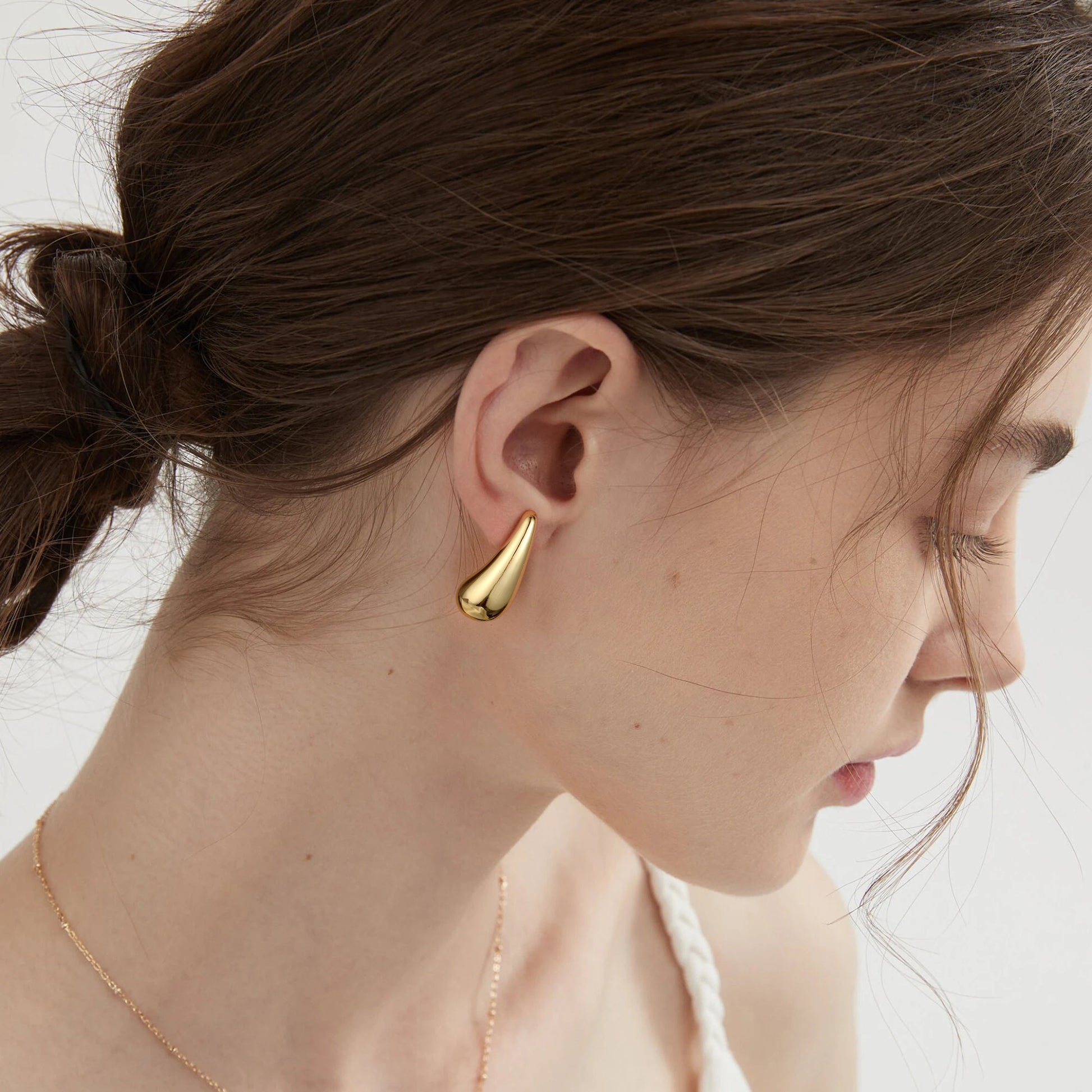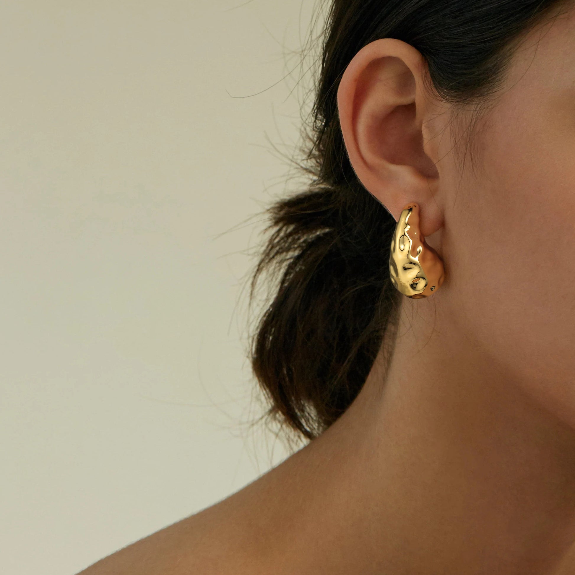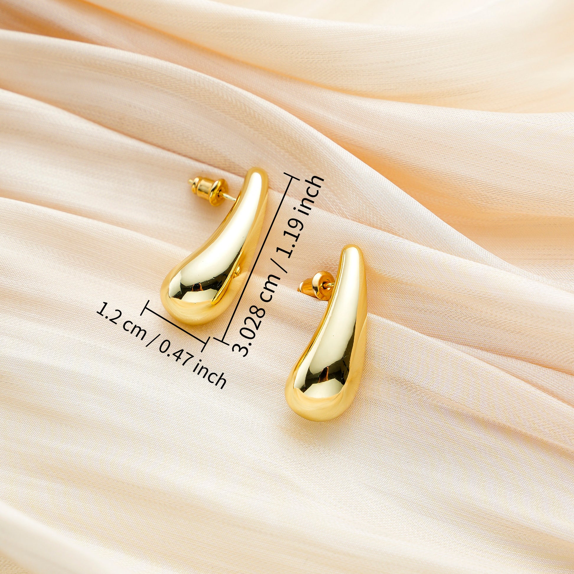 Golden, broad bean-shaped earrings
