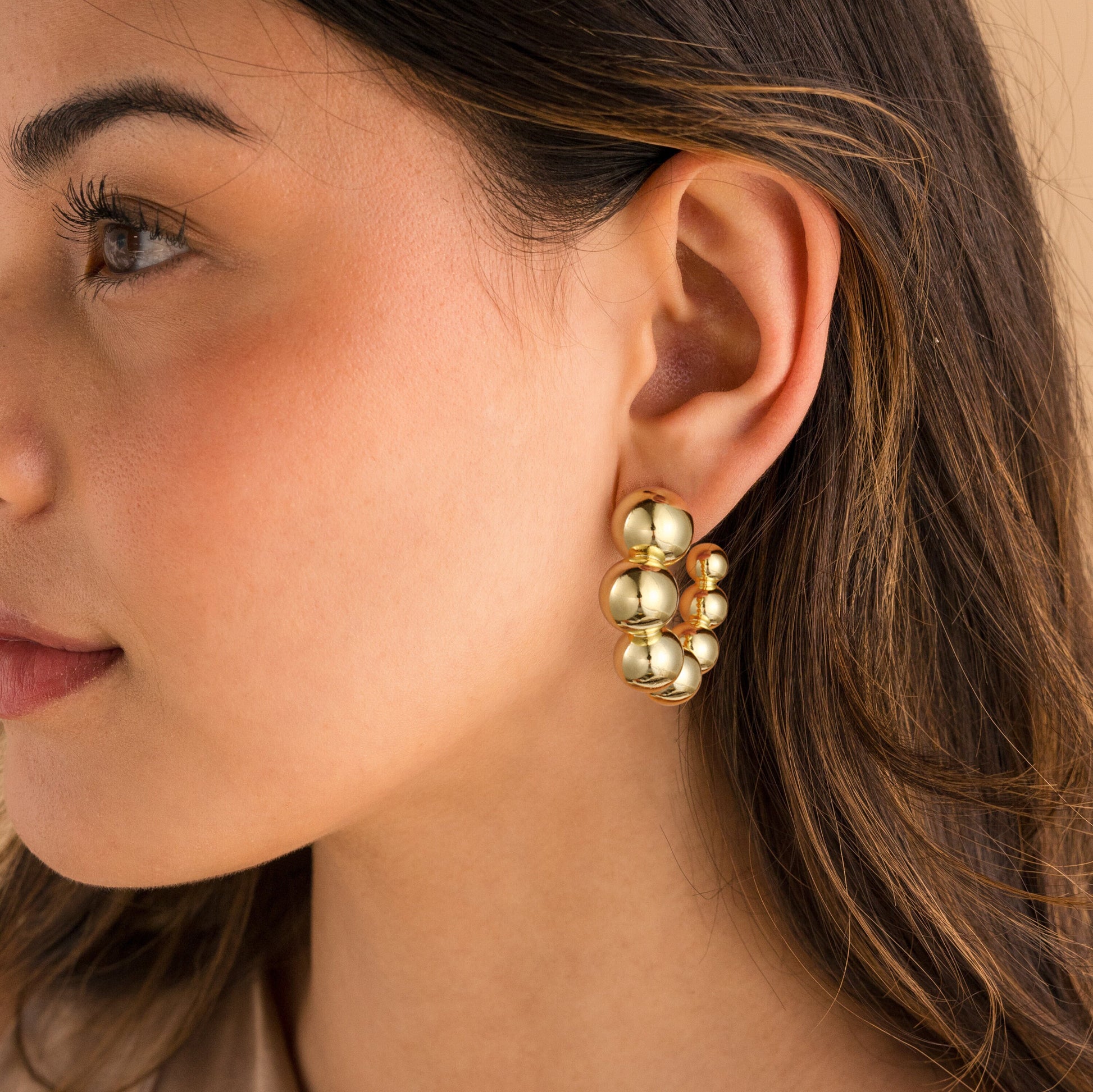 【Fashionable Beaded Earrings】: These beaded earrings can be worn alone to create a stylish look, or paired with other to create a unique style. The thick golden earrings are simple and elegant, a perfect addition to your jewelry collection! 【Hypoallergenic】: 14K golden-plated, these thick golden earrings are hypoallergenic, suitable for sensitive ears, and do not fade easily. Lightweight and comfortable. 【Fashionable E】: The golden earrings are designed simply, lightweight, suitable for all-day daily wear. You can freely mix and match according to your preferences, adding a charming to your various styles. 【Perfect Gift for Women】: Exquisitely packaged, it can be given at any time. A beautiful and practical gift for her,, wives, and mothers on special days. 【After-sales Service】: If there are any problems with the thick golden earrings, please feel free to contact us. will solve your problem within 24 hours.