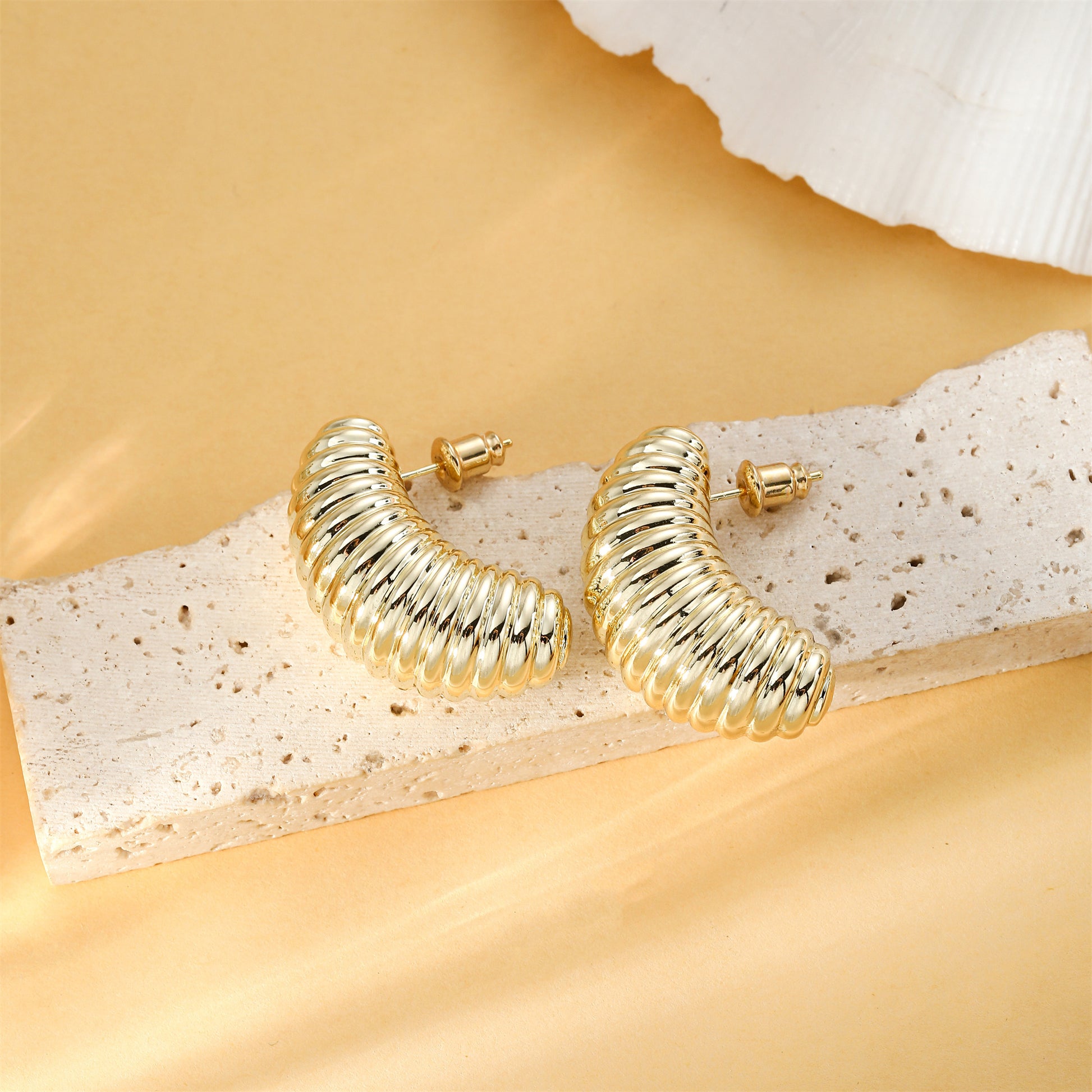 【Low Allergy】: 14K golden-plated, these thick golden earrings have low allergy, suitable for sensitive ears, and are not easy to fade. Lightweight and comfortable.