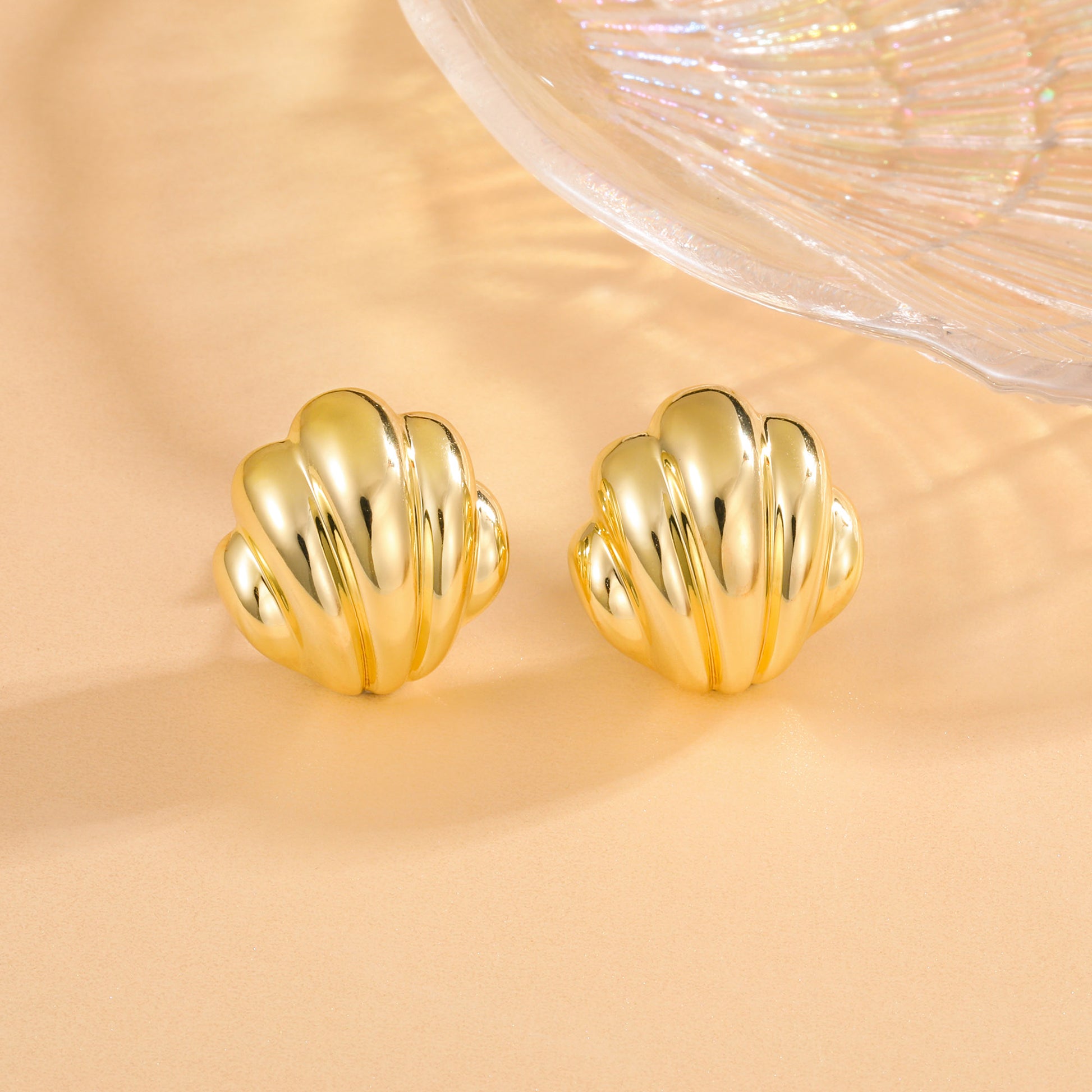 Golden, layered shell earrings