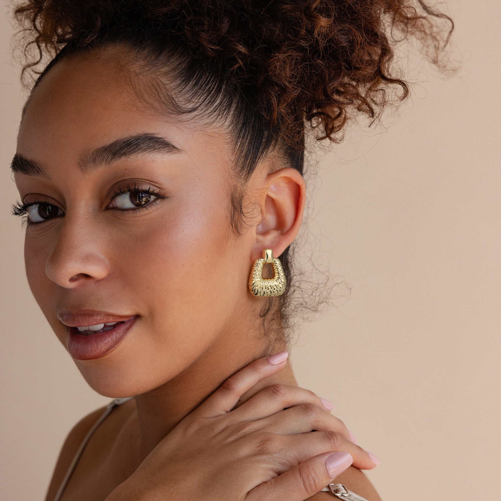 Golden, lightning pattern handbag-shaped earrings
