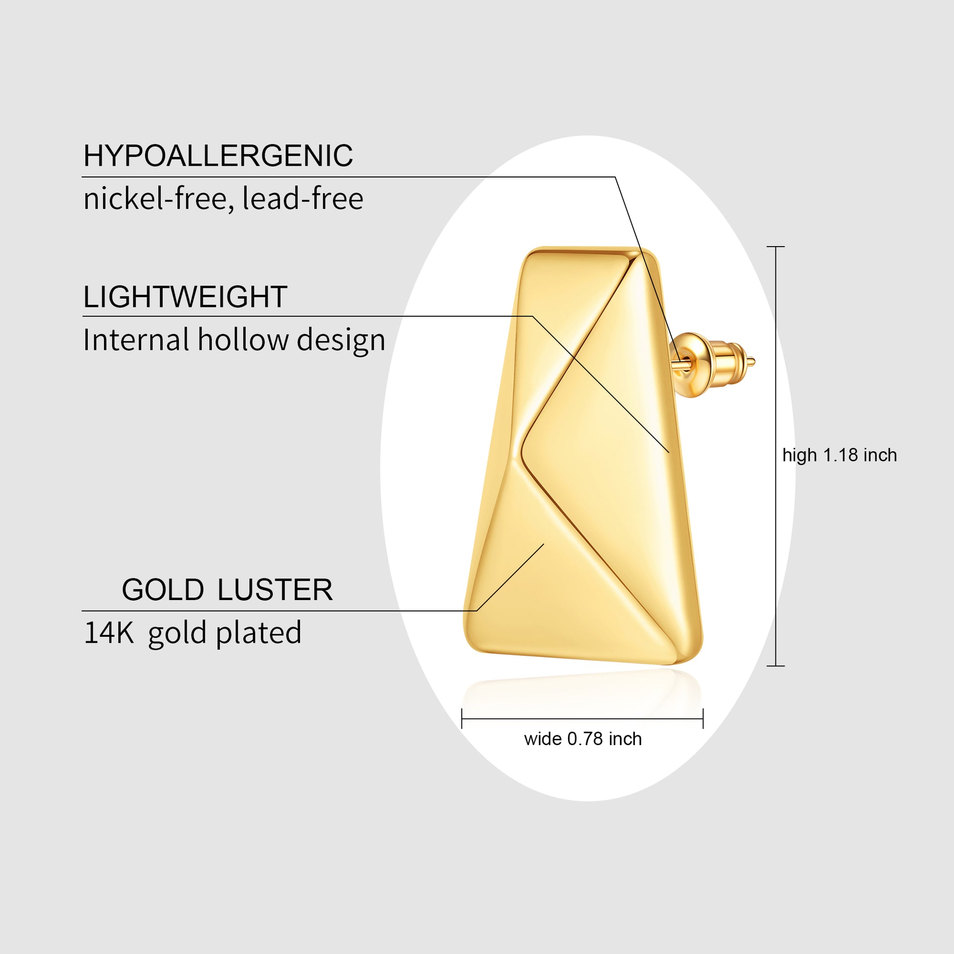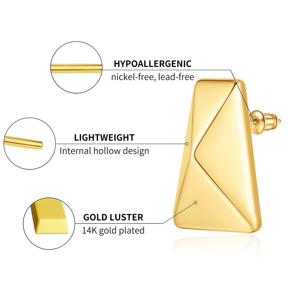 [Hypoallergenic, lightweight and comfortable] Light golden earrings are made of brass, plated with 14K golden, hypoallergenic and free of lead and nickel. Thick golden earrings are very friendly to women with sensitive skin. Personalized earrings will not lose their luster, and you can wear them every day.