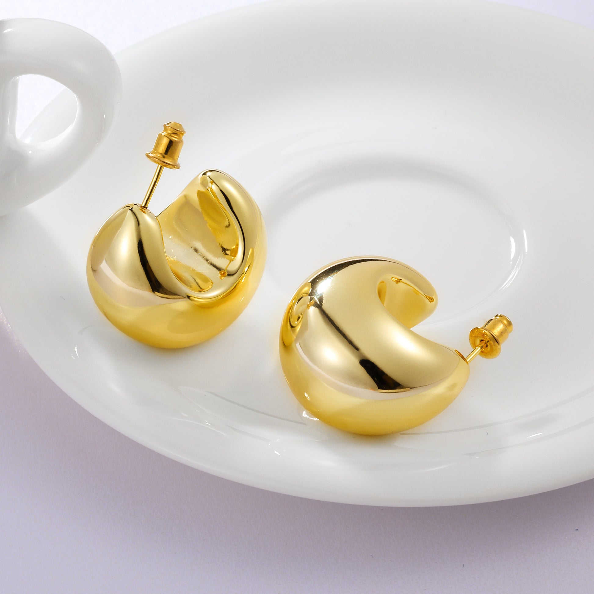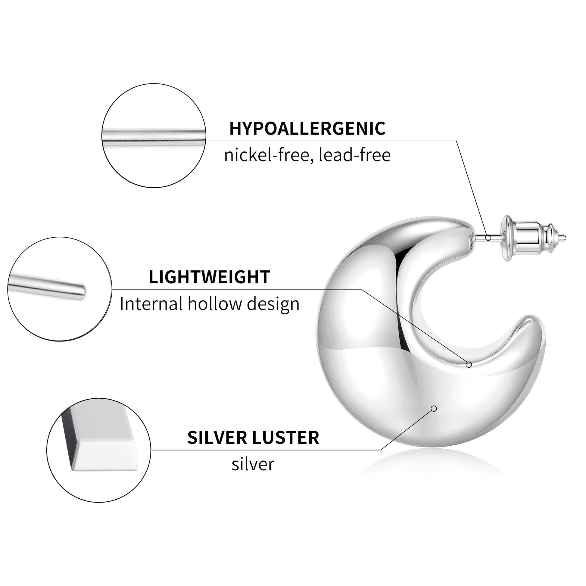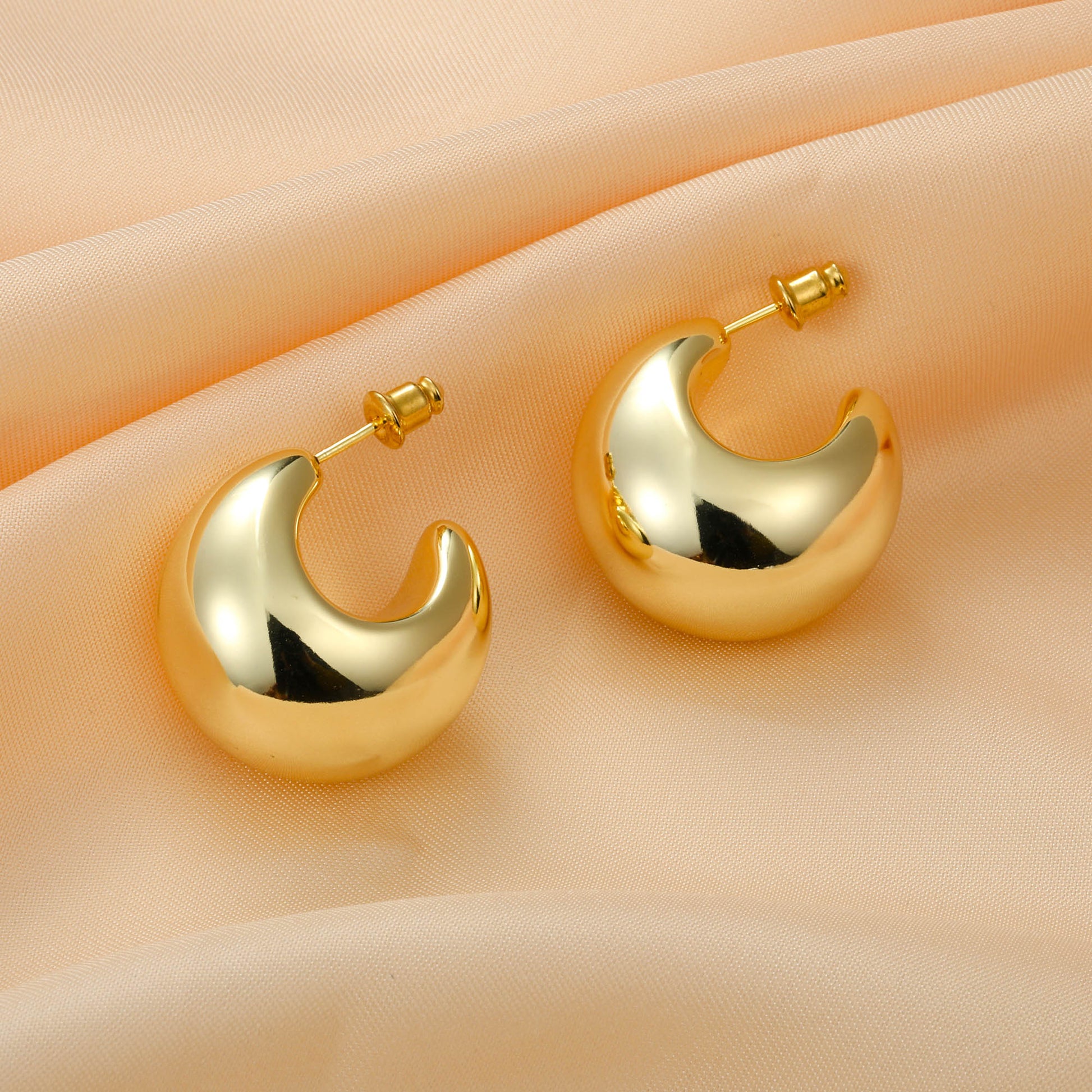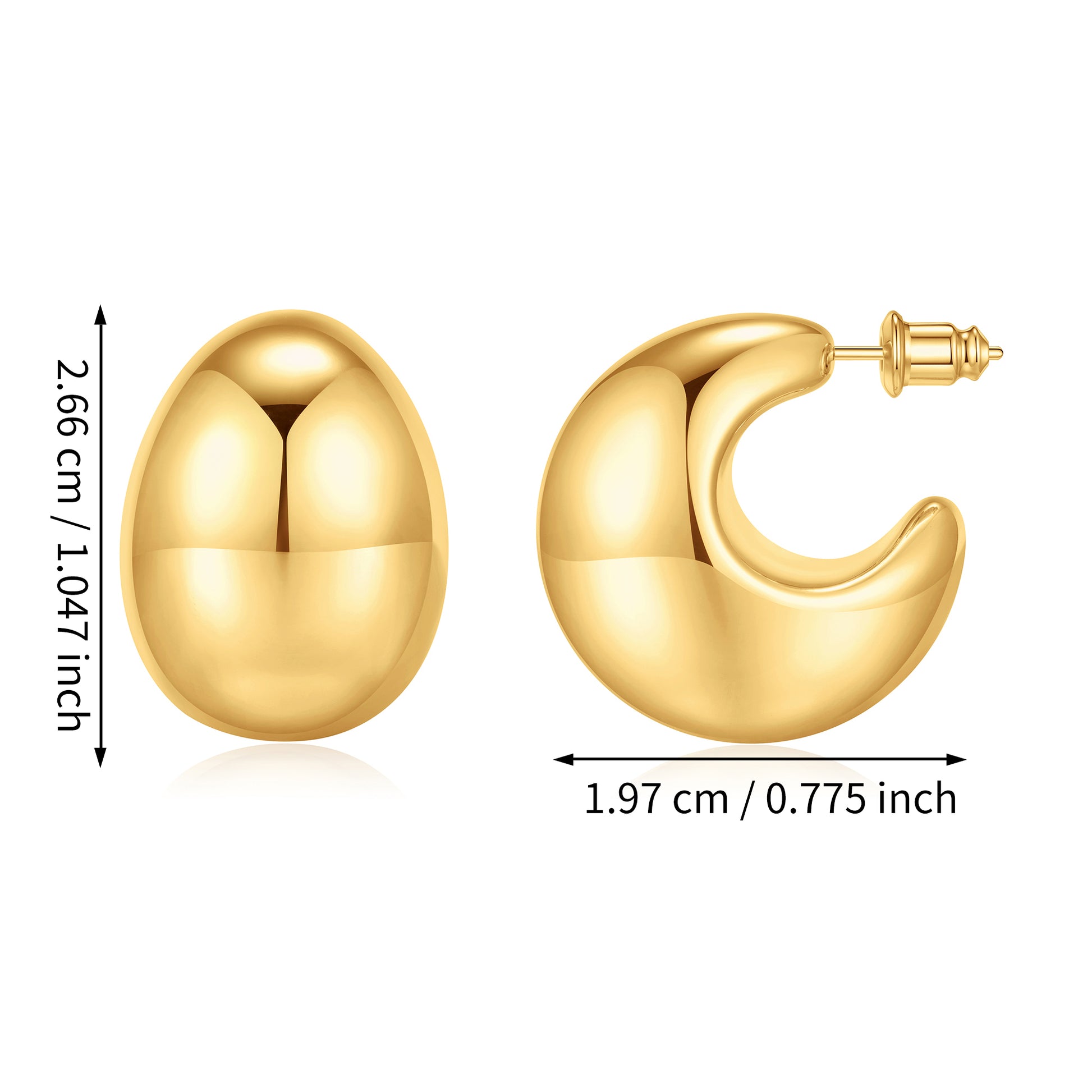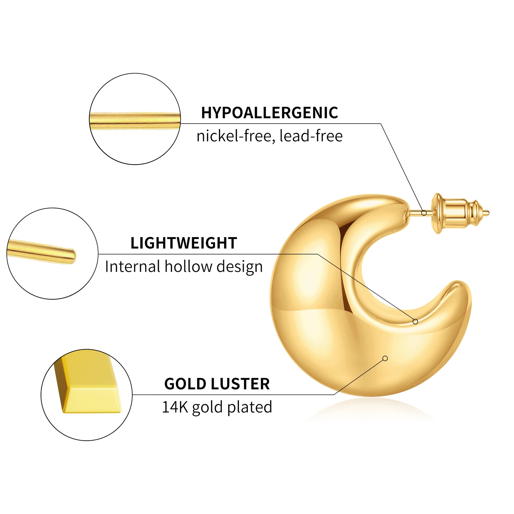 Hypoallergenic Earrings: This thick golden hoop earring is made of 14K golden-plated brass, which is hypoallergenic, lead-free and nickel-free, and can be worn comfortably on sensitive ears without peeling and fading.