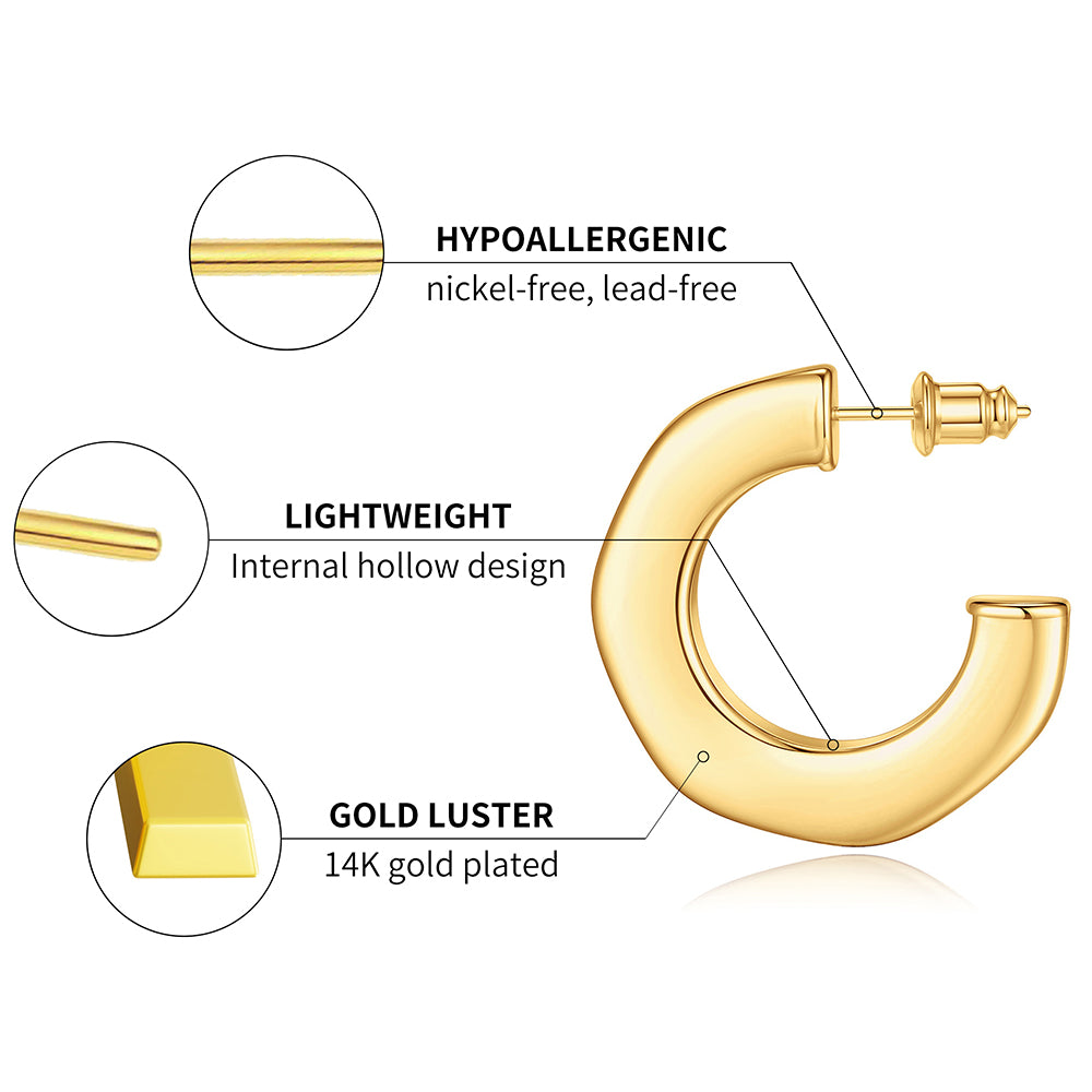 Comfortable material: this lady's heavy golden hoop earrings are made of copper and plated with golden, which will not damage your ears. Ring earrings suit is suitable for sensitive ears, and will not fall off and lose color. High-quality stunning polishing, no scratches, no nickel, no lead and low allergenicity.