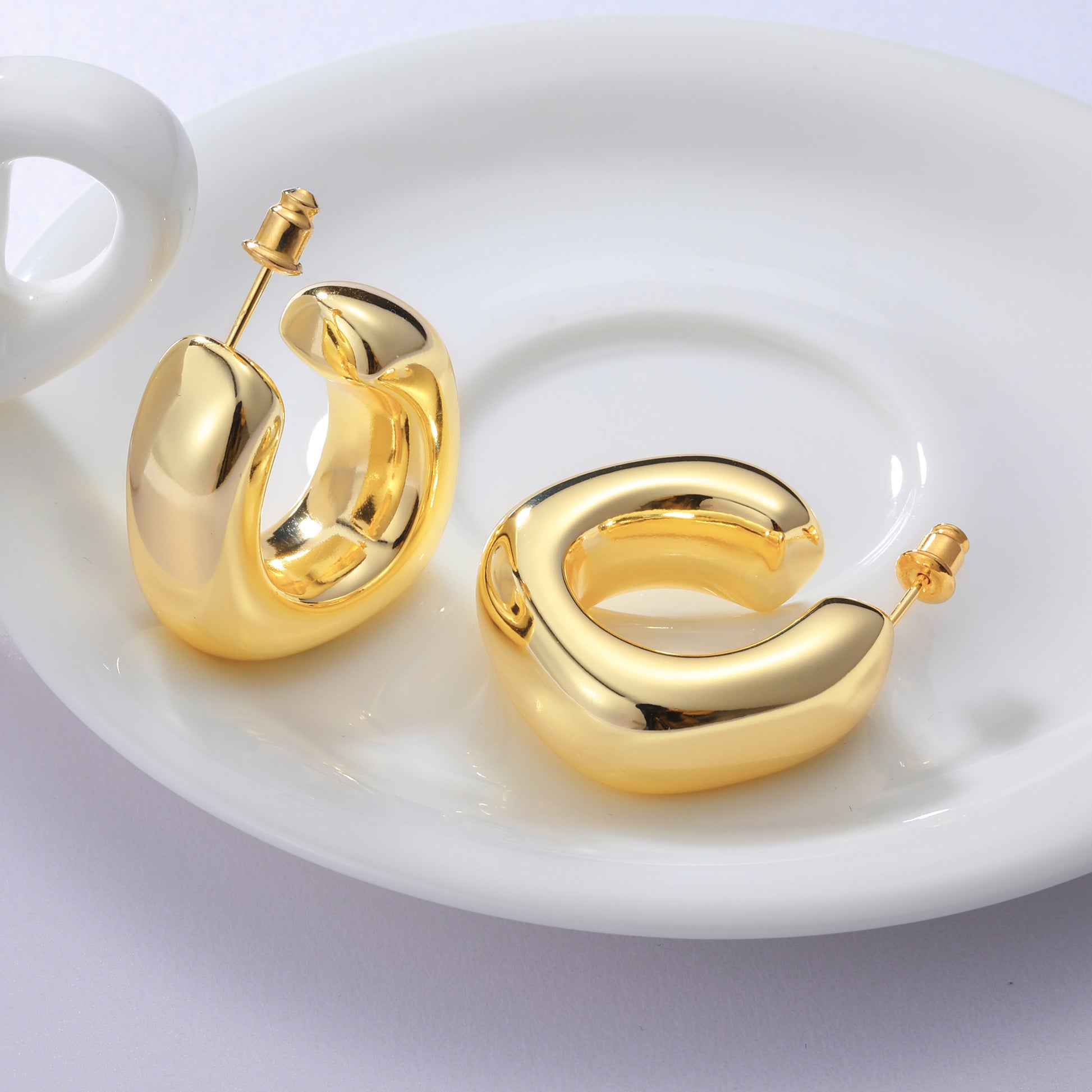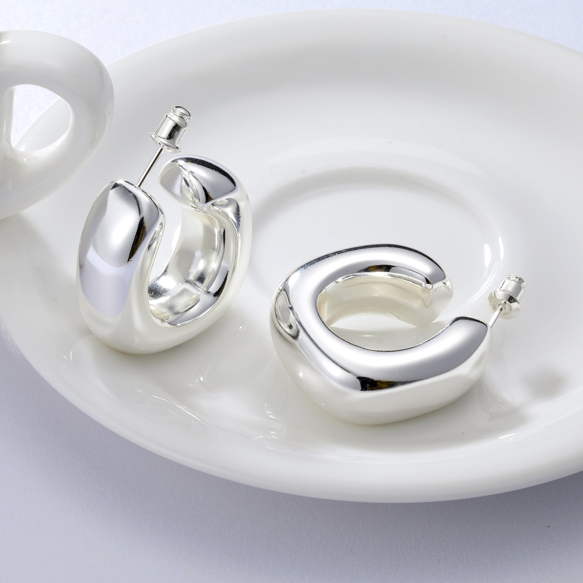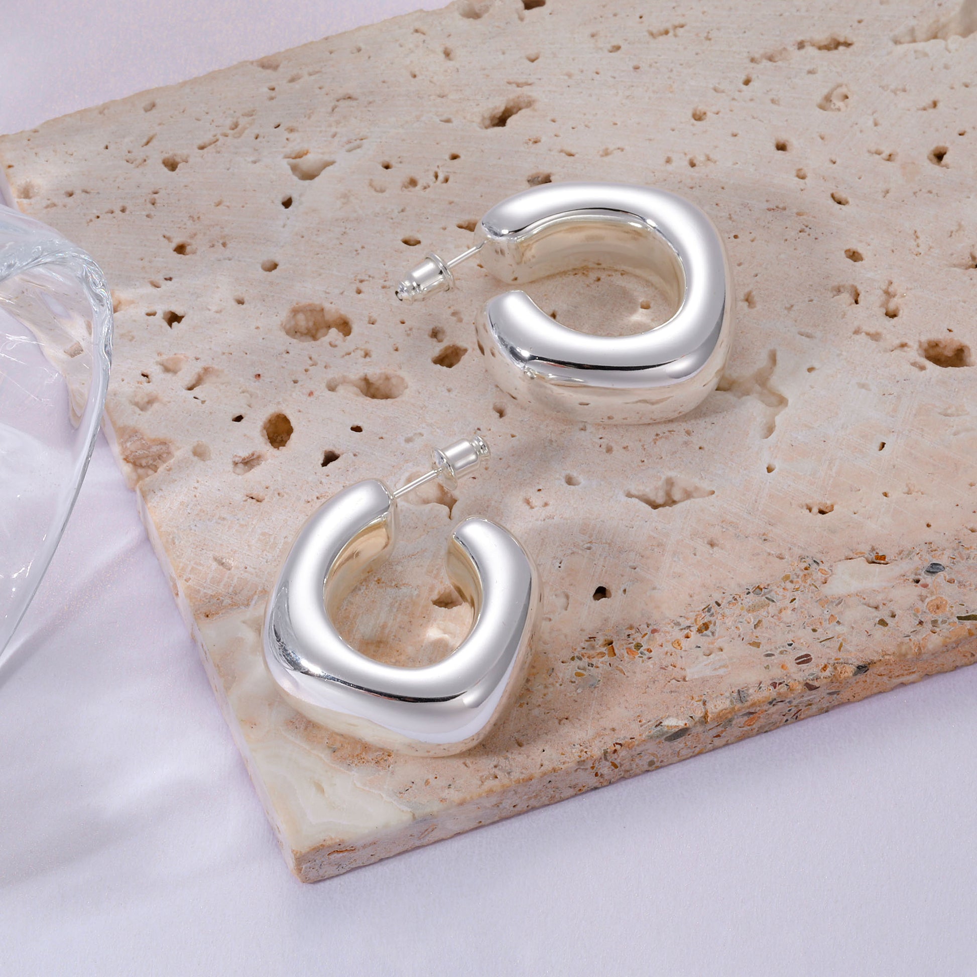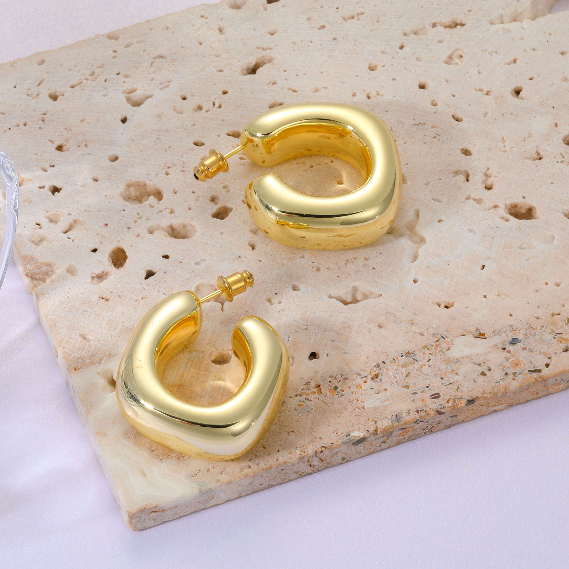 Golden/Silvery, square-cut earrings