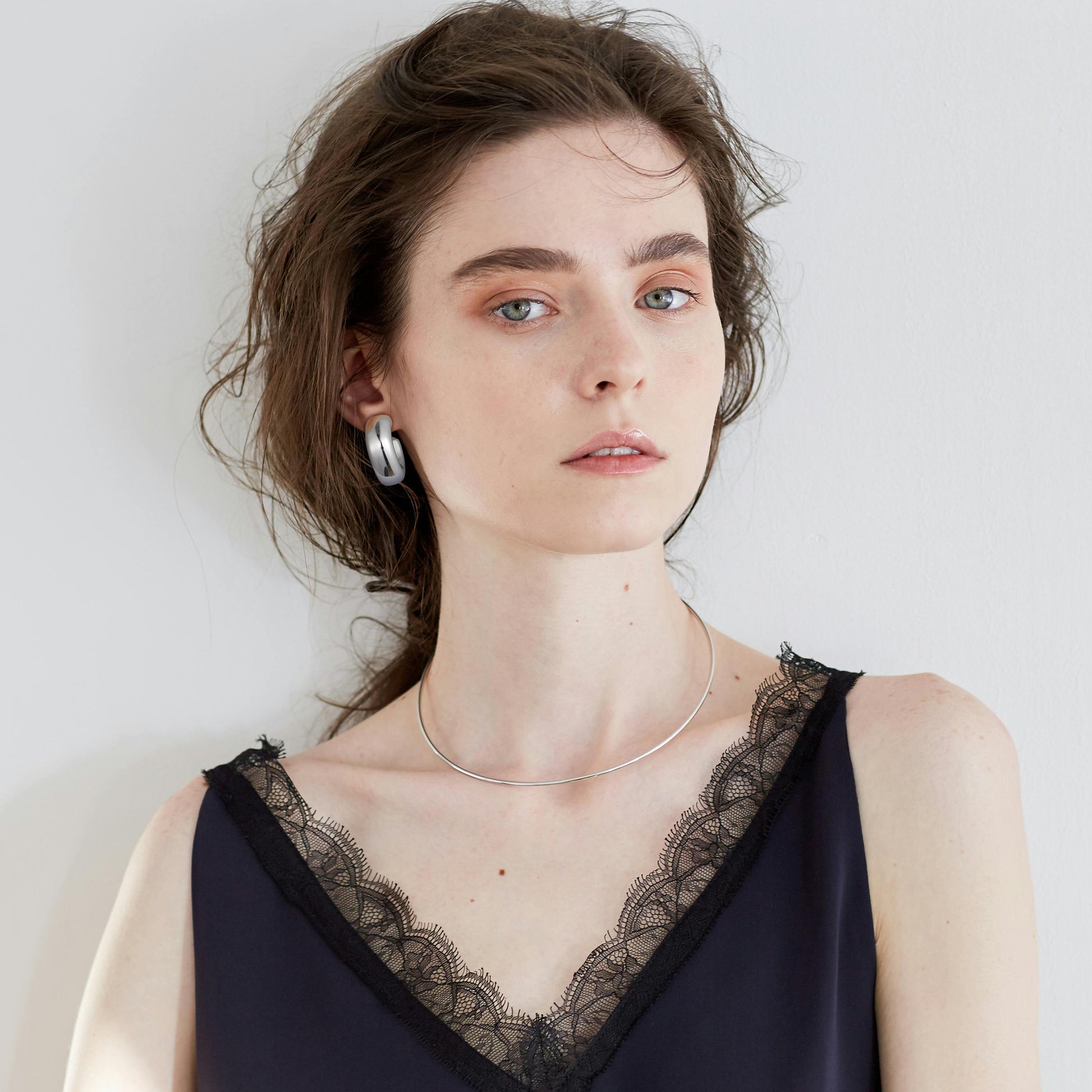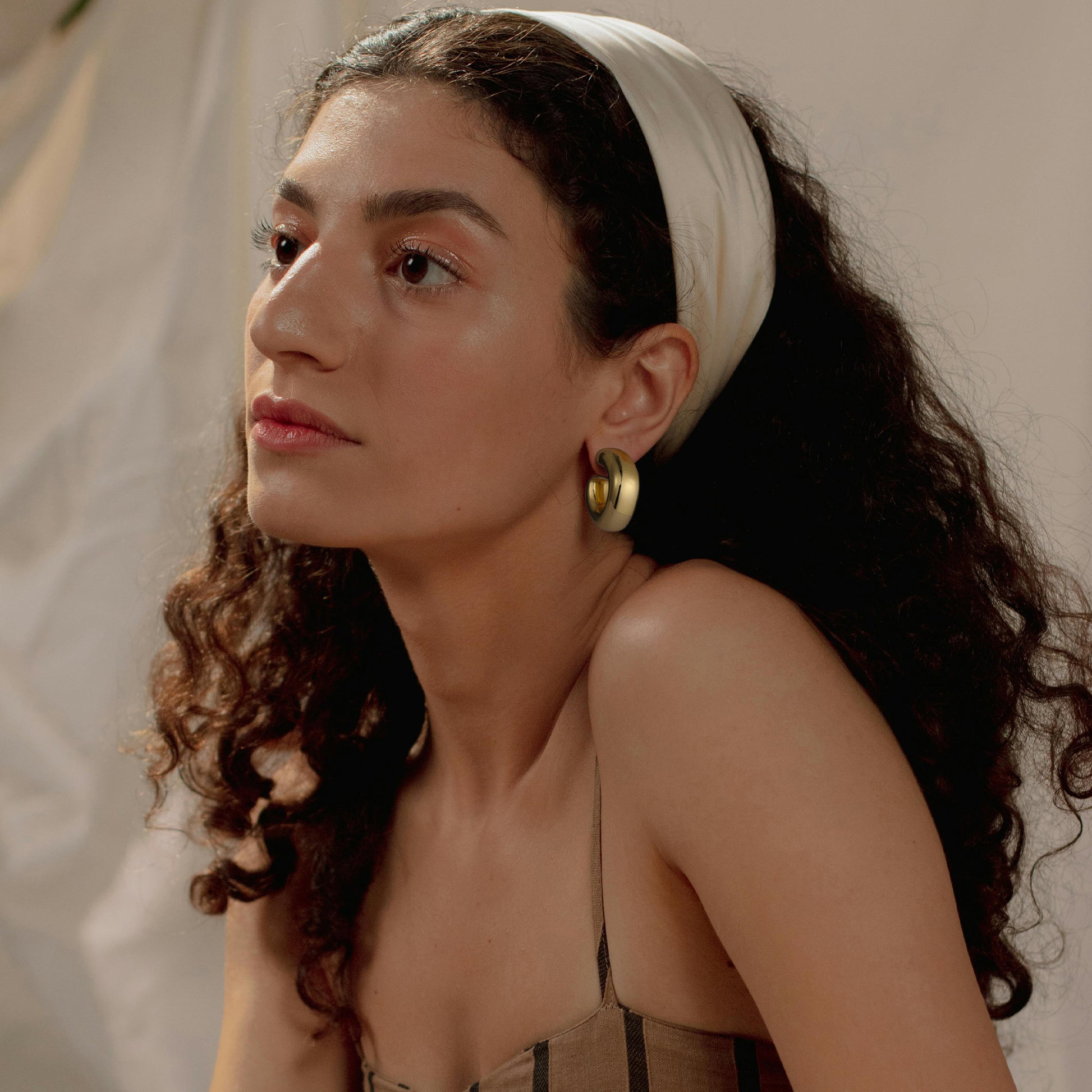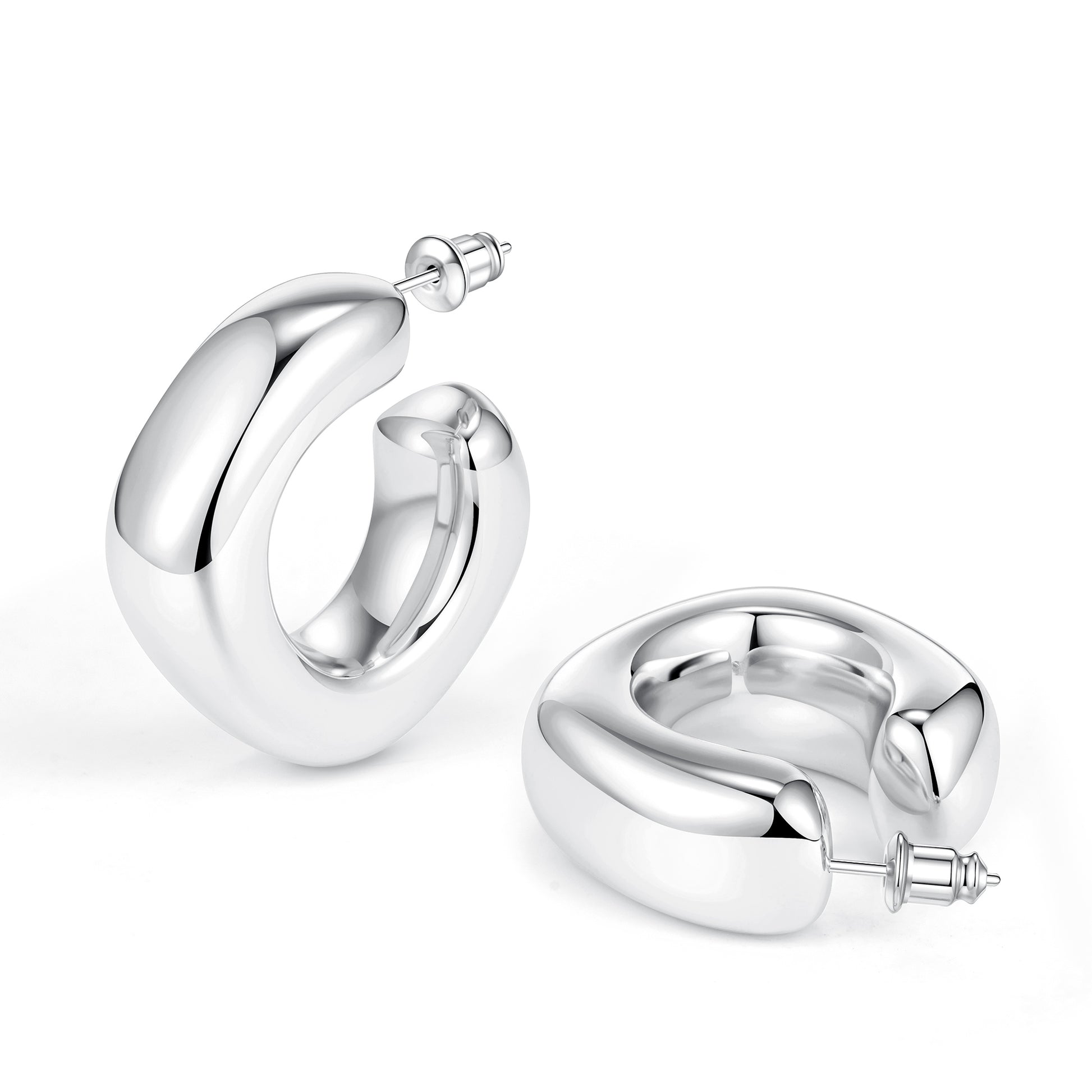 Golden/Silvery, square-cut earrings