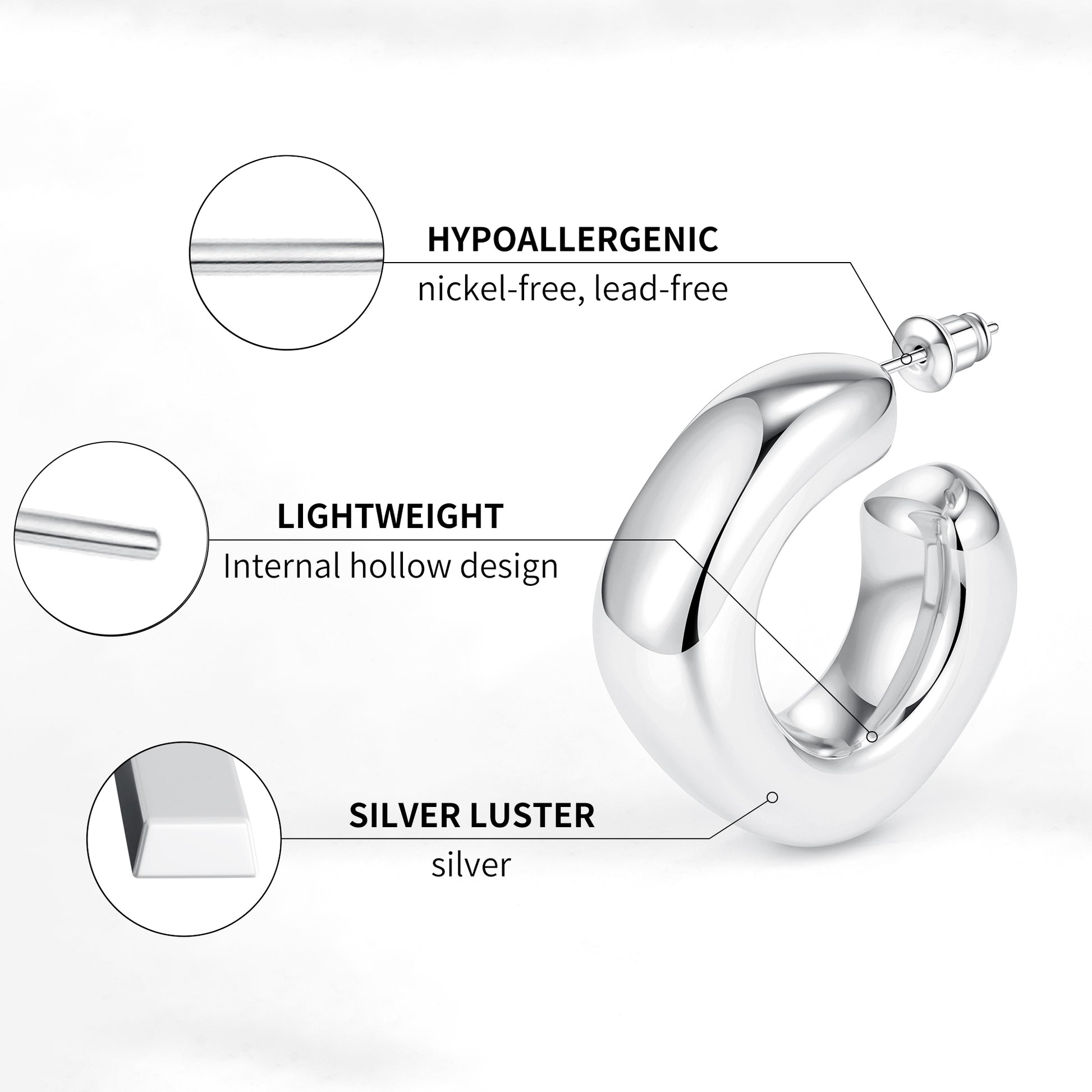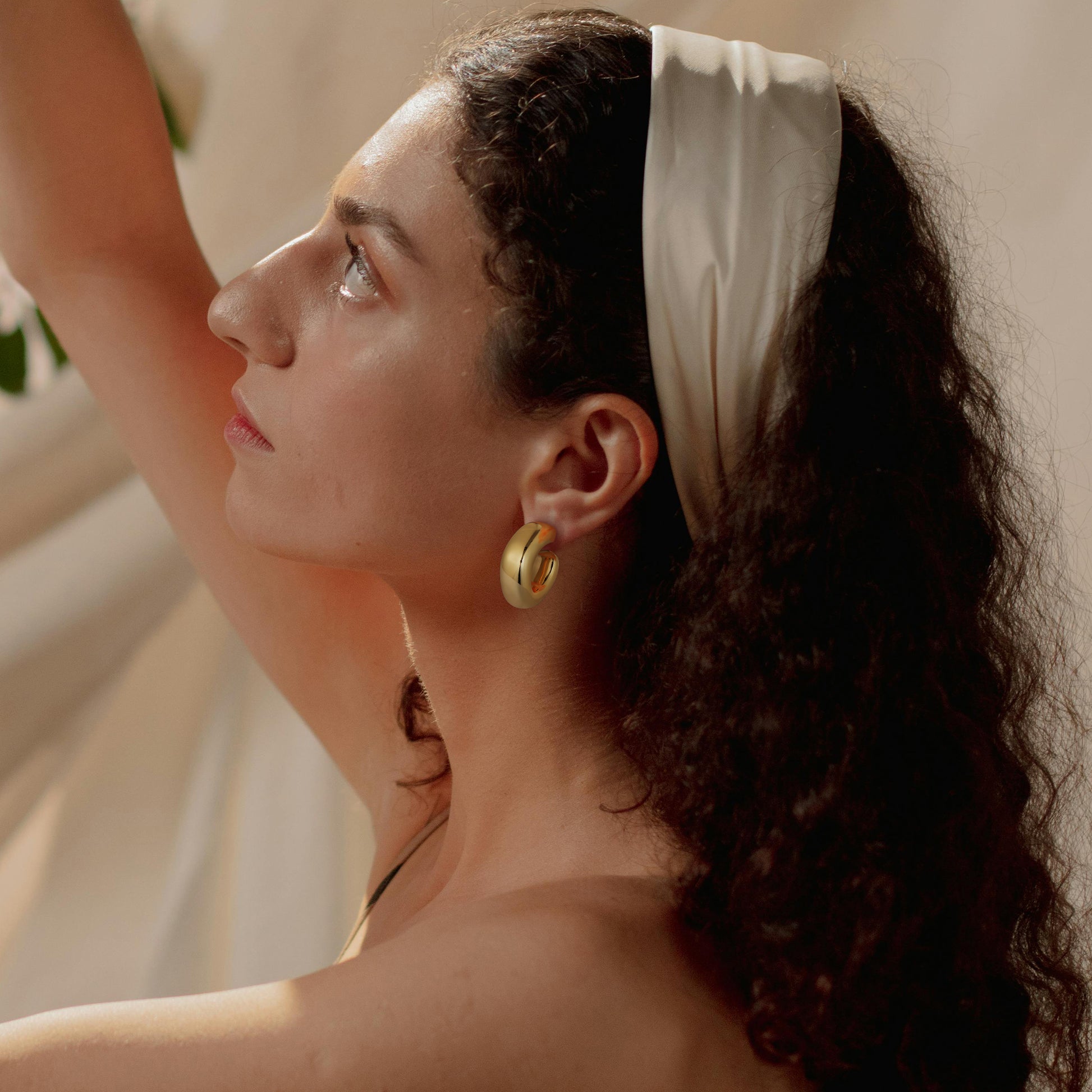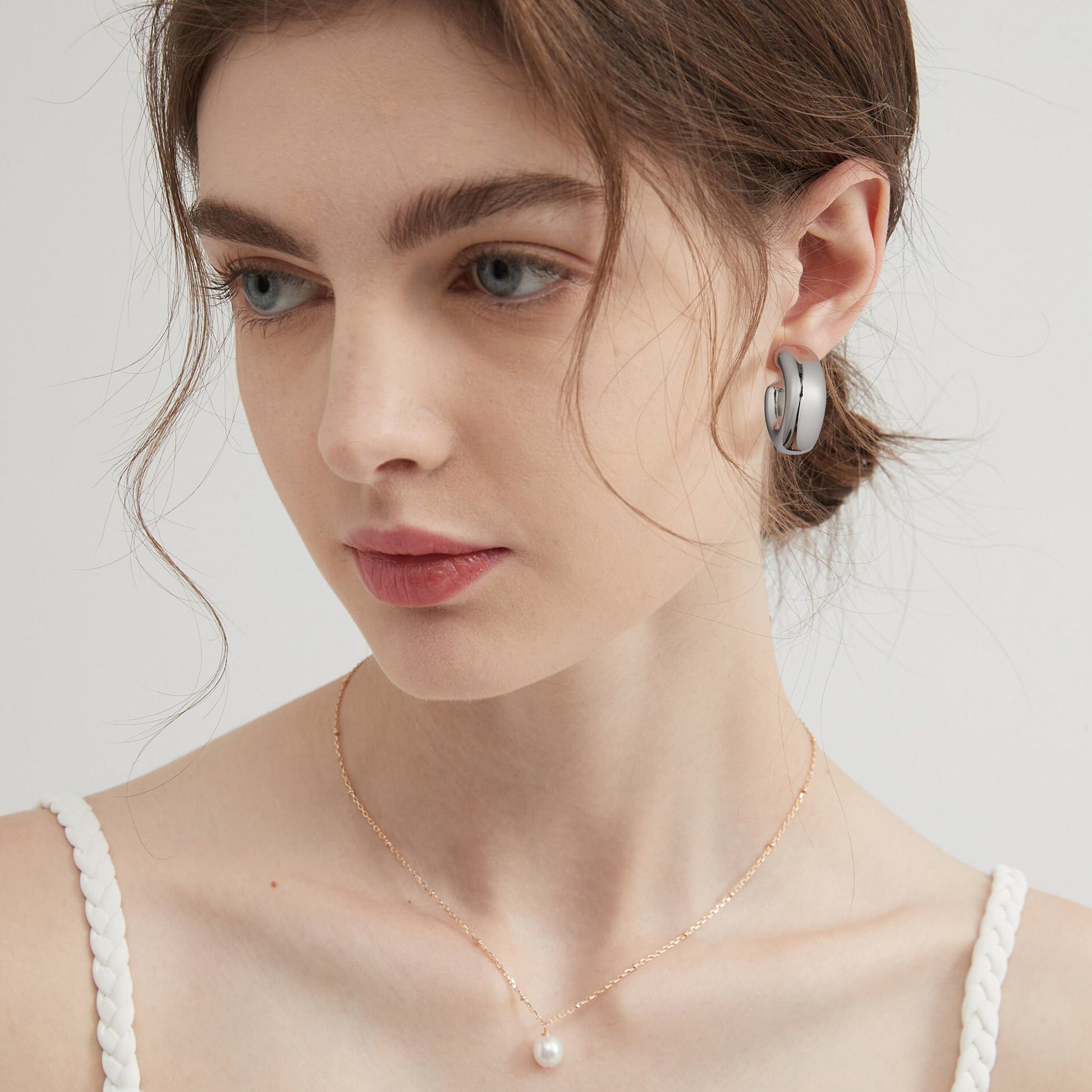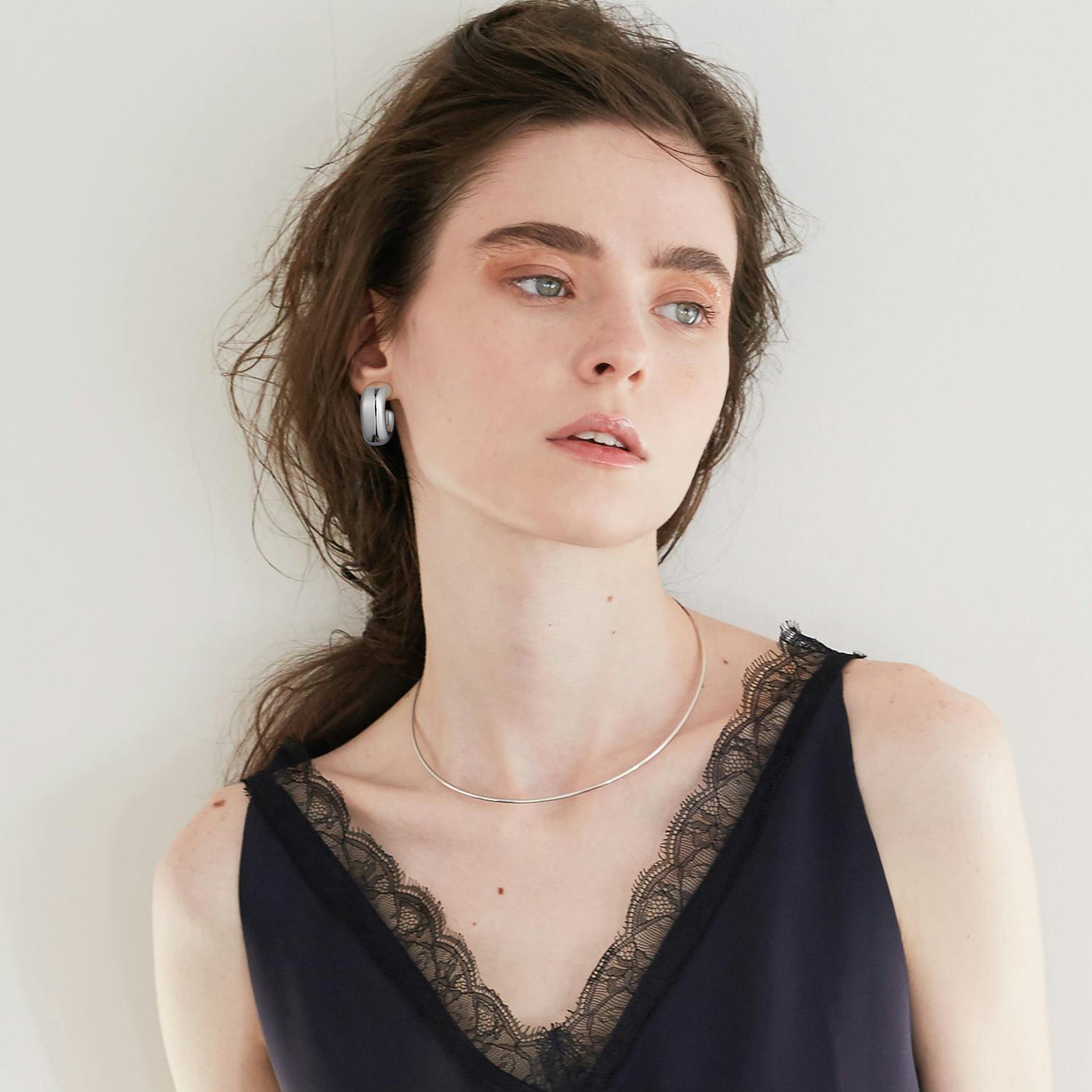 Golden/Silvery, square-cut earrings