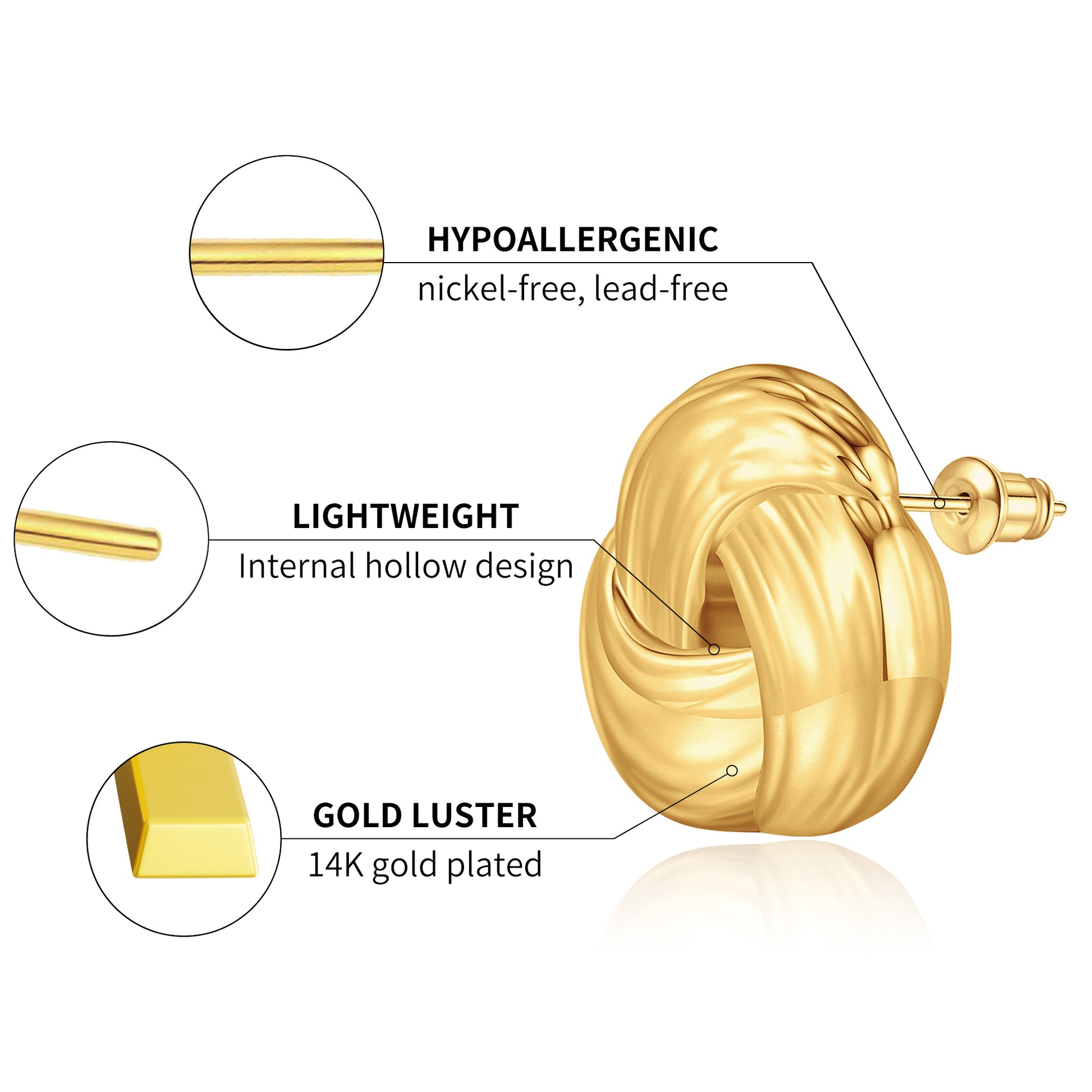 Comfortable material: this lady's heavy golden knot earrings are made of copper plating, which won't hurt her ears. golden earrings are suitable for sensitive ears and will not peel off and fade. Amazing polishing agent with high quality, no scratches, no nickel, no lead and hypoallergenic.