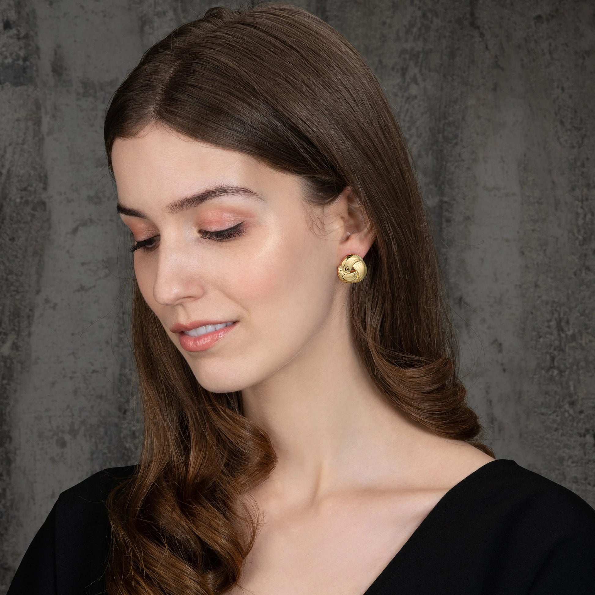 golden Love Knot Earrings: These heavy golden earrings show the complicated love knot design, and inject eternal elegance and feminine charm into your overall shape. This earring is made of 14K thick golden plating technology, which is durable and luxurious, and can be matched with any clothing, from casual to formal.