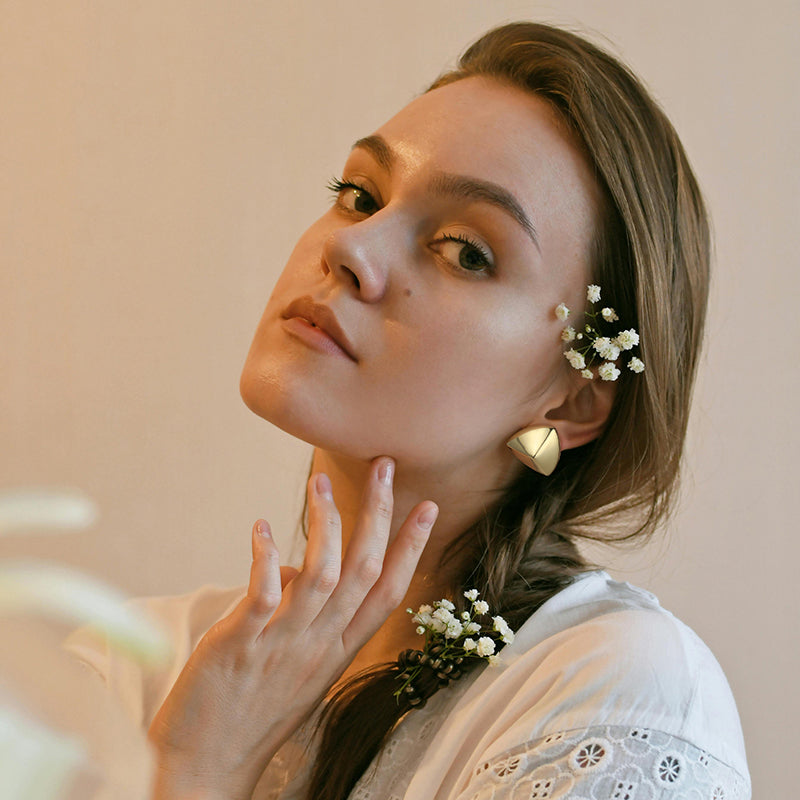 golden Earrings: This lady's golden earrings are not only fashionable and modern, but also classic and elegant. Heavy golden earrings, suitable for daily wear and collocation, can capture light well.