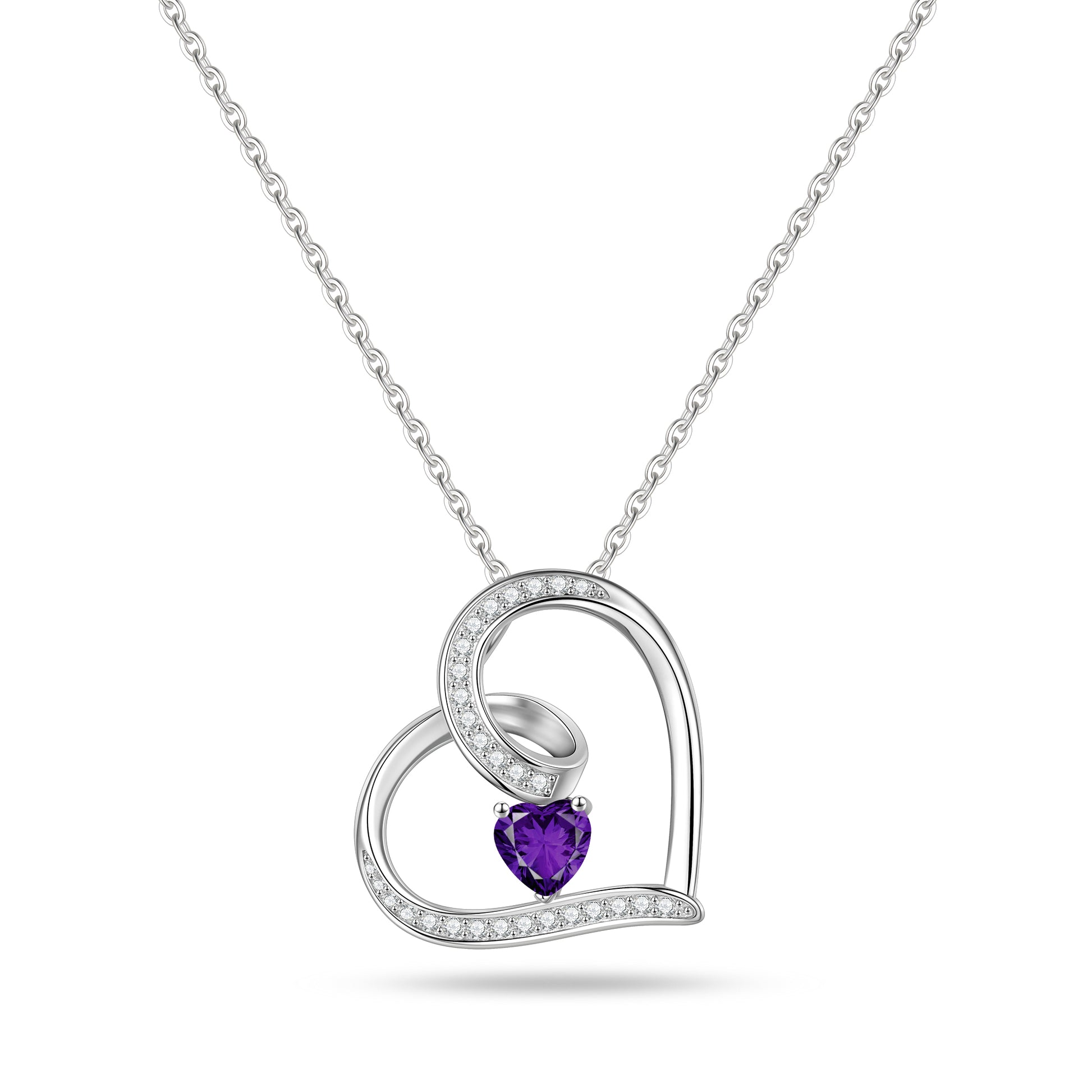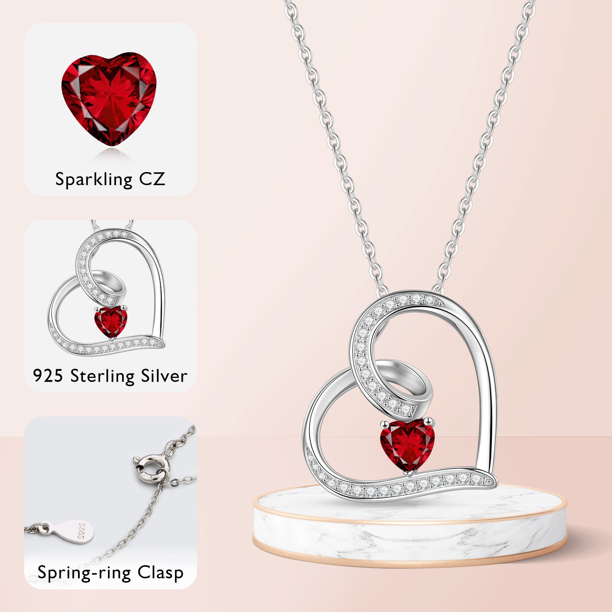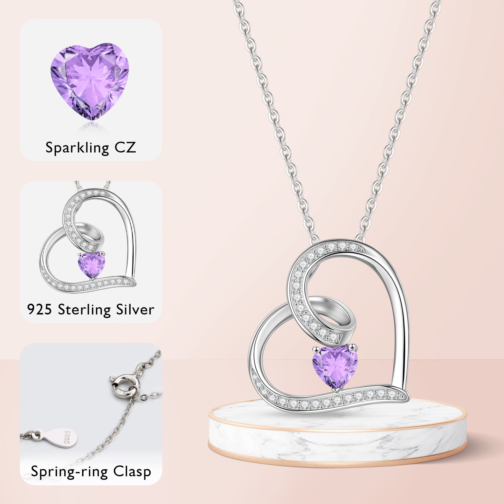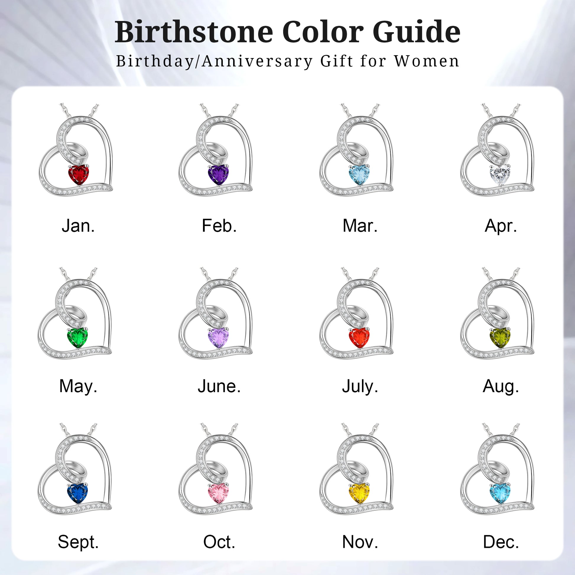 Romavan brand, left-tilted heart birthstone necklace, colored cubic zirconia pendant necklace, available from January to December