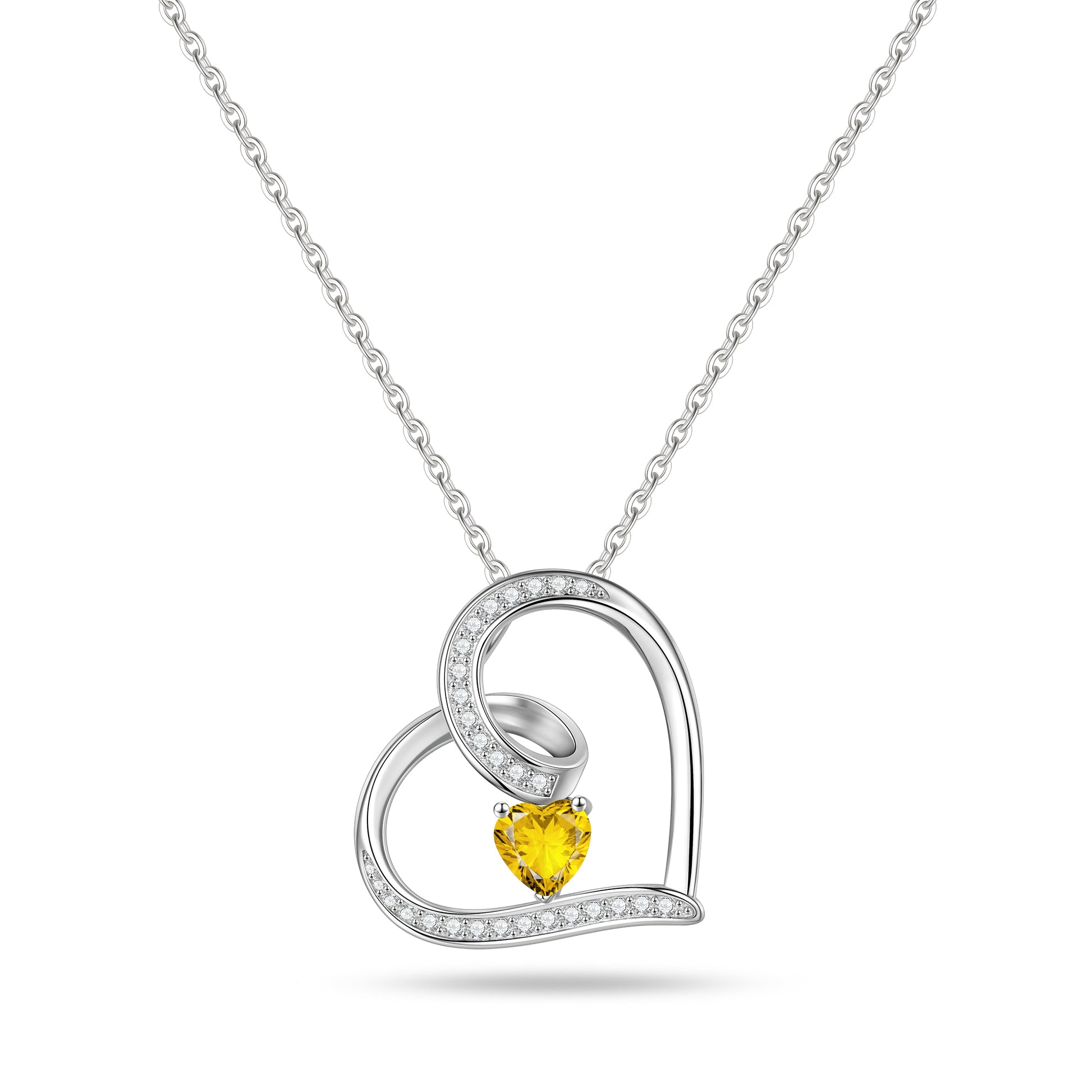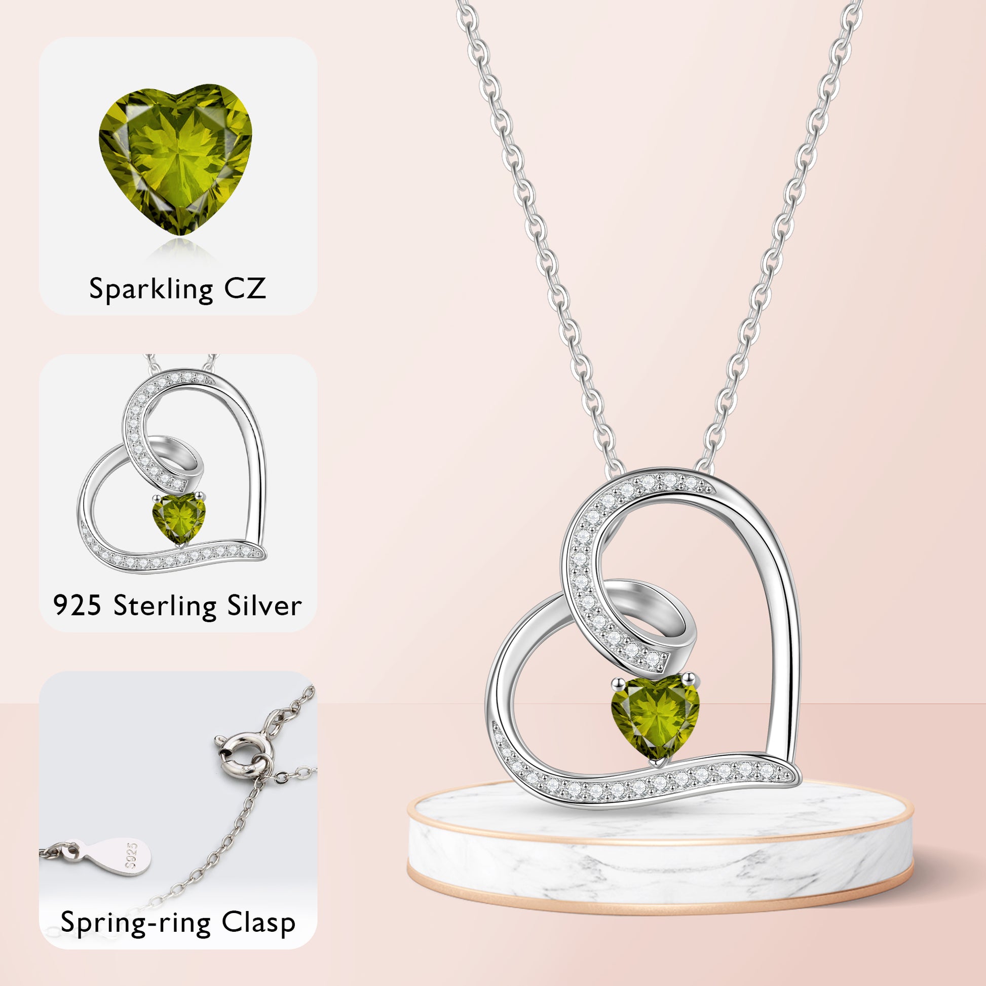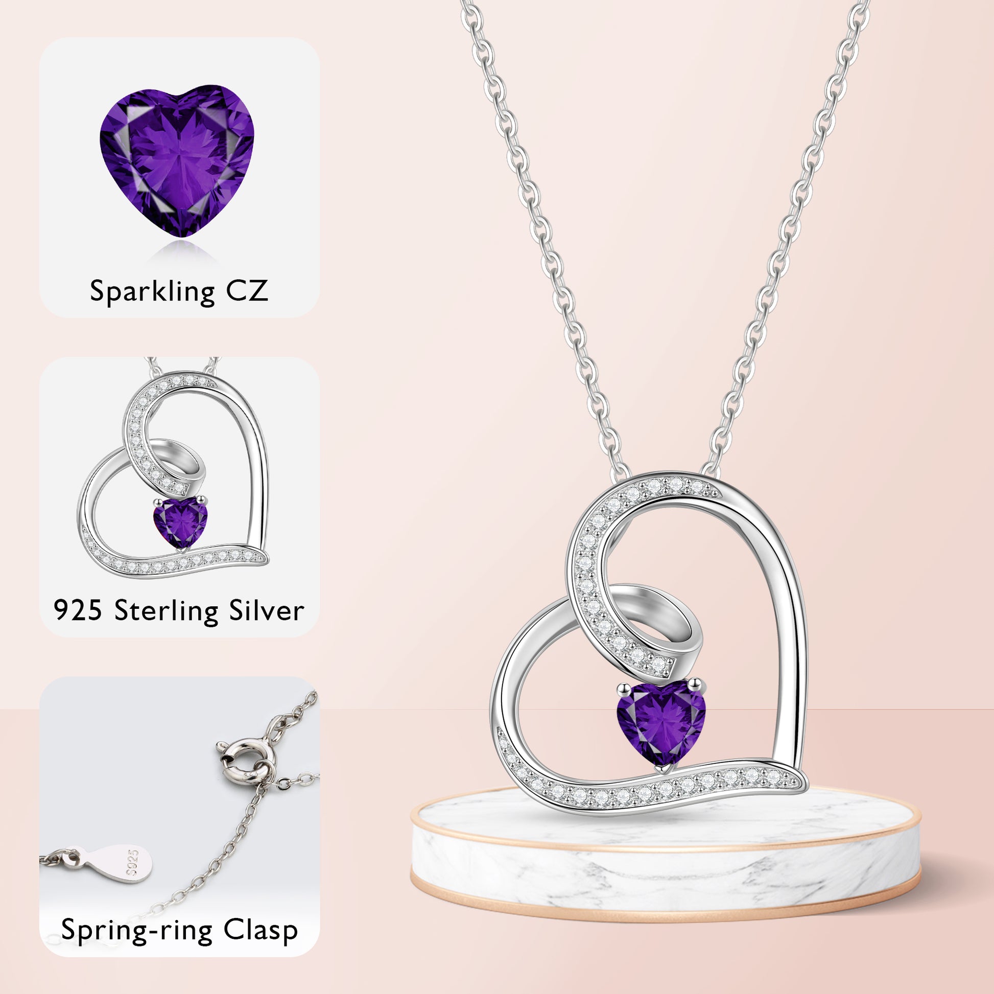 Romavan brand, left-tilted heart birthstone necklace, colored cubic zirconia pendant necklace, available from January to December