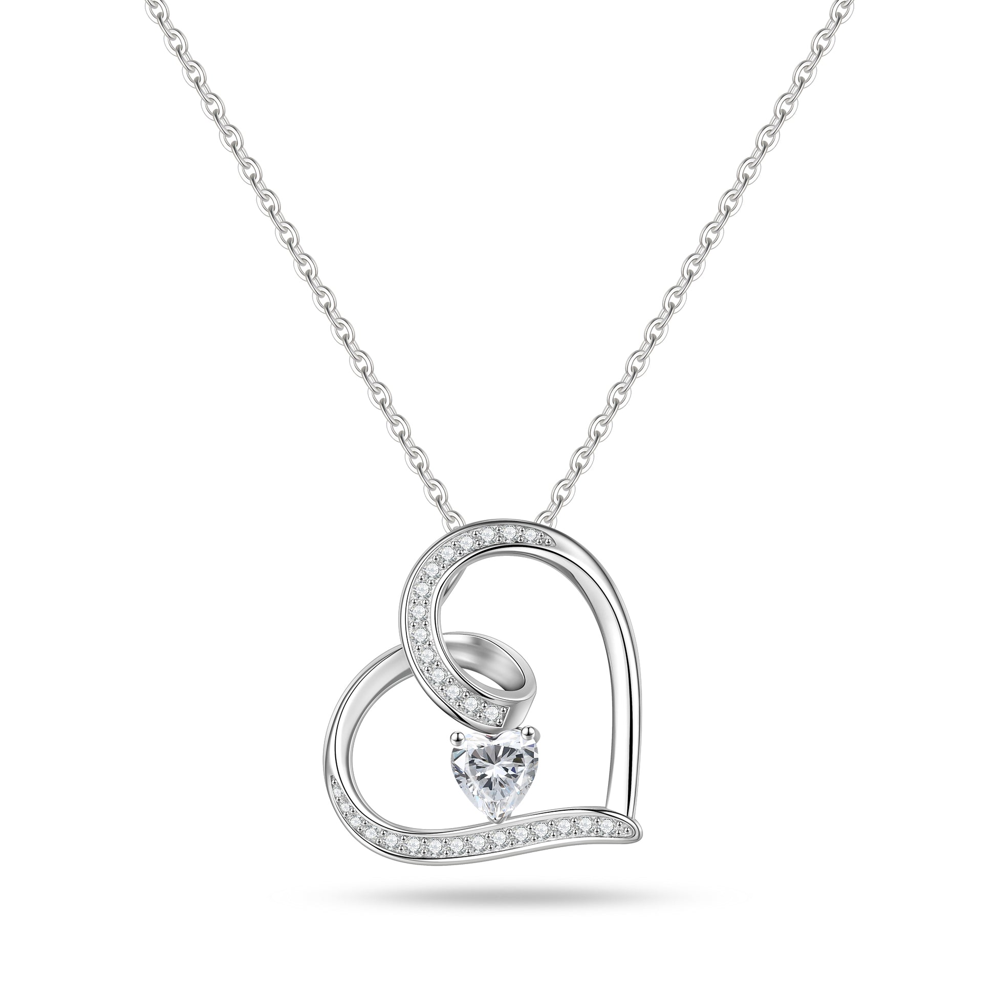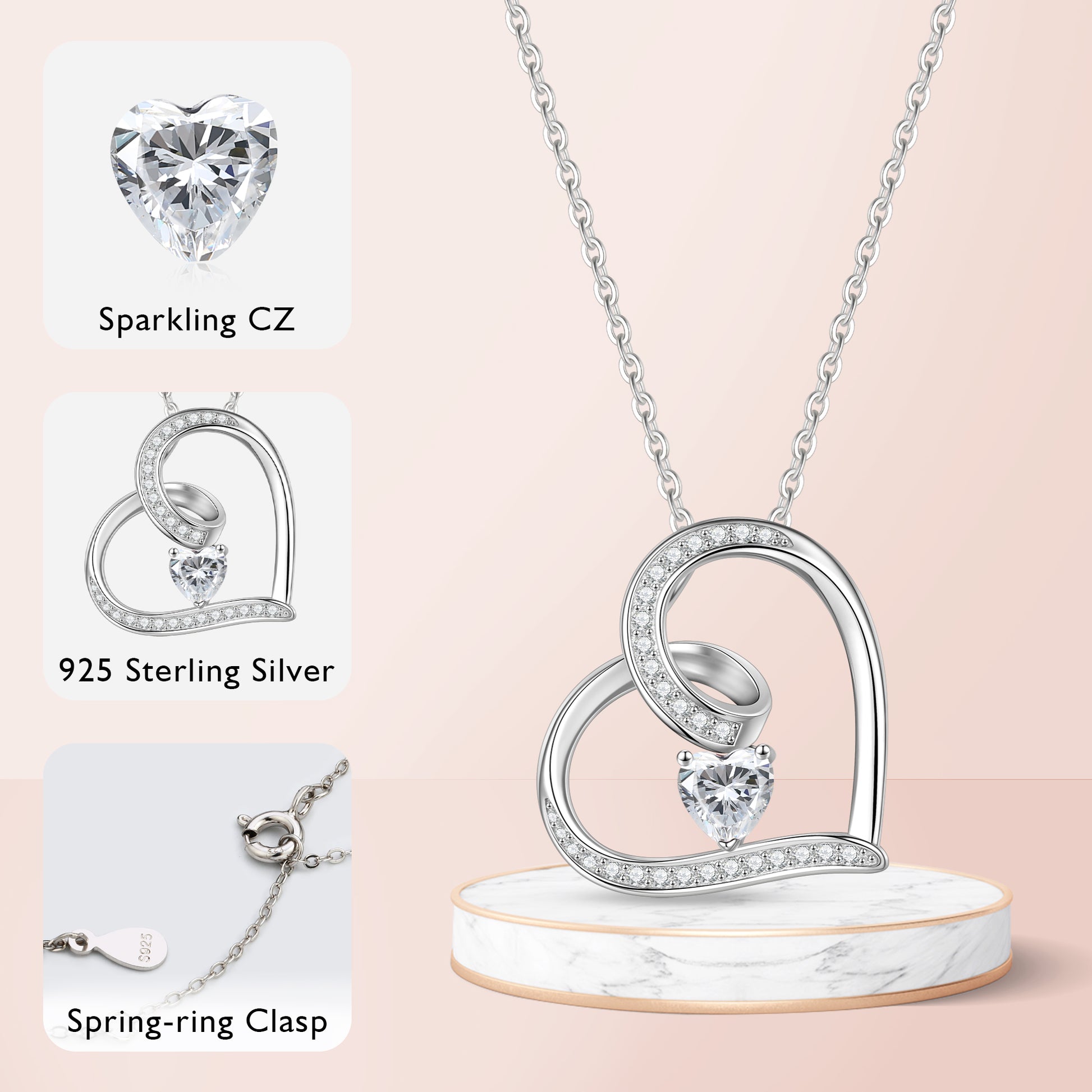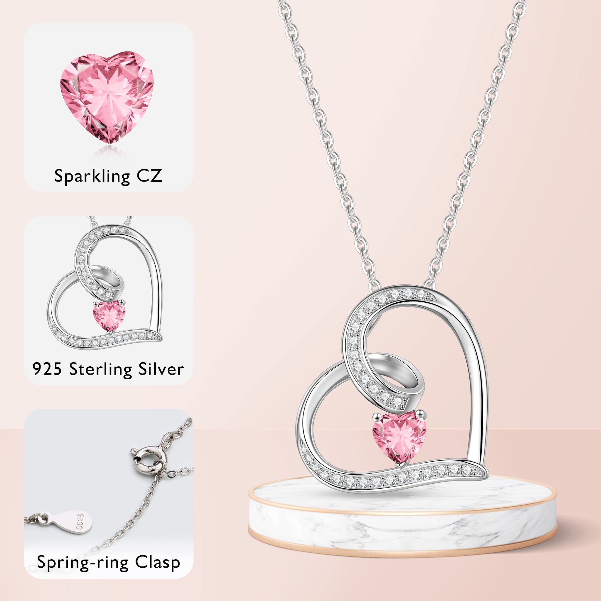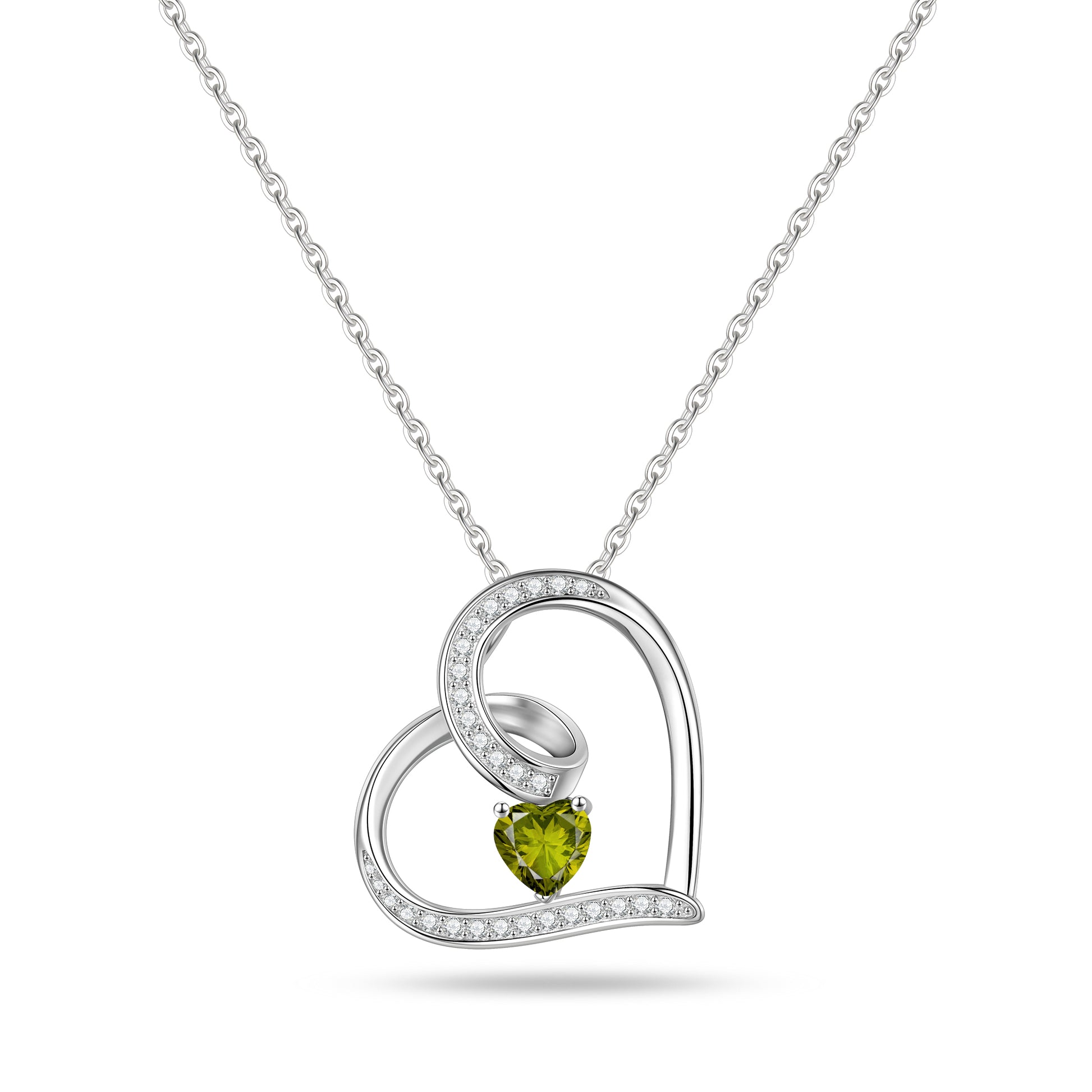 Romavan brand, left-tilted heart birthstone necklace, colored cubic zirconia pendant necklace, available from January to December