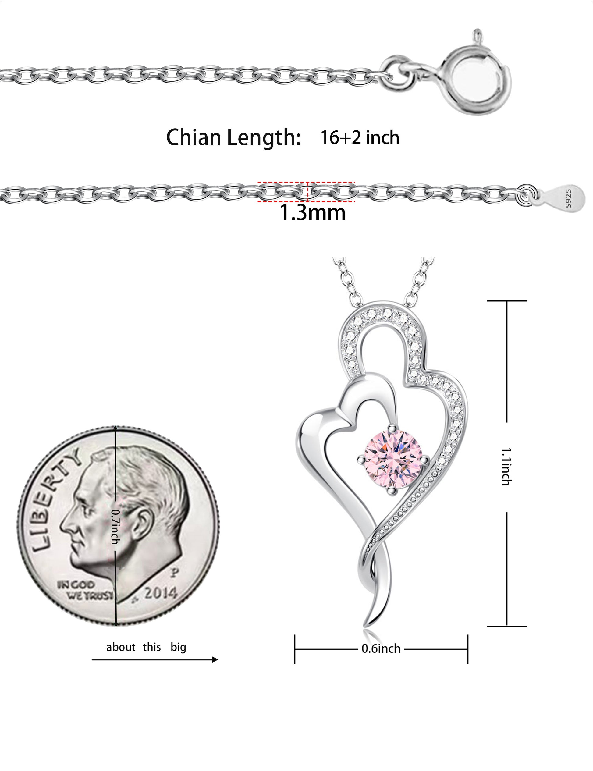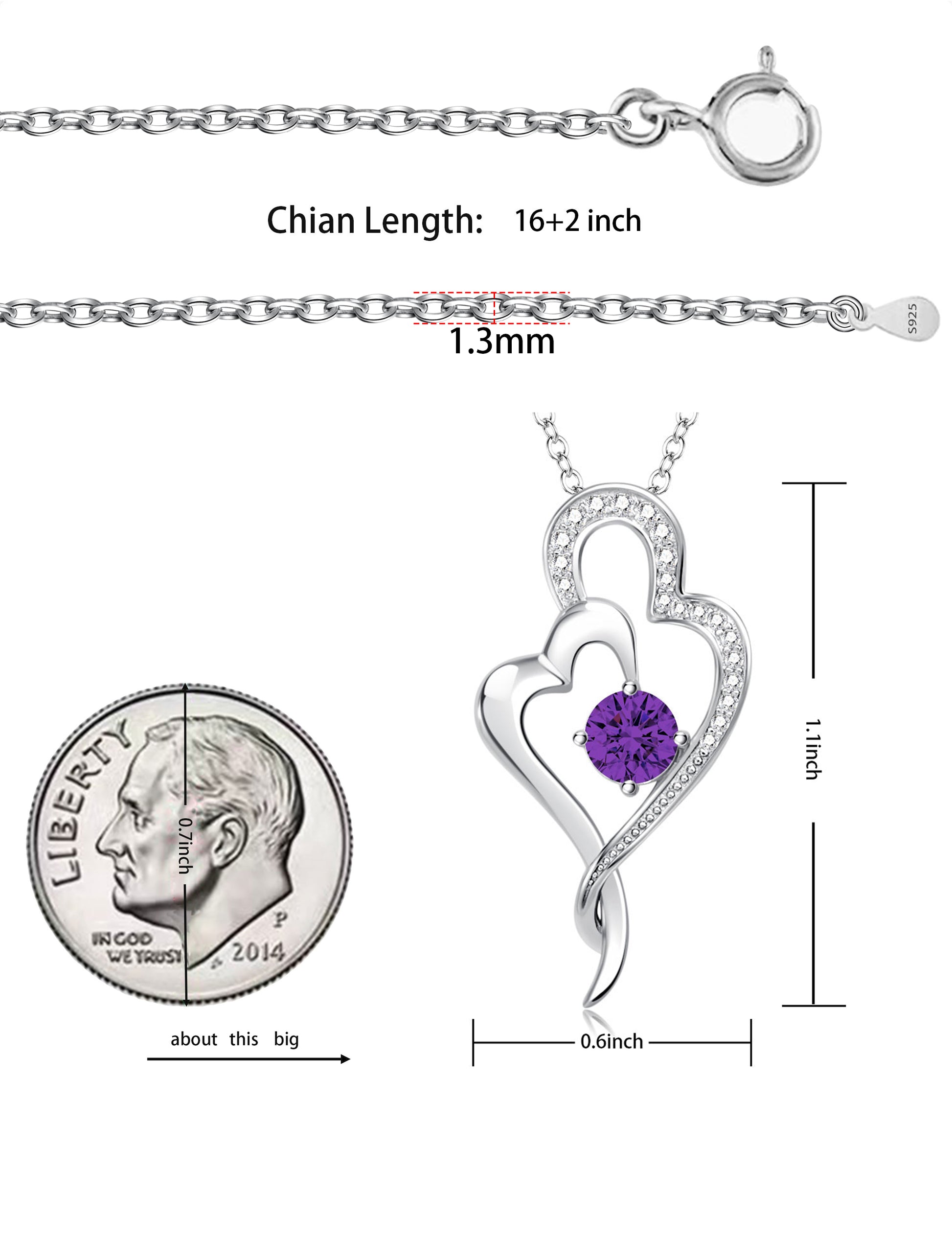 Silver necklace, heart-shaped birthstone necklace, 925 silver plated zircon pendant necklace, women's jewelry gift, Valentine's Day gift for women's wives and girls