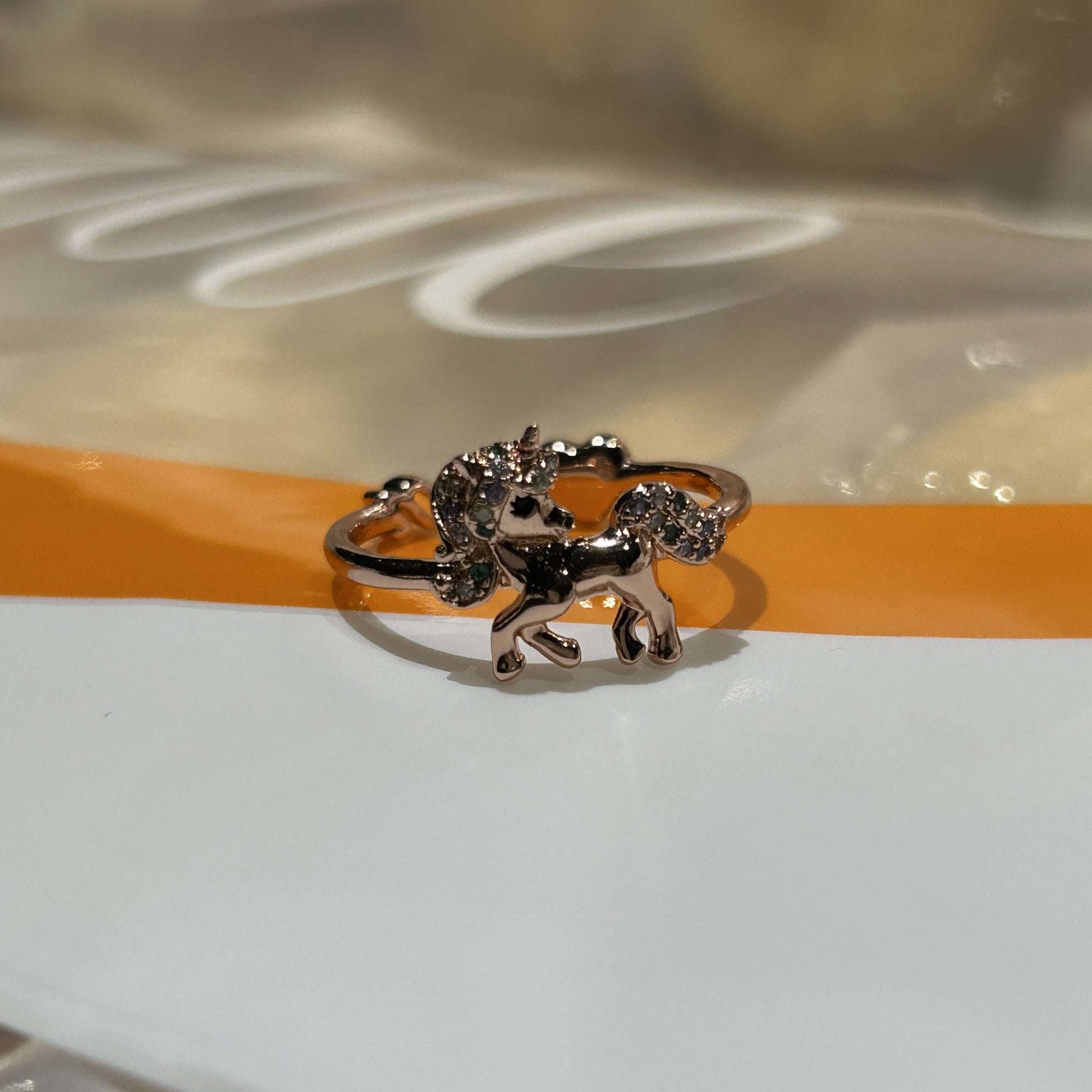 Silver/rose golden, unicorn ring, initial colored zircon ring, 26 letters A-Z