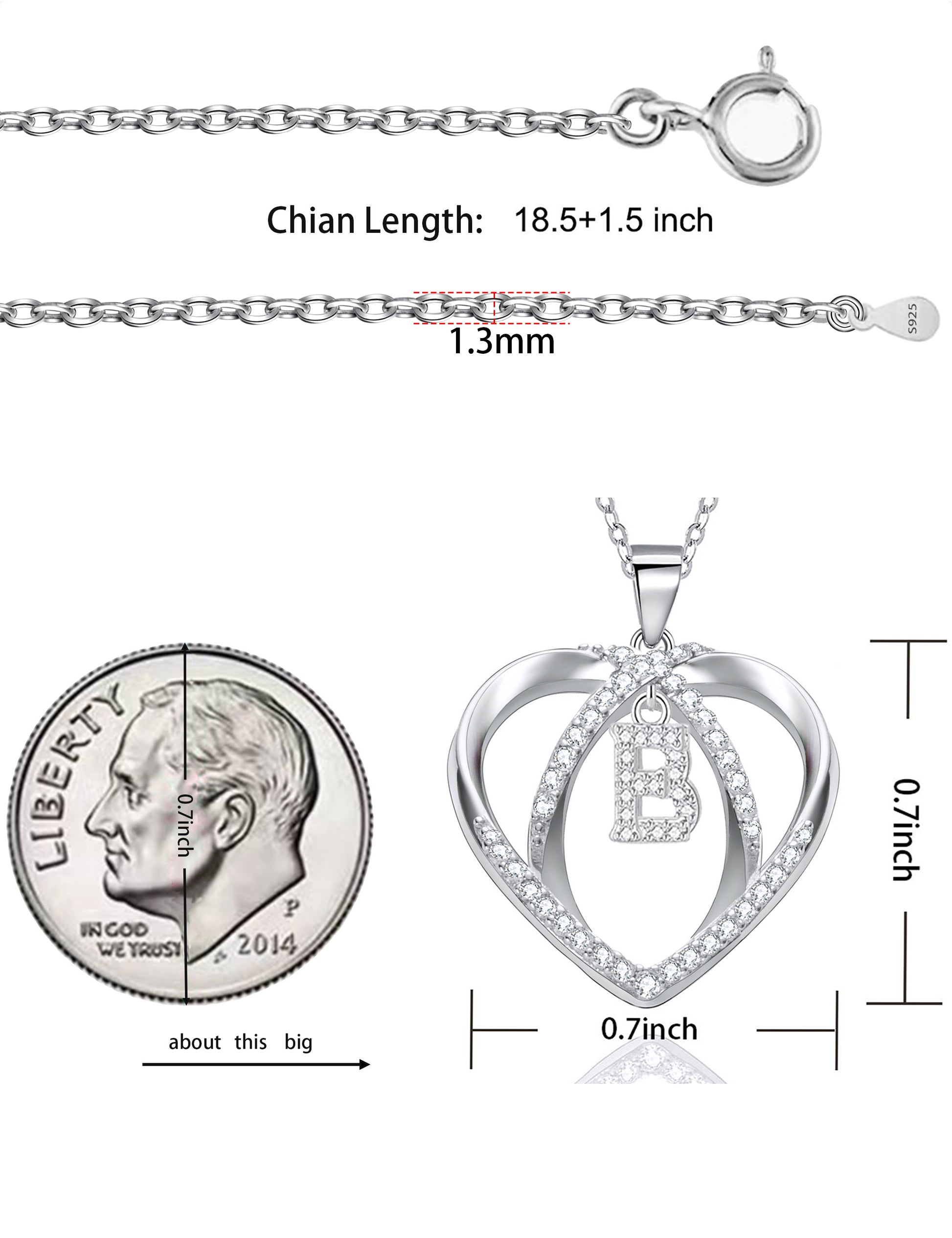 High quality material: The heart-shaped first letter necklace is made of high-quality 925 silver plated material, embedded with AAA+cubic zirconia, sparkling and charming. The chain length is 45.5+3.5 centimeters, suitable for most women. The acronym of the person you love.