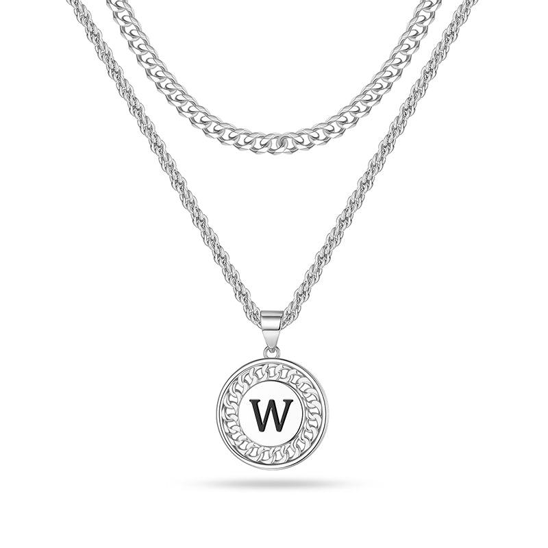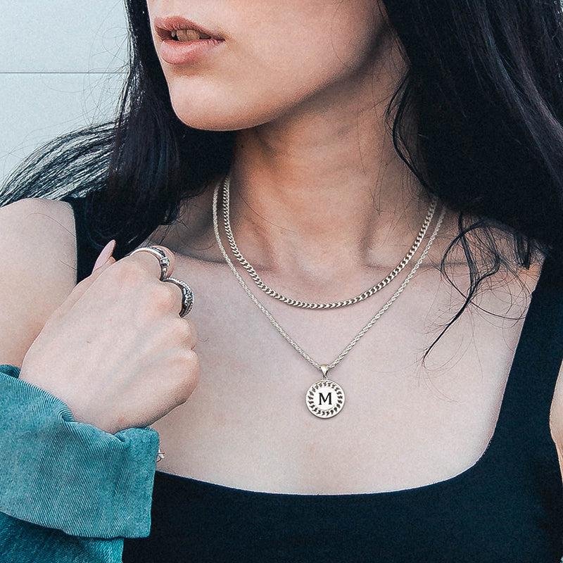 SIZE: 2Pcs Layered necklace, 3mm 20"+2" cuban chain and 2.5mm 22"+2" rope chain initial pendant necklace, perfect length and size to fit any occasions. Lobster clasp design, easy to open and close. A unique women mens accessories add to jewelry collection.