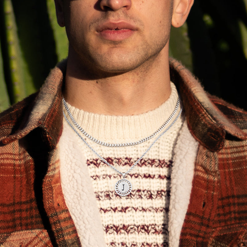 MATERIAL: Silver initial necklaces for men, the pendant is made of environment and human friendly cooper and the chains are made of stainless steel. Lead free and nickel free,no harm to skin, perfect classic initial necklaces for men women with sensitive skin.