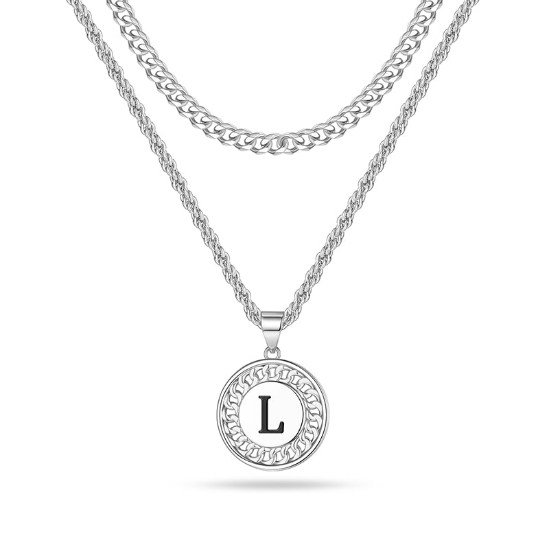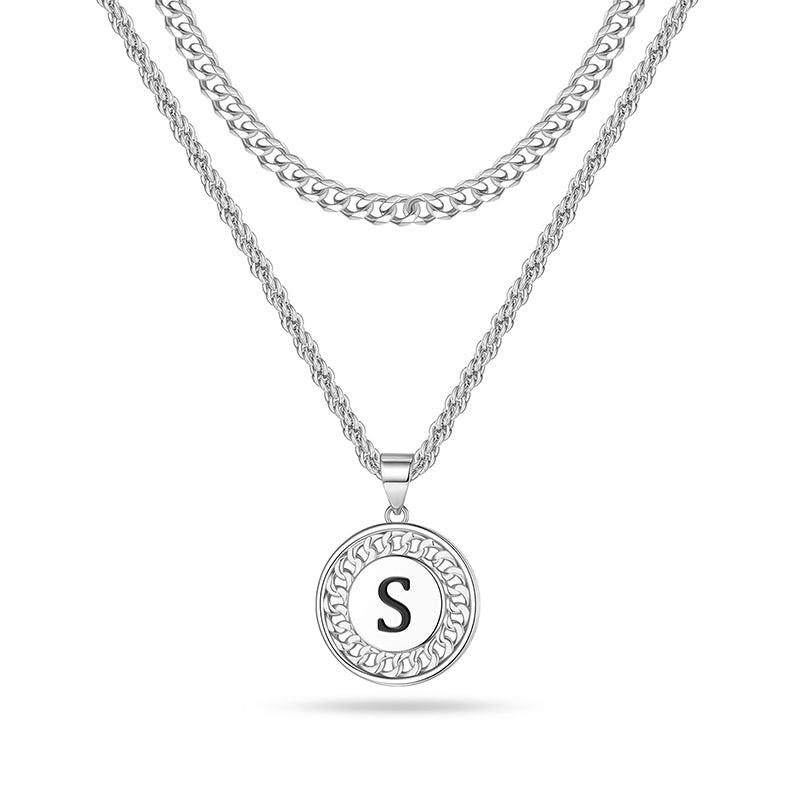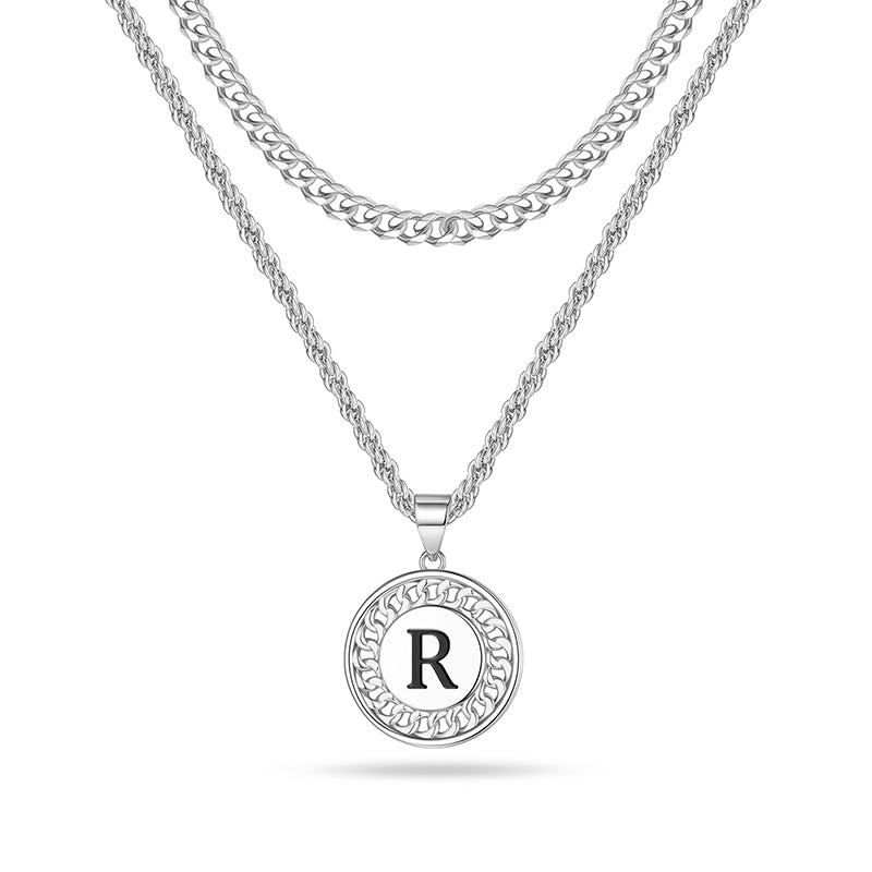 LAYERED INITIAL NECKLACE: The letter necklace has letters and patterns on both sides, don't worry about turning over to the back. Initial necklaces for men let him know he is the most important one and you are with him all the time. Fashion originates from classics, minimalism design, great for wearing alone or layering with other dainty necklaces.