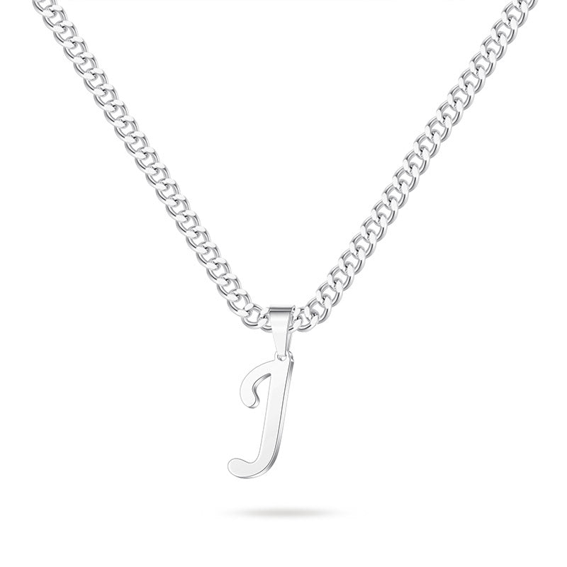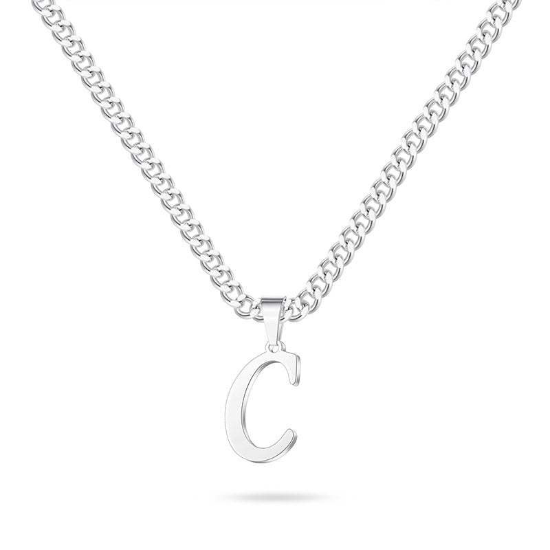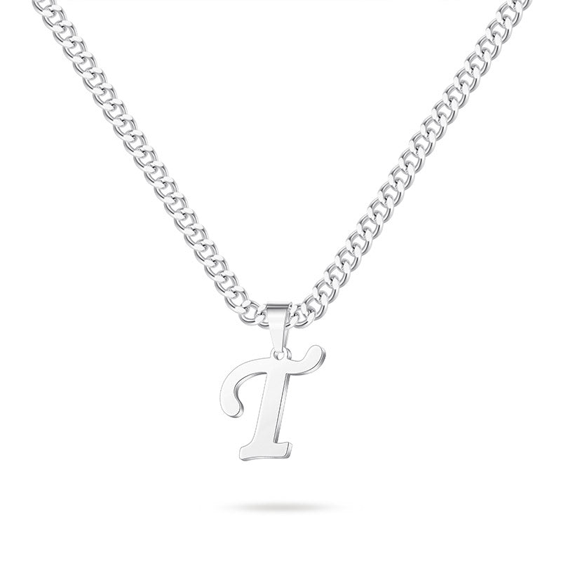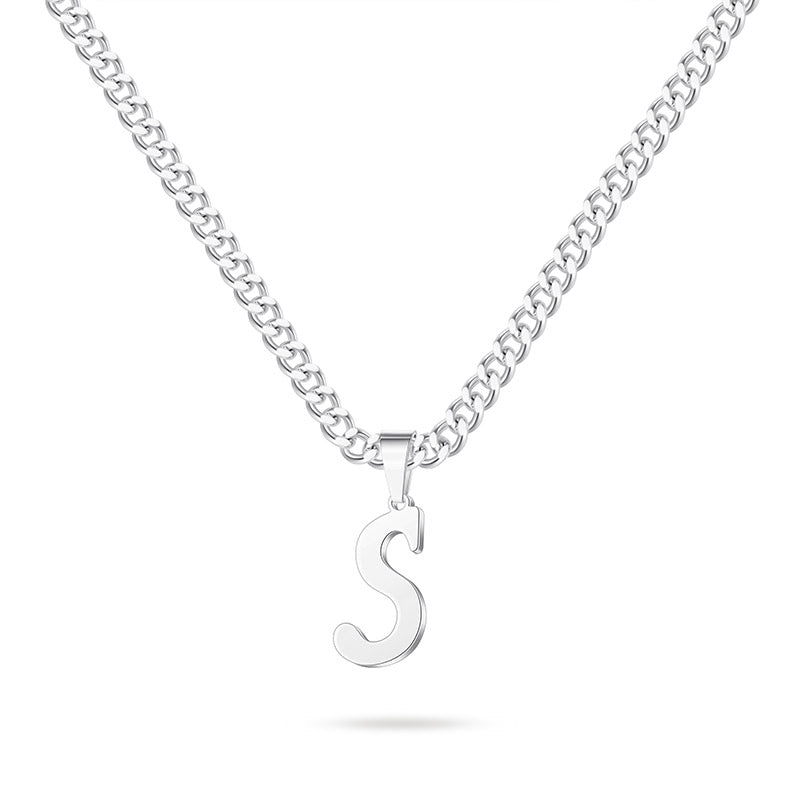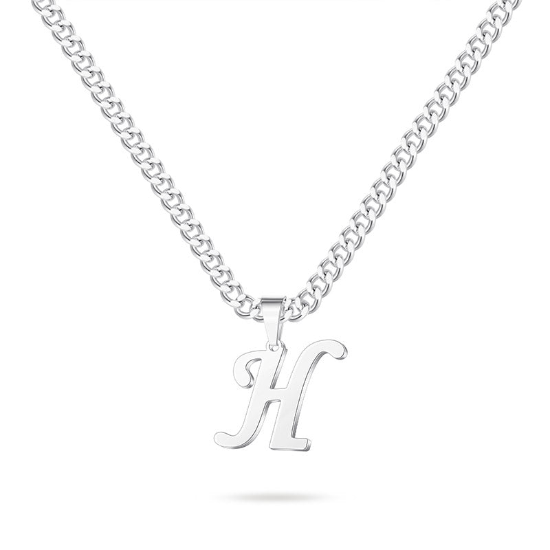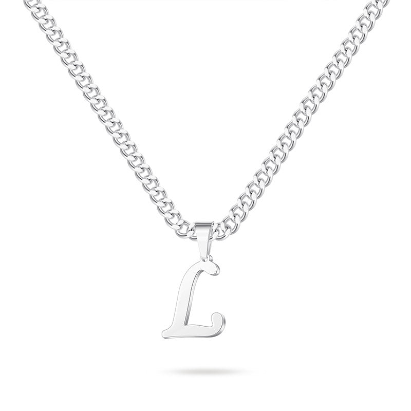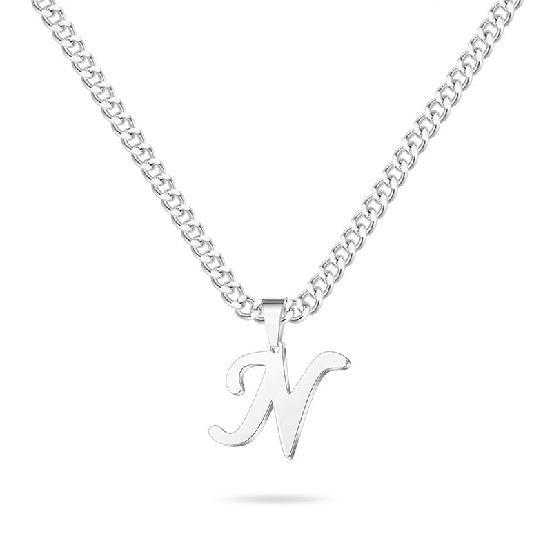 Silvery Initial A-Z Letter Necklace Stainless Steel Cuban Chain Initial Necklace for Men Women Jewelry Gifts