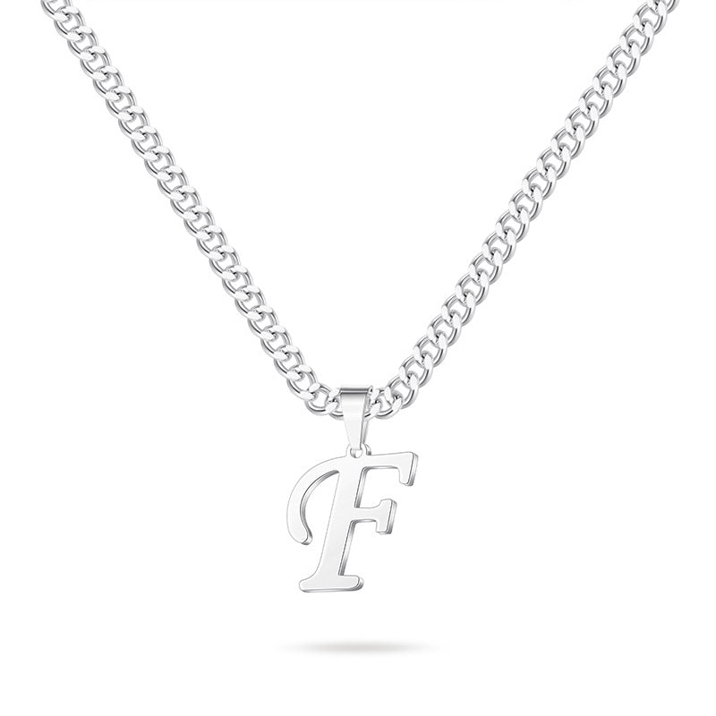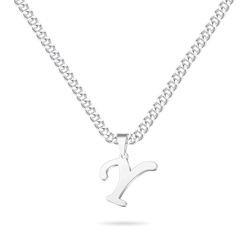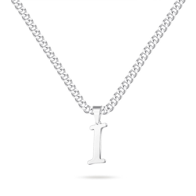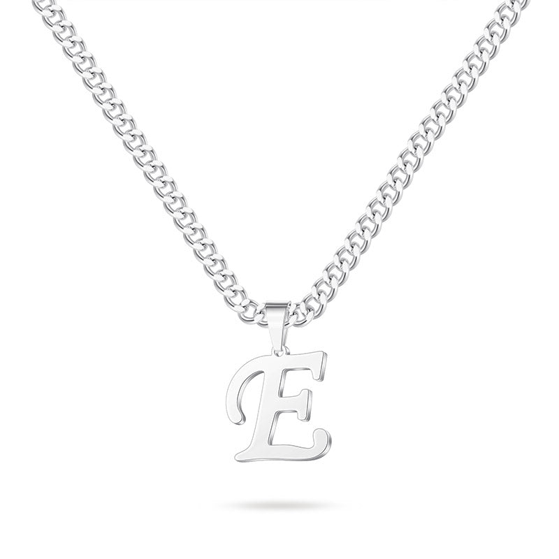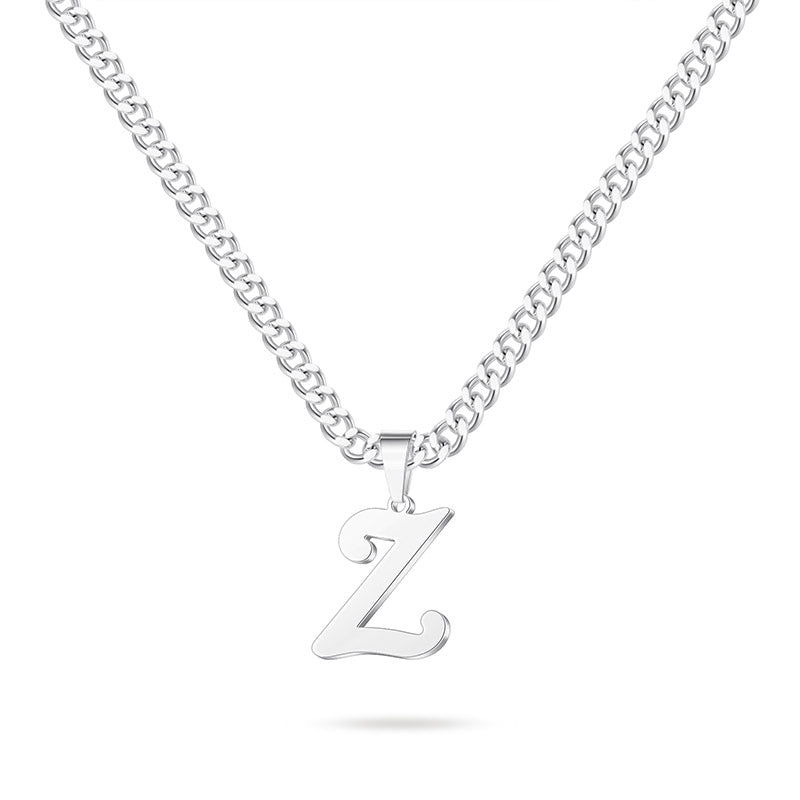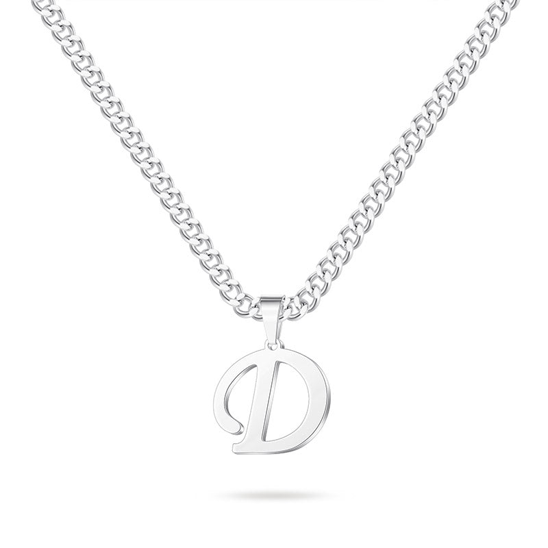 Silvery Initial A-Z Letter Necklace Stainless Steel Cuban Chain Initial Necklace for Men Women Jewelry Gifts