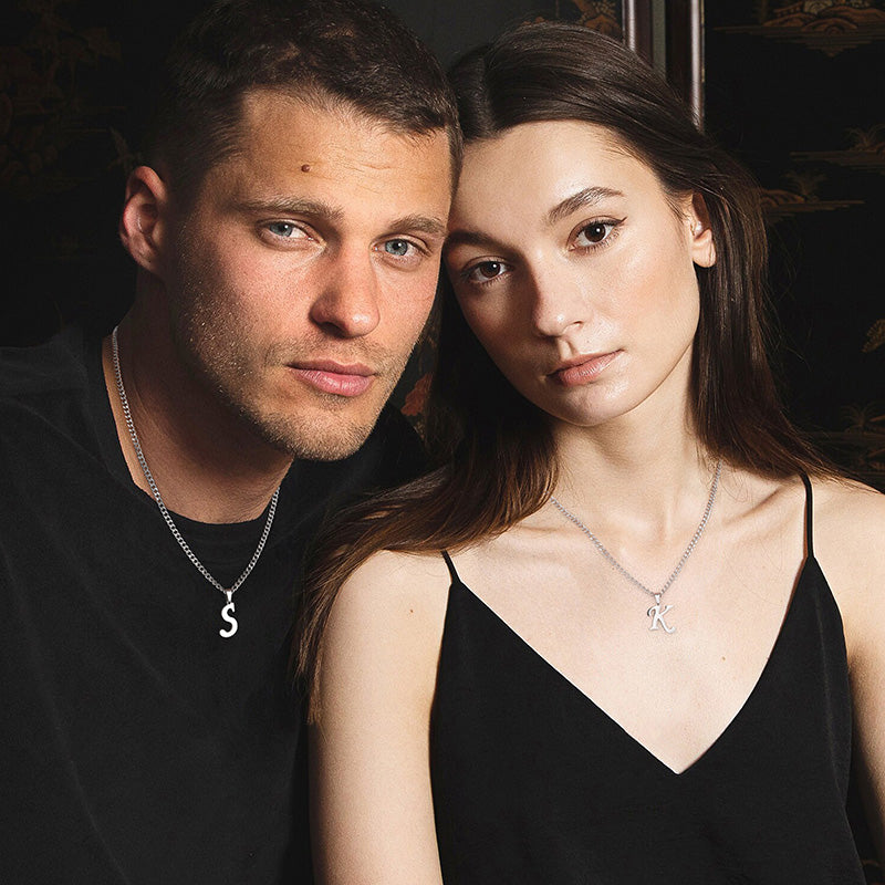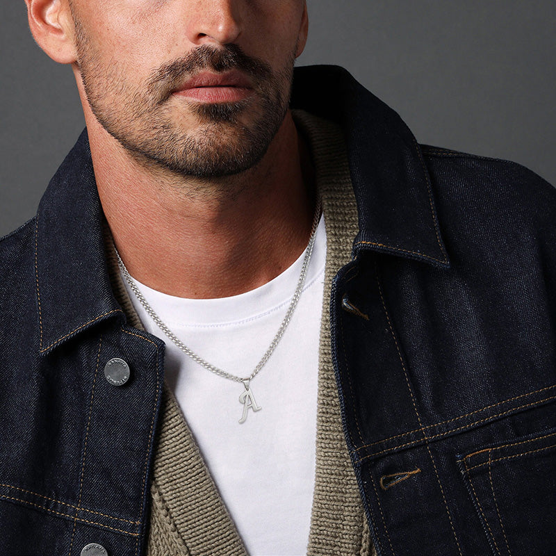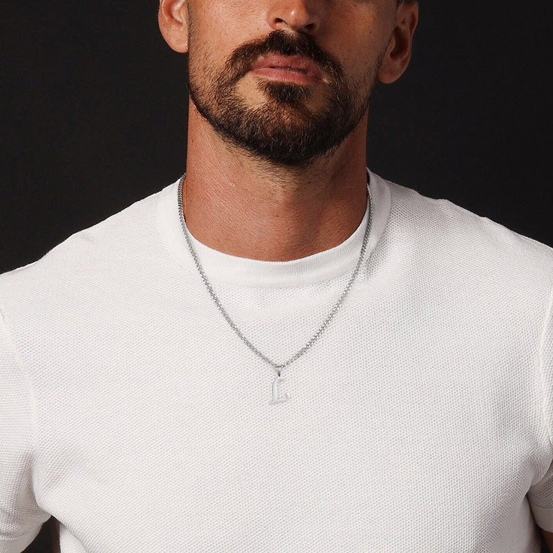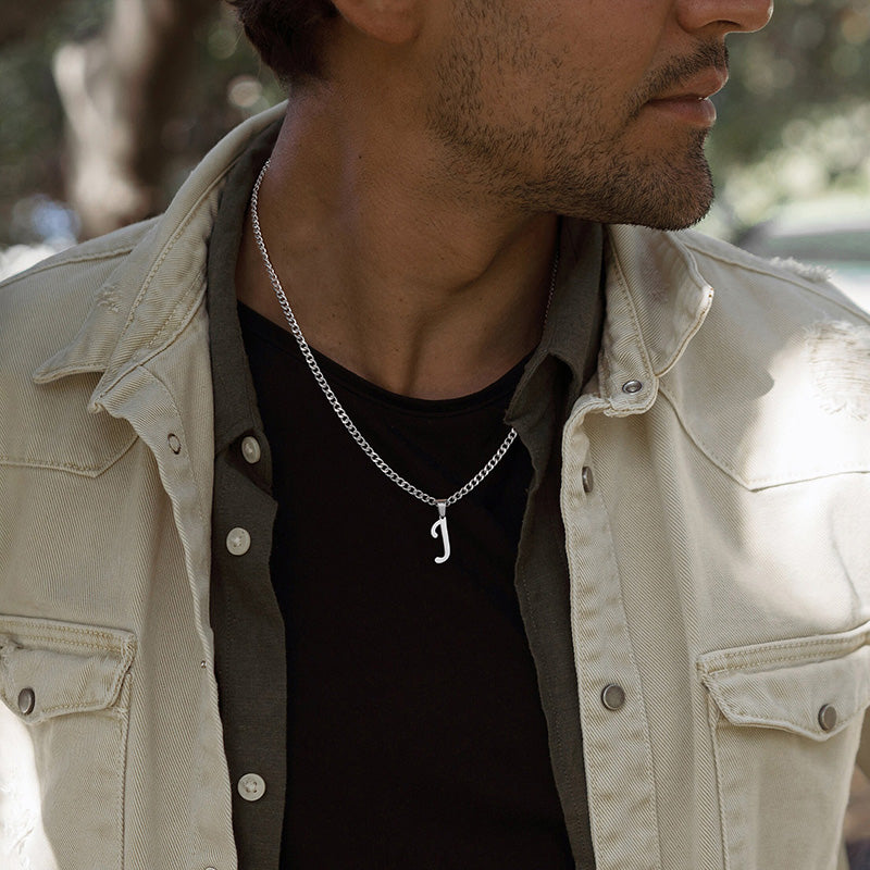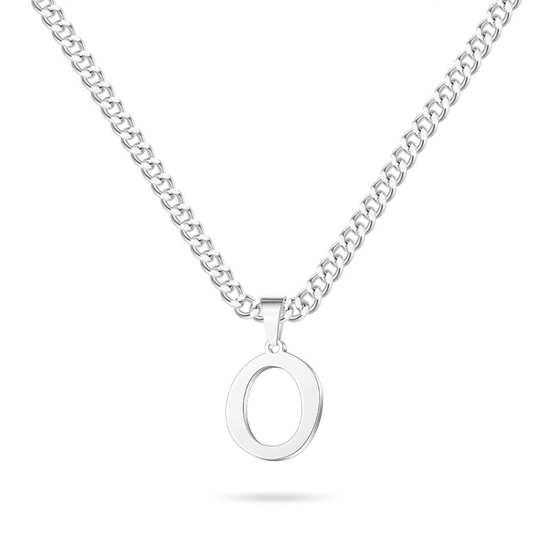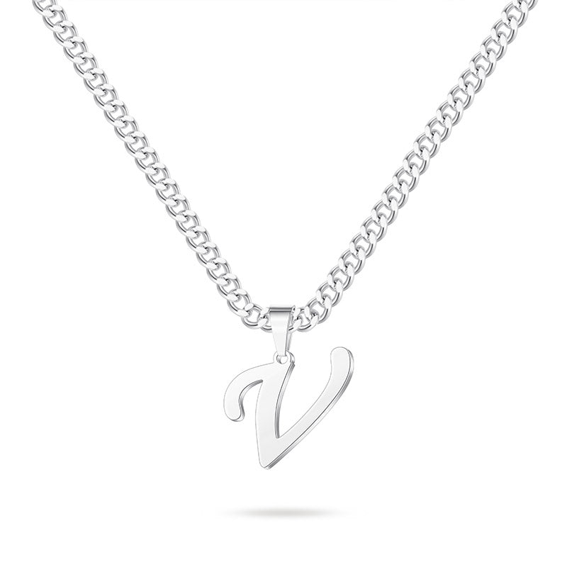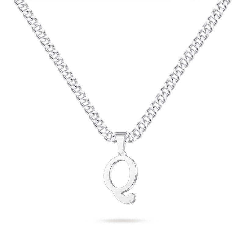 Silvery Initial A-Z Letter Necklace Stainless Steel Cuban Chain Initial Necklace for Men Women Jewelry Gifts