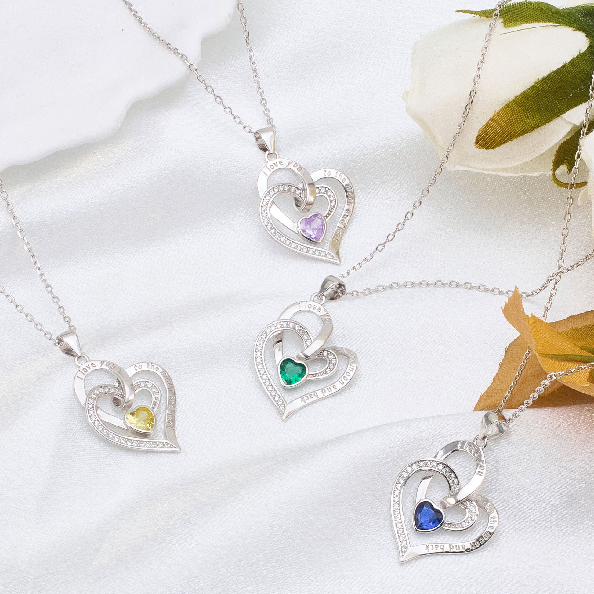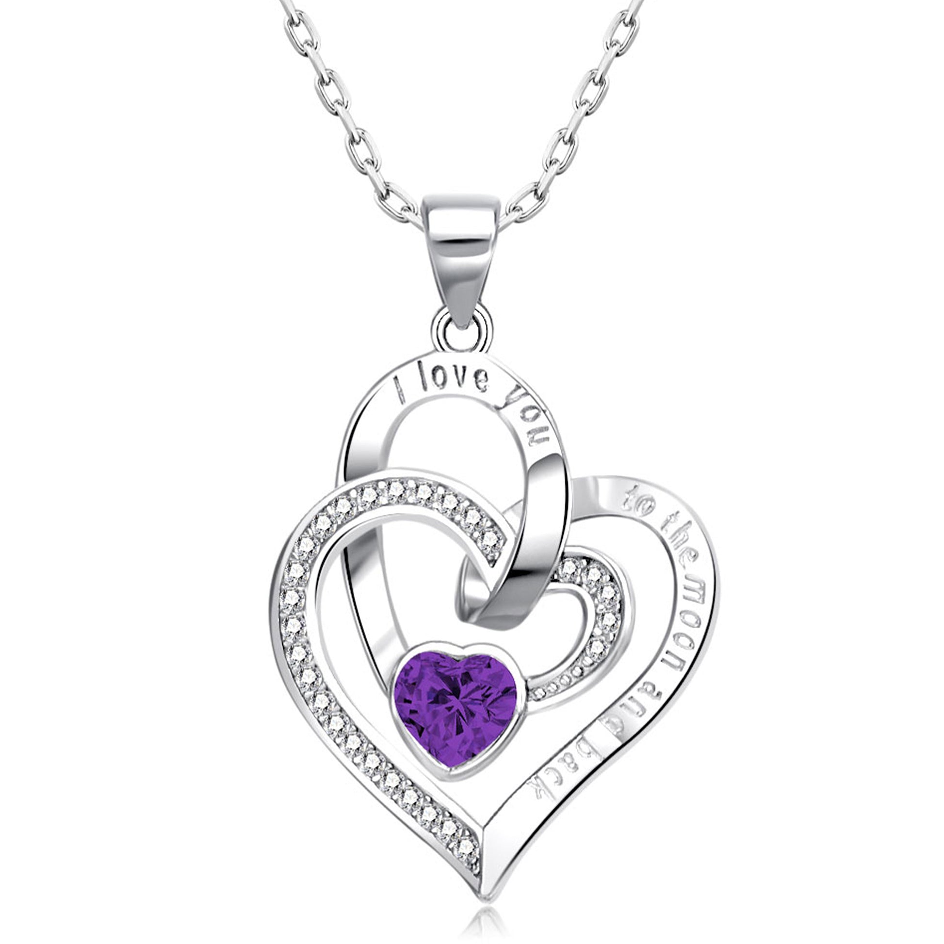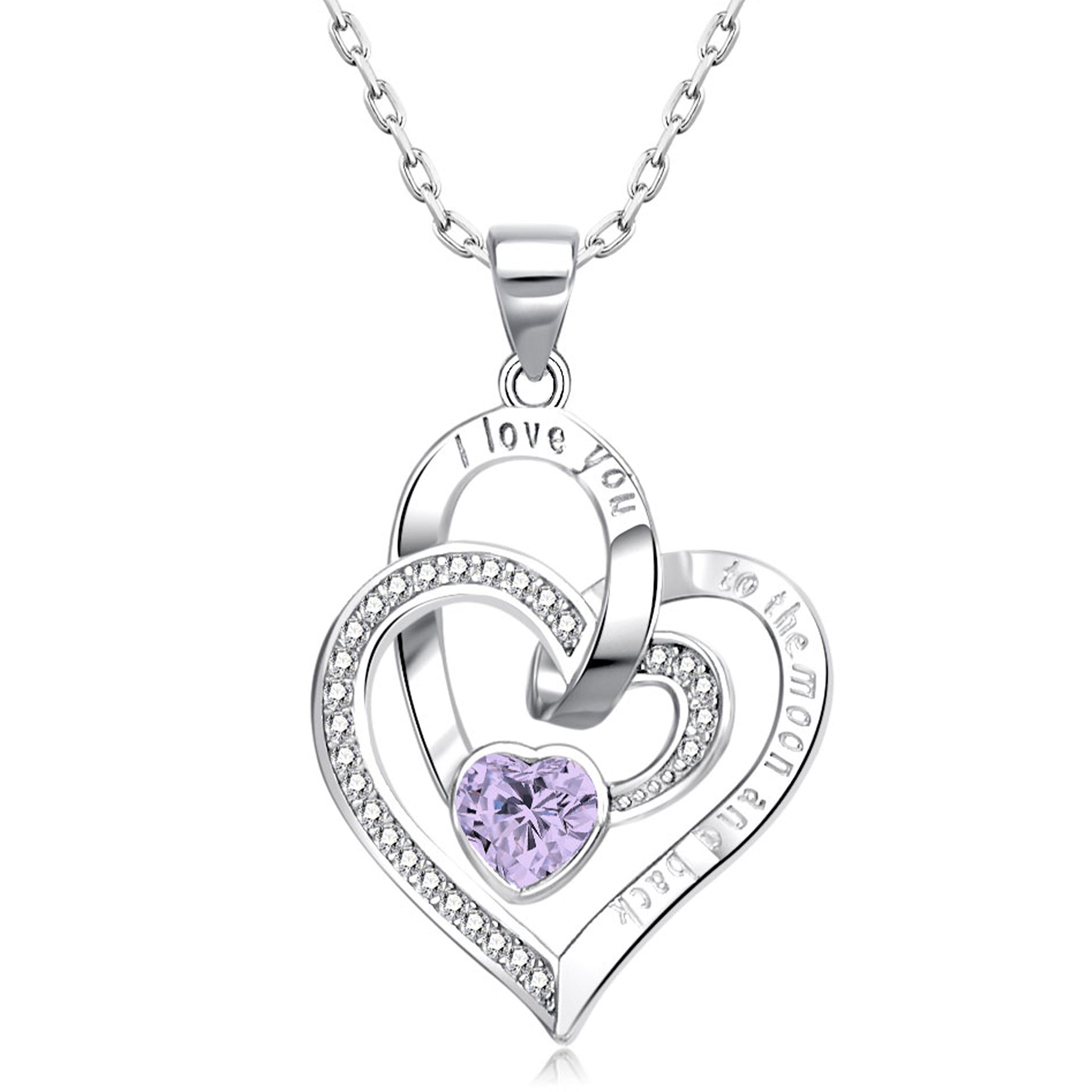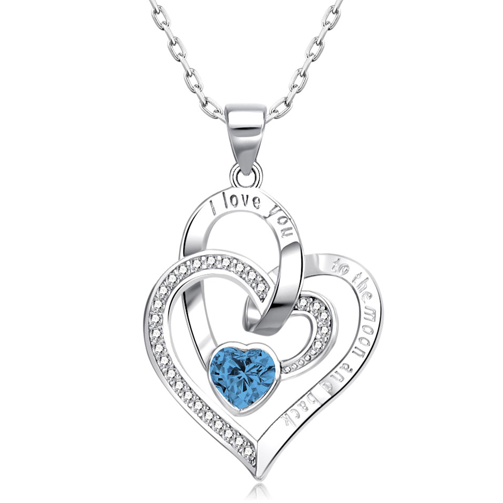 Silvery necklace, heart-shaped birthstone necklace, 925 silver plated zircon pendant necklace, women's jewelry gift, Valentine's Day gift for women's wives and girls