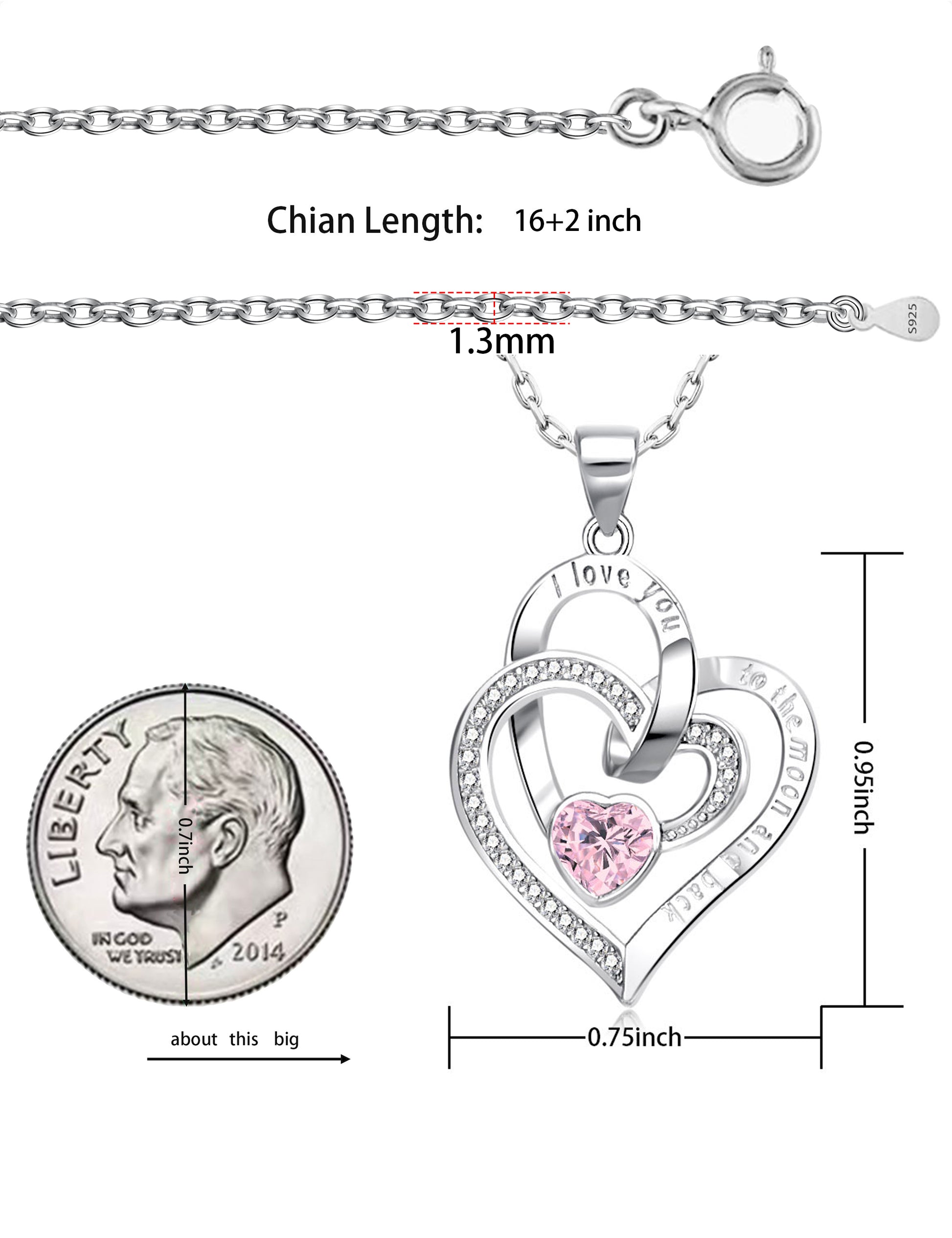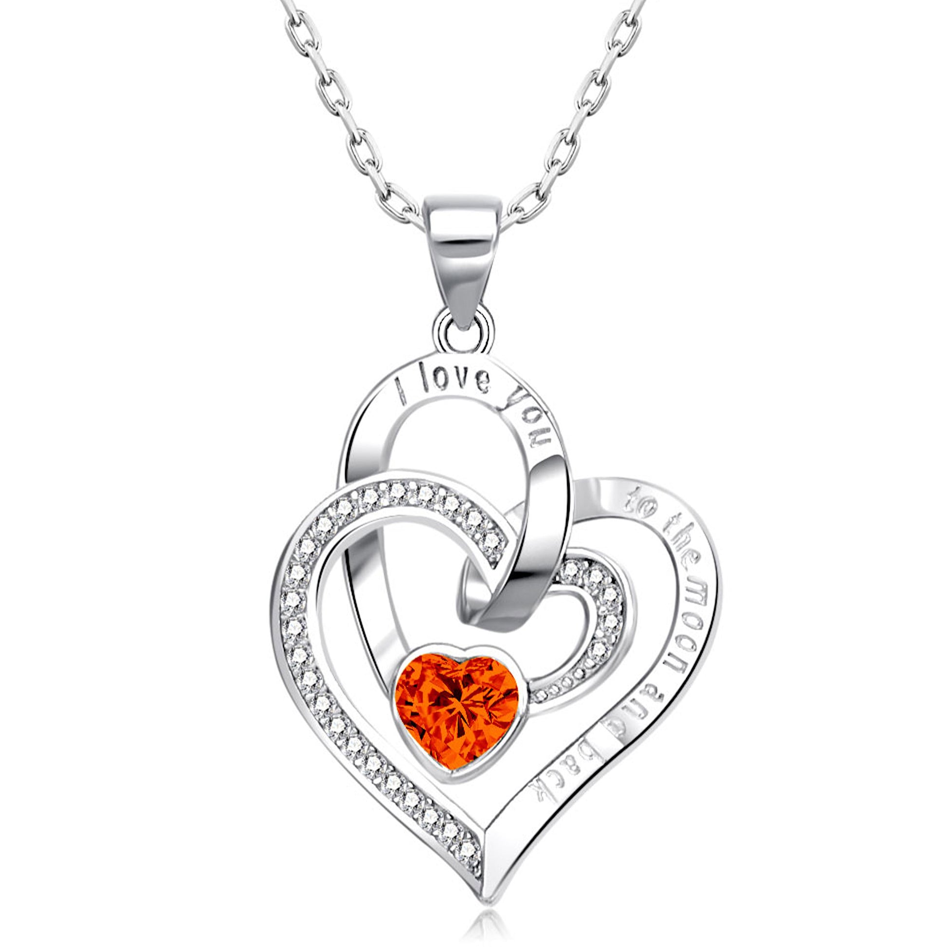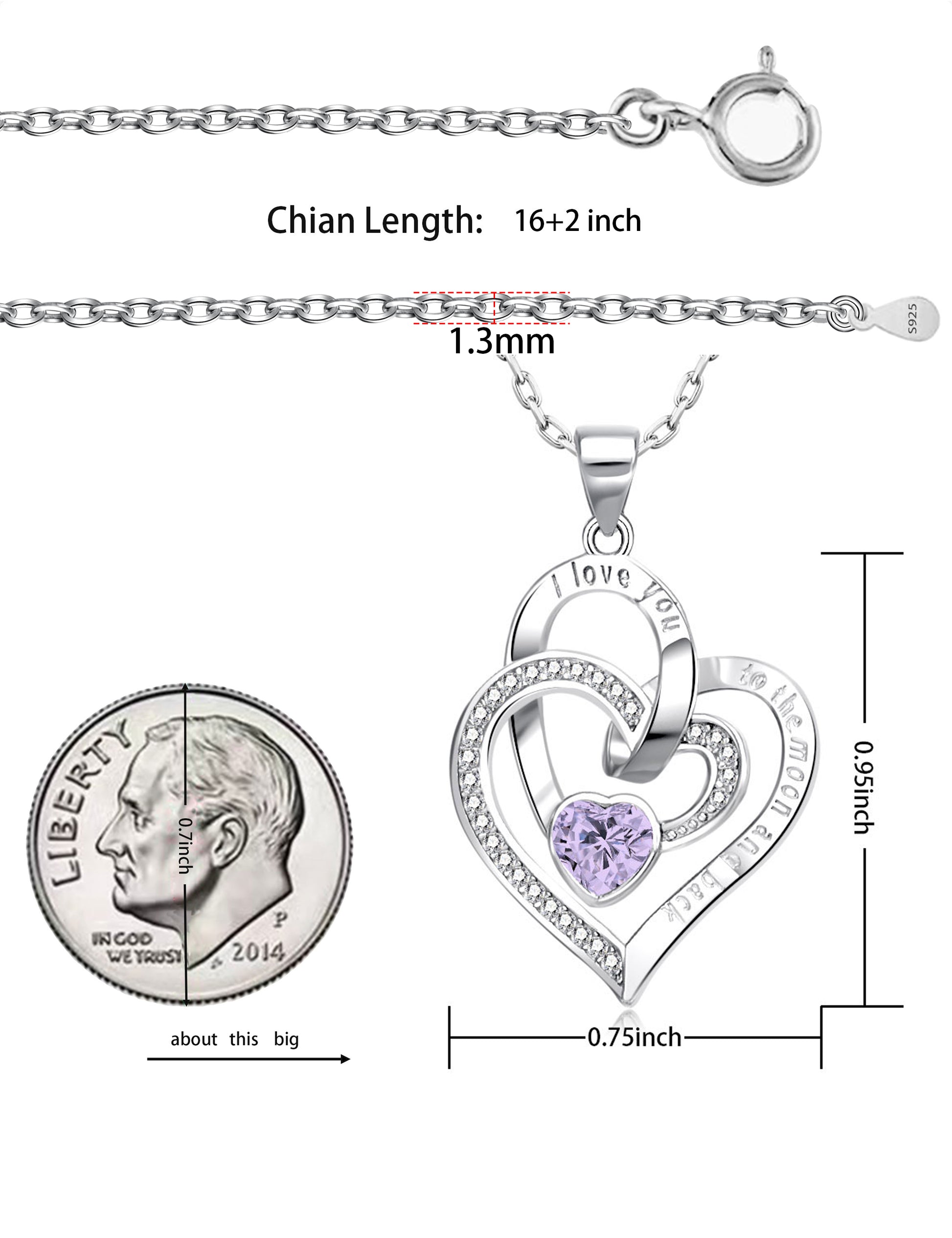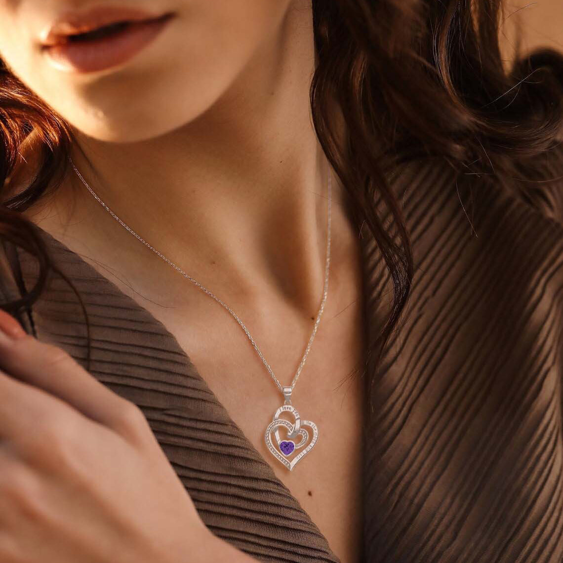 Silvery necklace, heart-shaped birthstone necklace, 925 silver plated zircon pendant necklace, women's jewelry gift, Valentine's Day gift for women's wives and girls