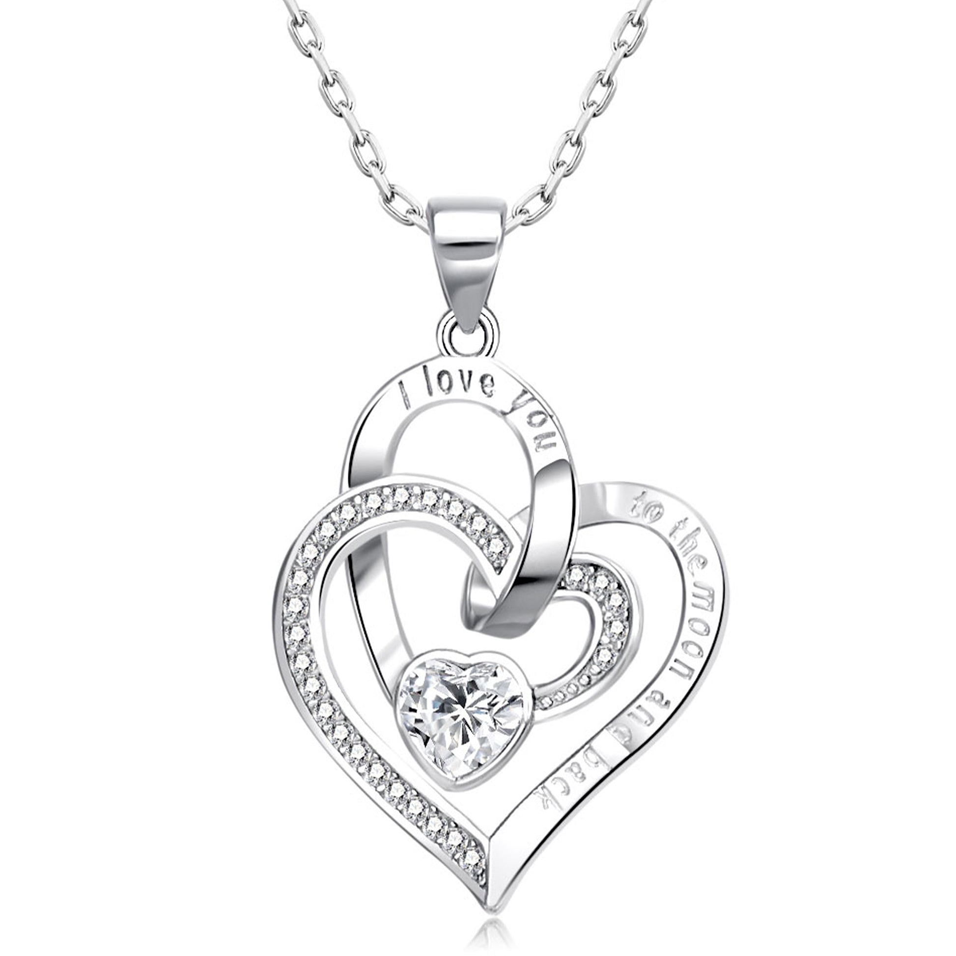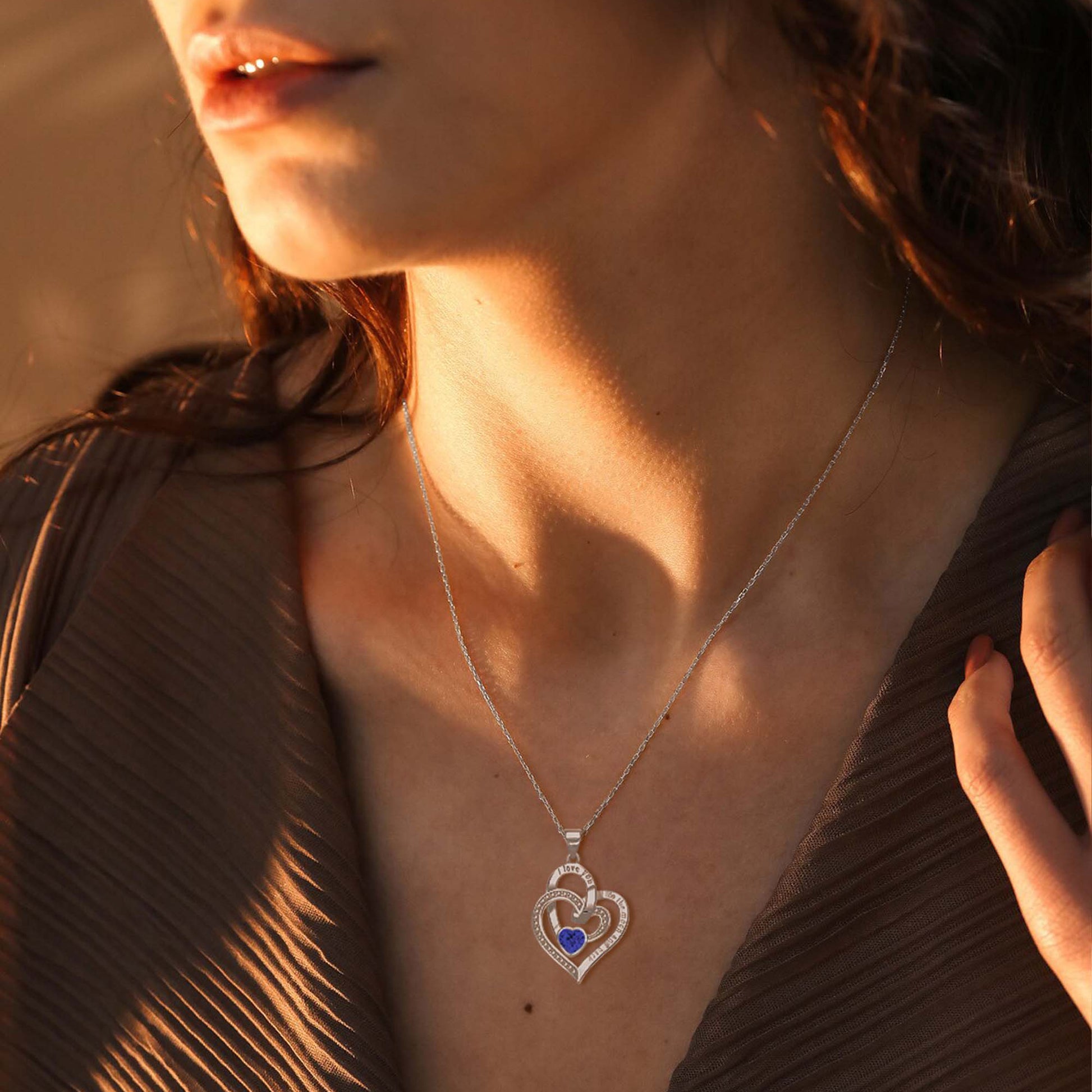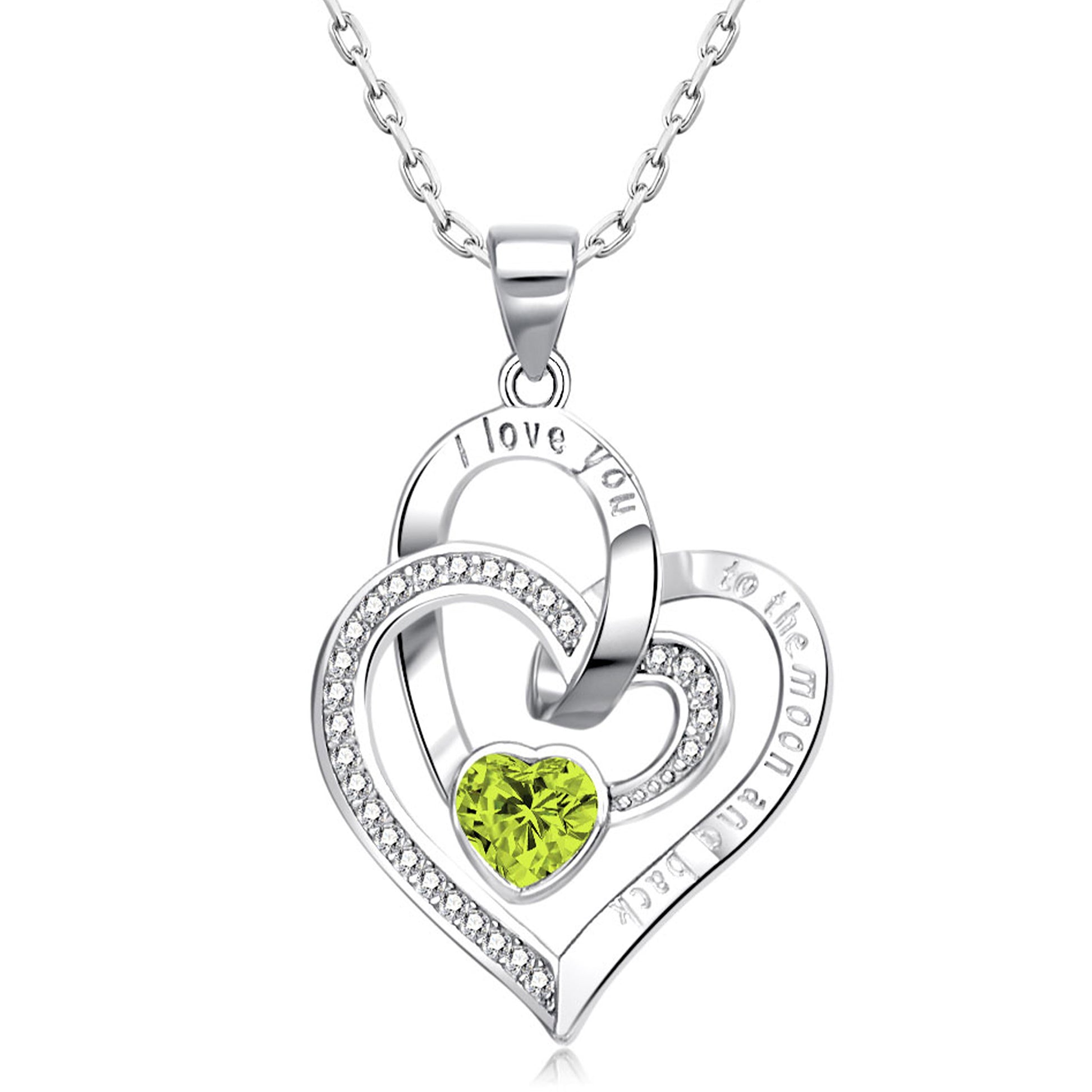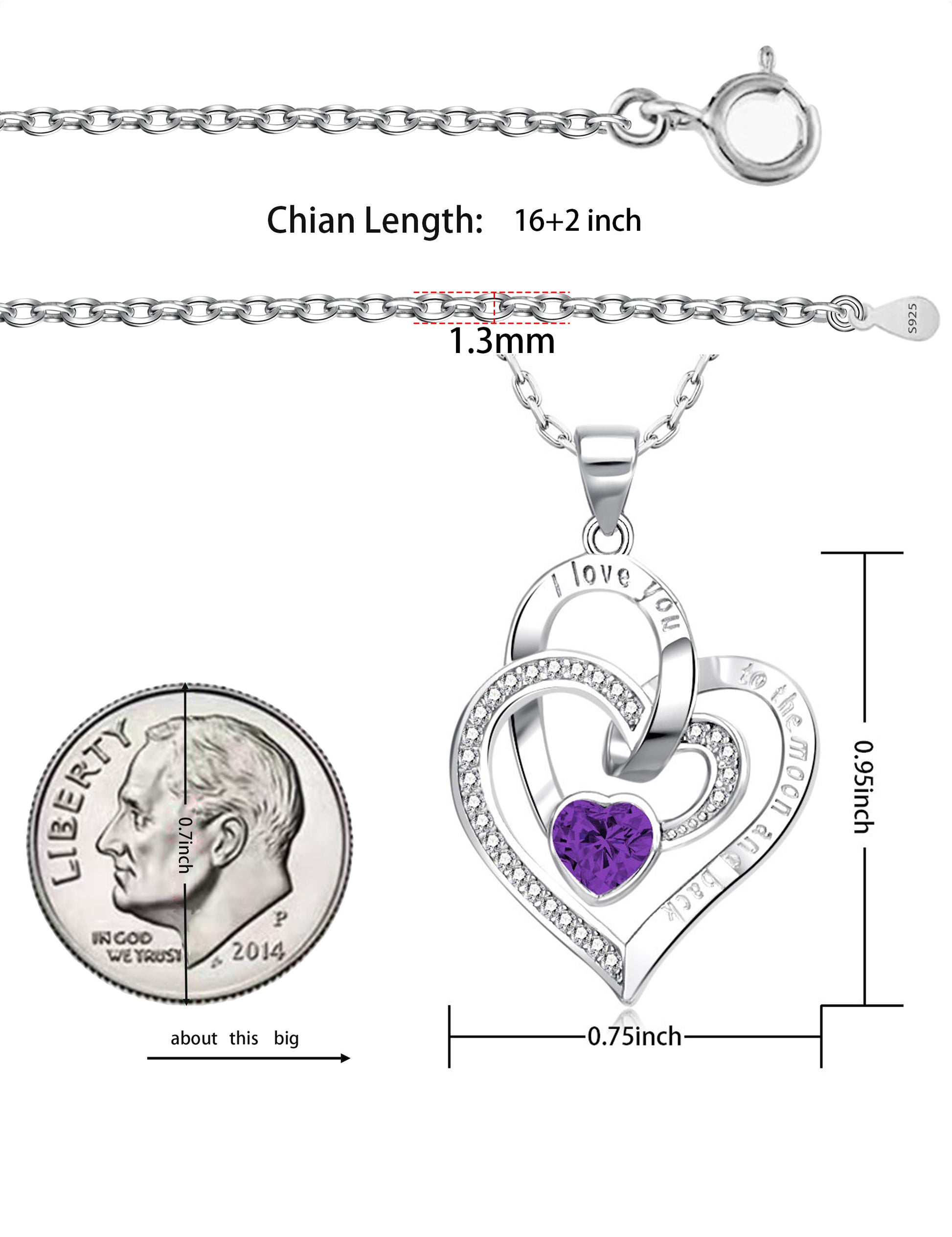 Silvery necklace, heart-shaped birthstone necklace, 925 silver plated zircon pendant necklace, women's jewelry gift, Valentine's Day gift for women's wives and girls