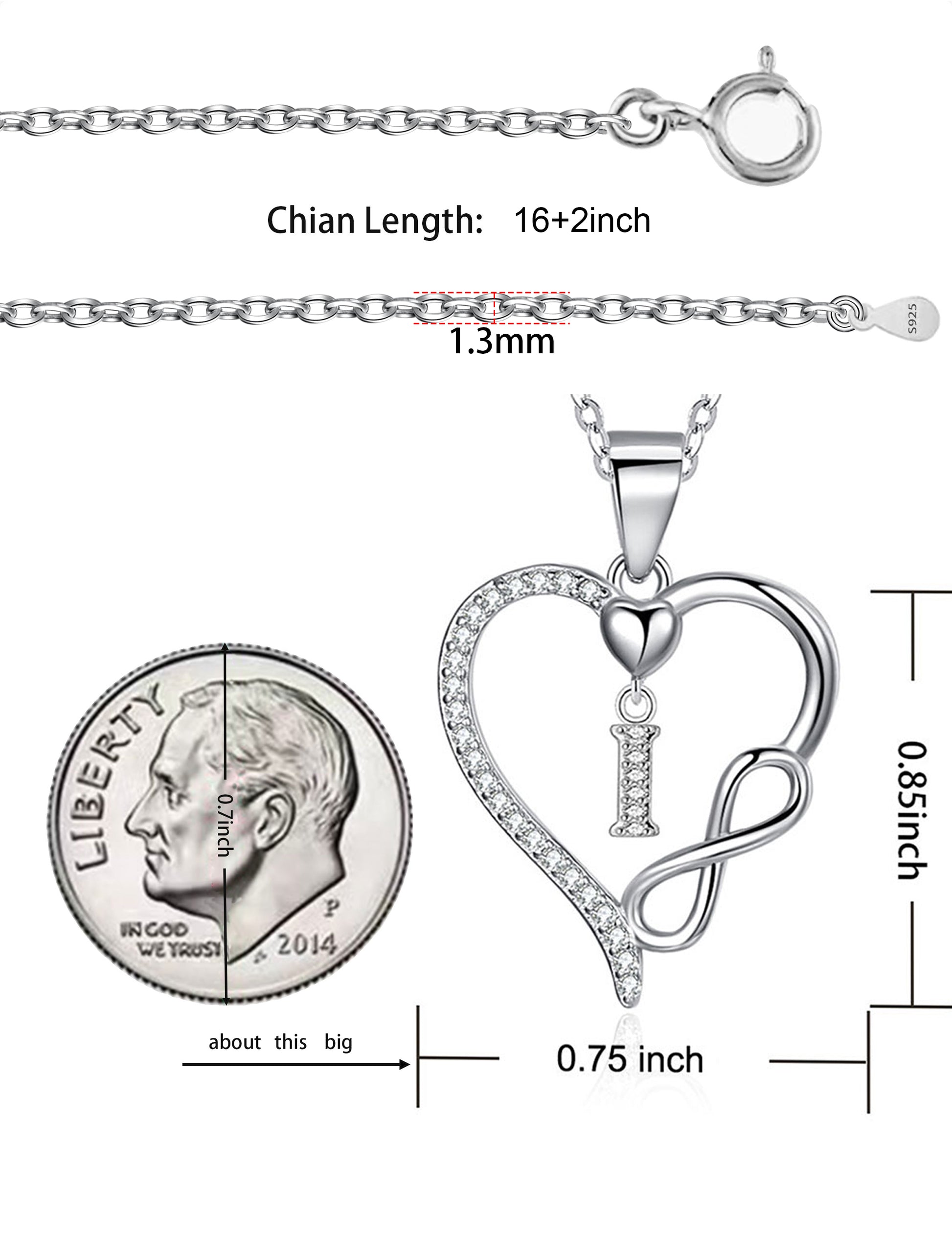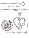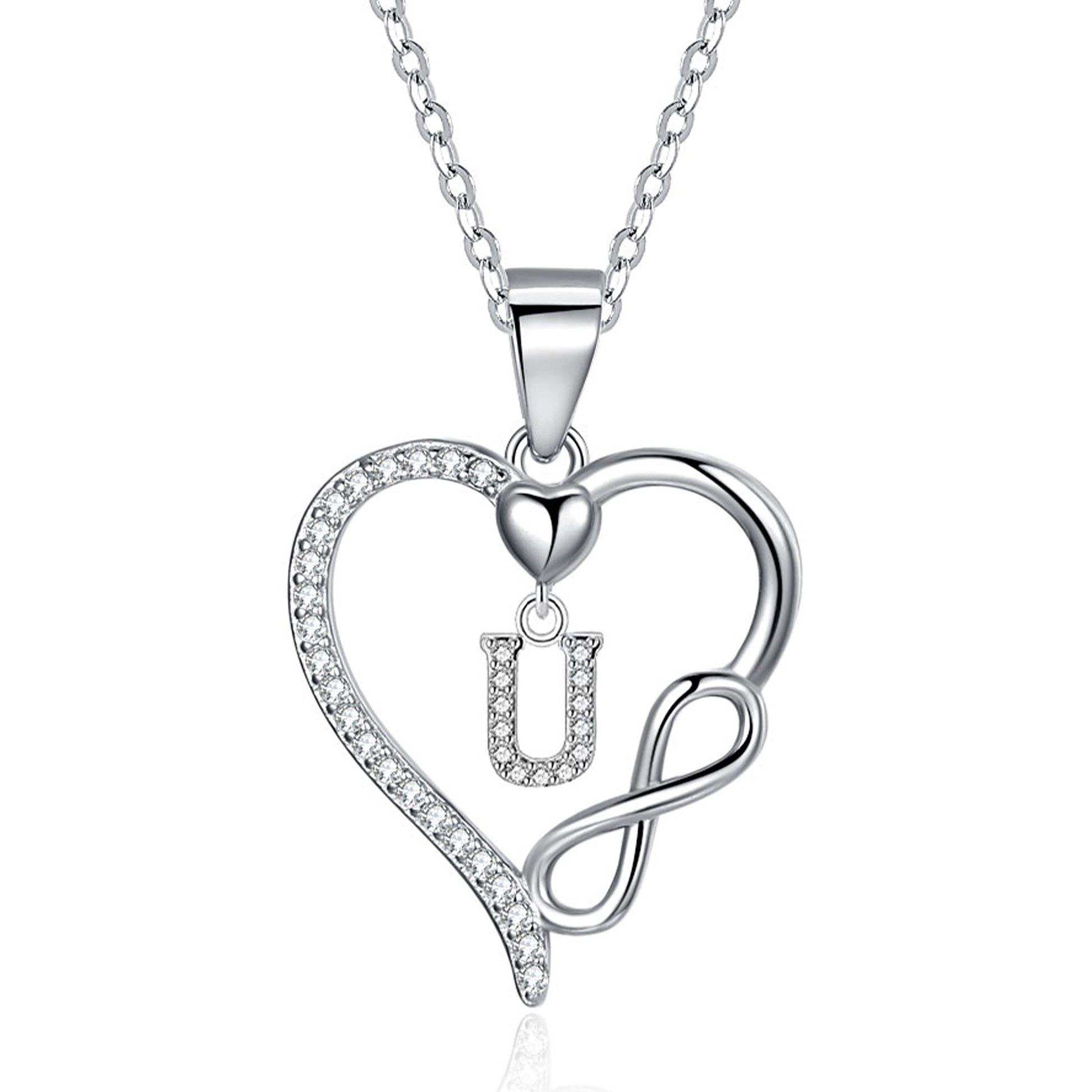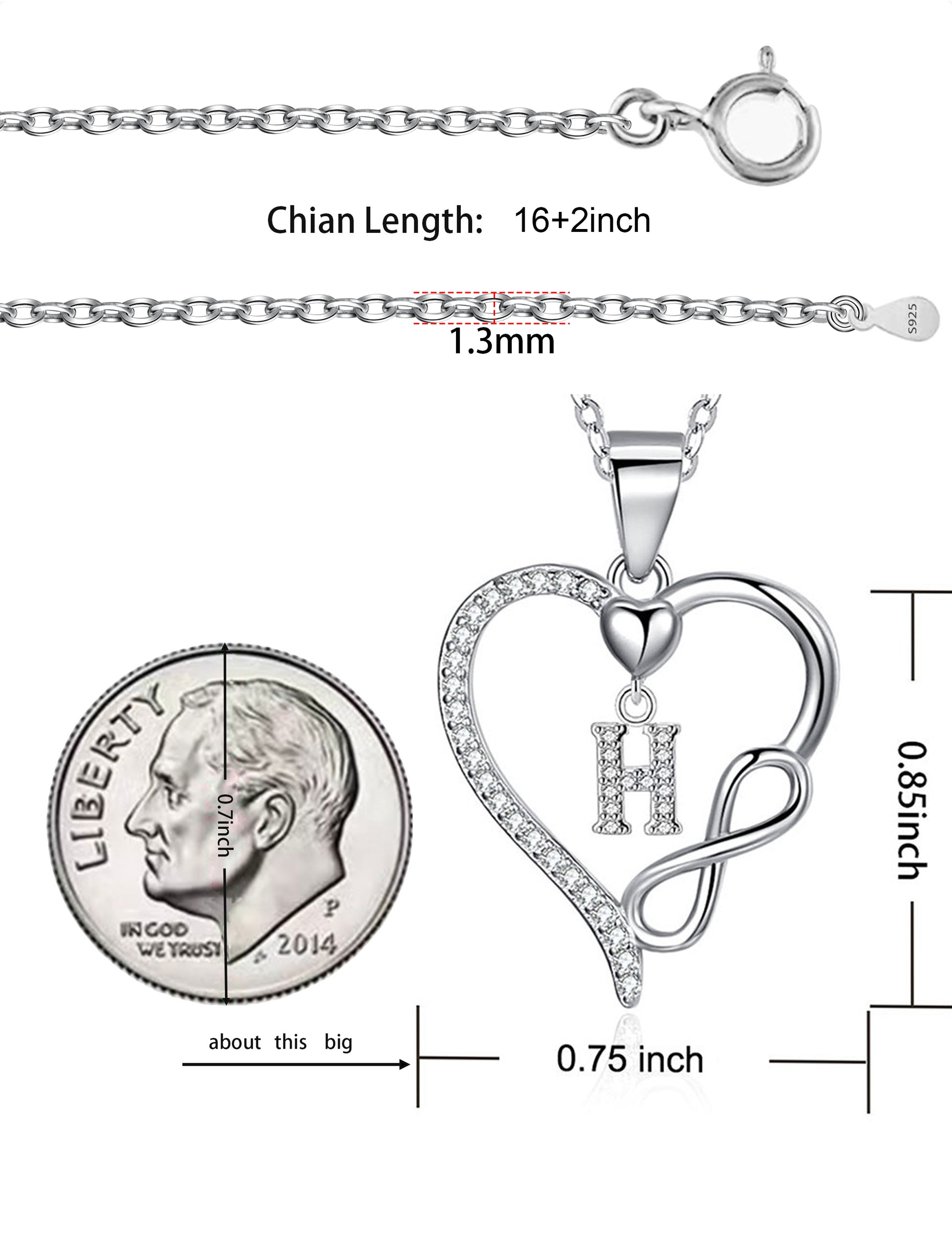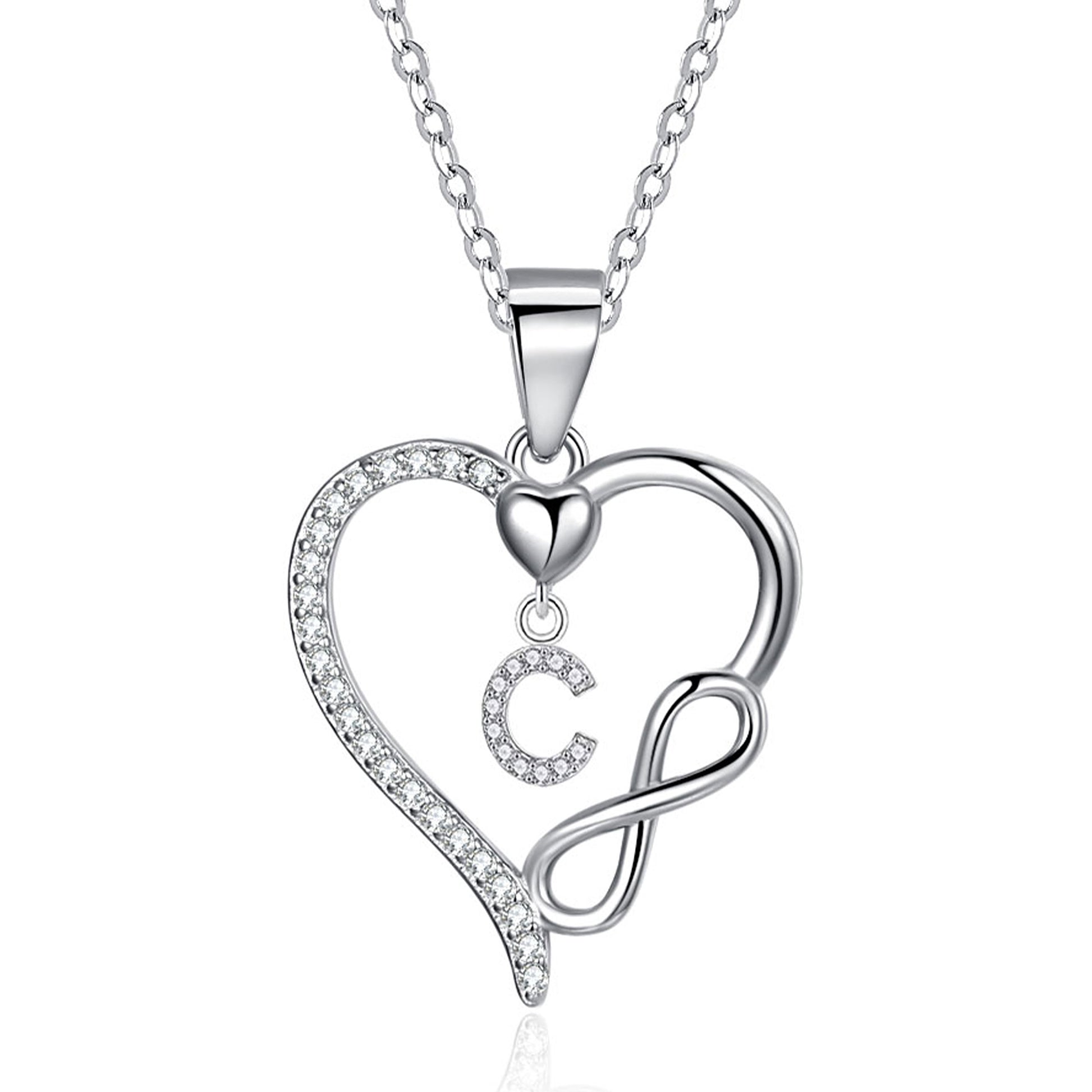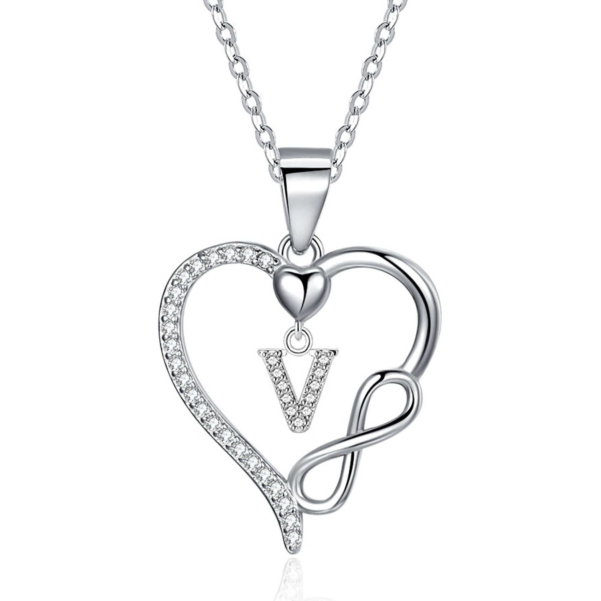 Silvery necklace, heart-shaped pendant with first letter necklace, 925 silver plated zircon pendant necklace, women's jewelry gift, Valentine's Day gift for women's wives and girls