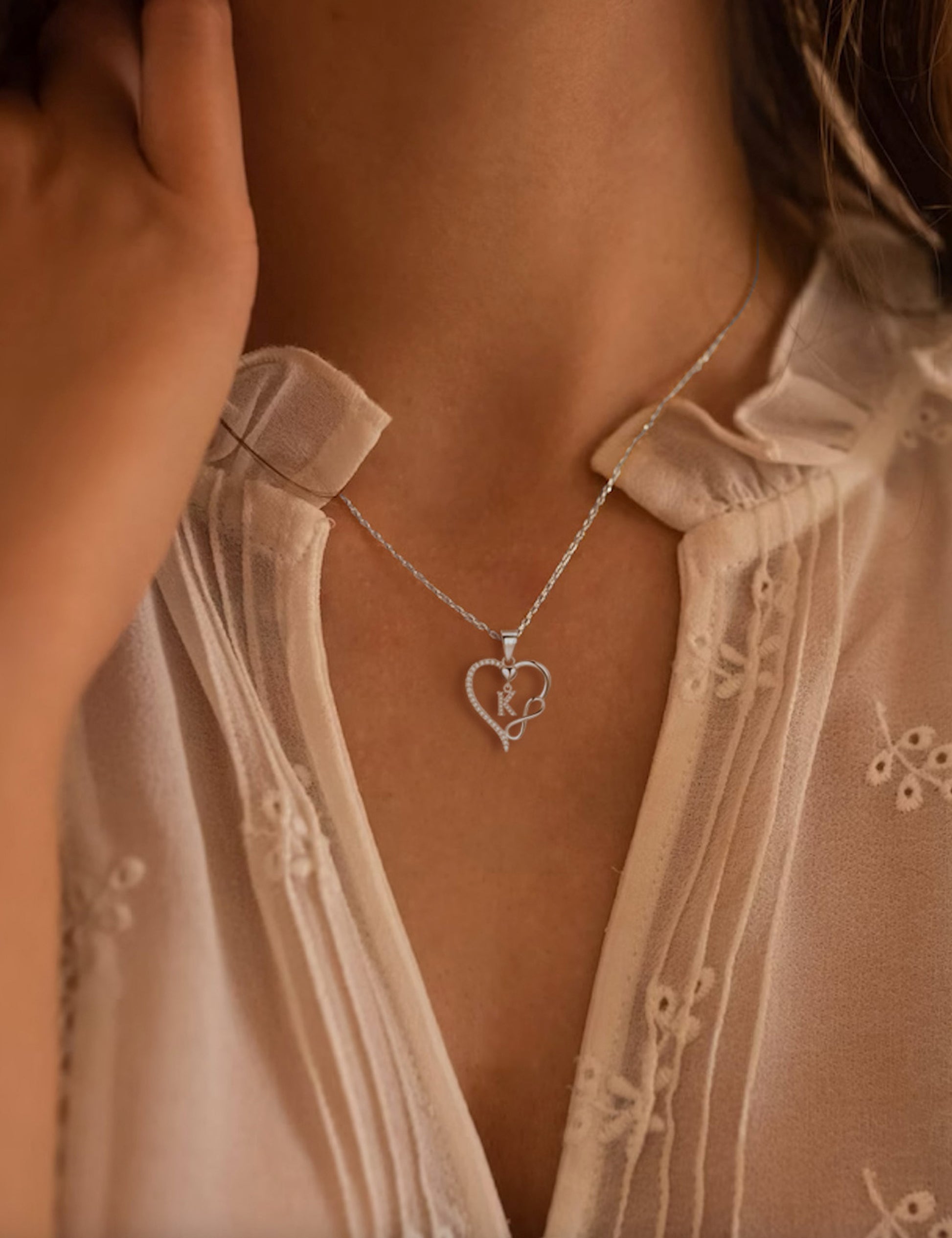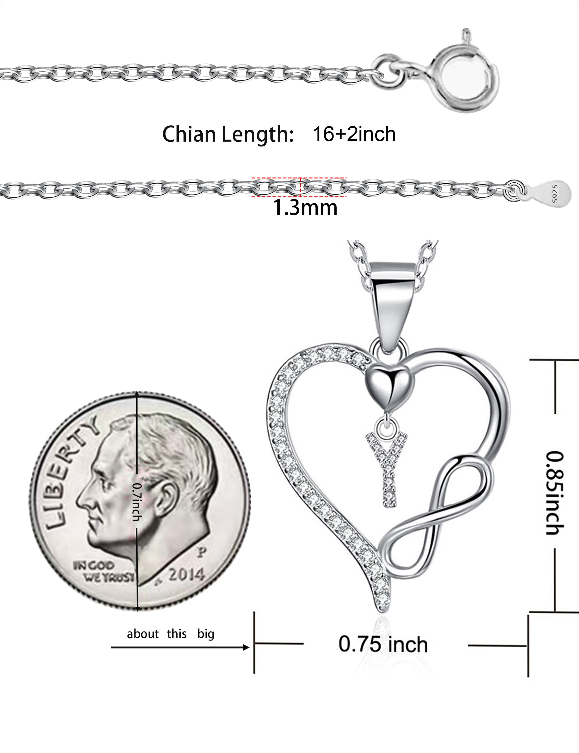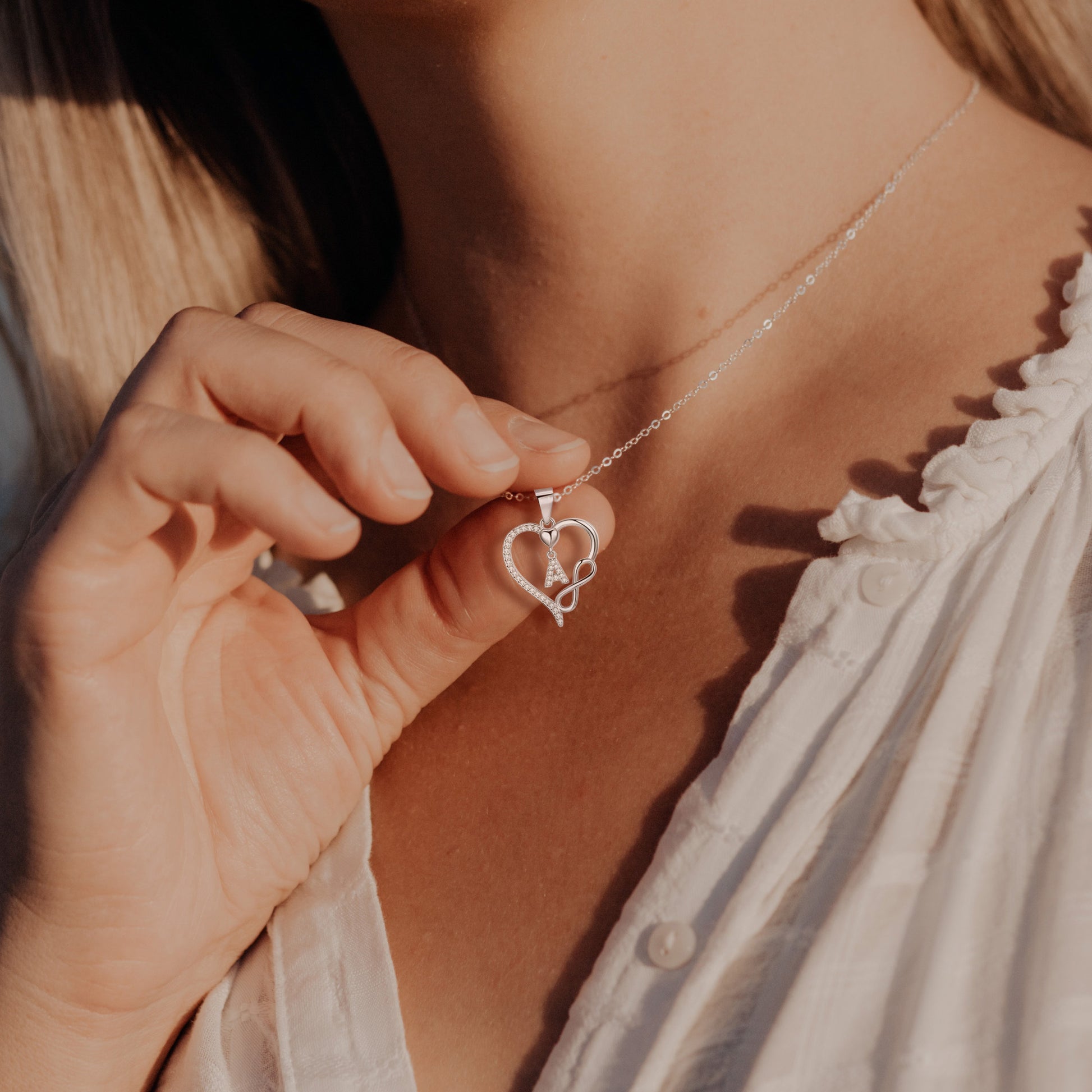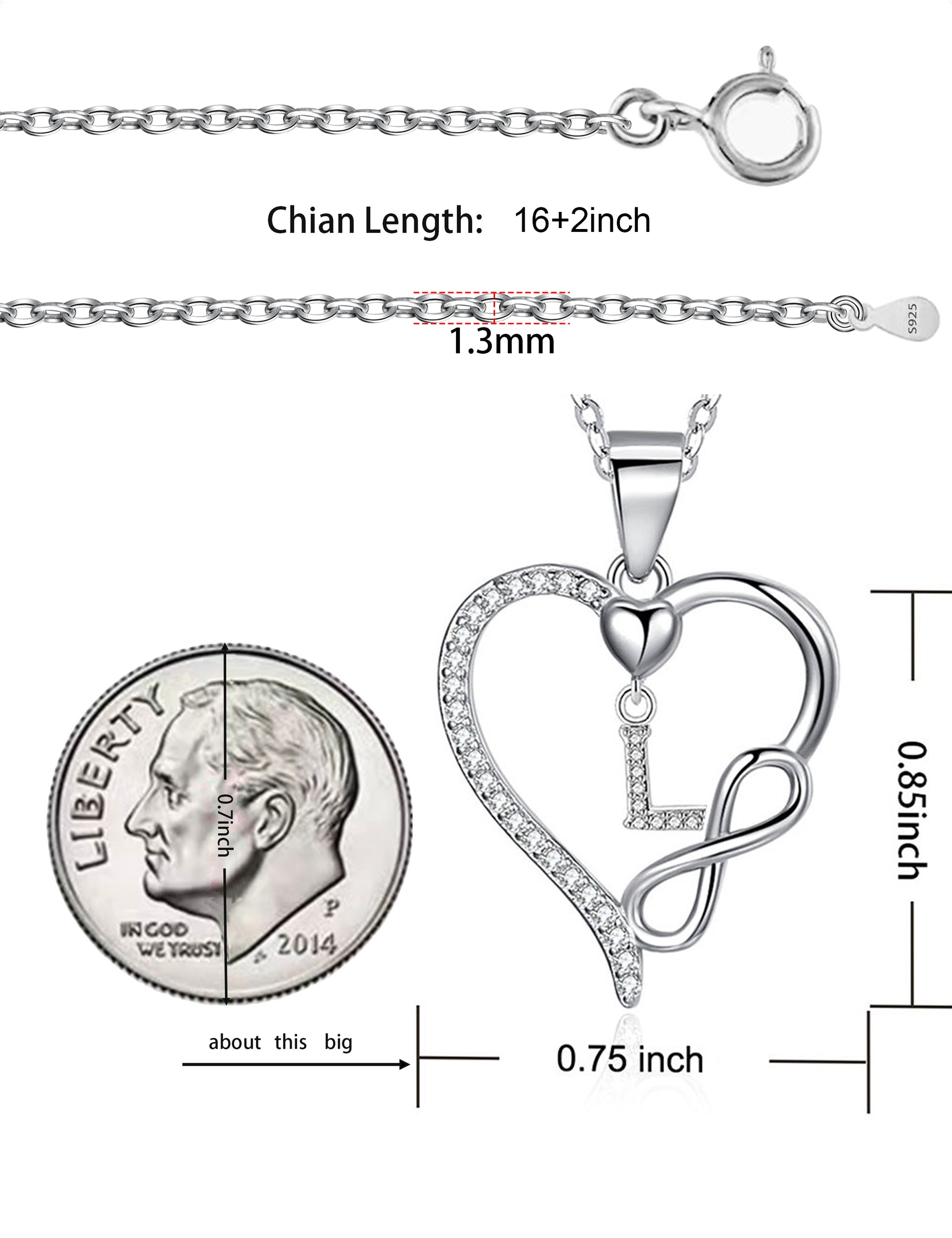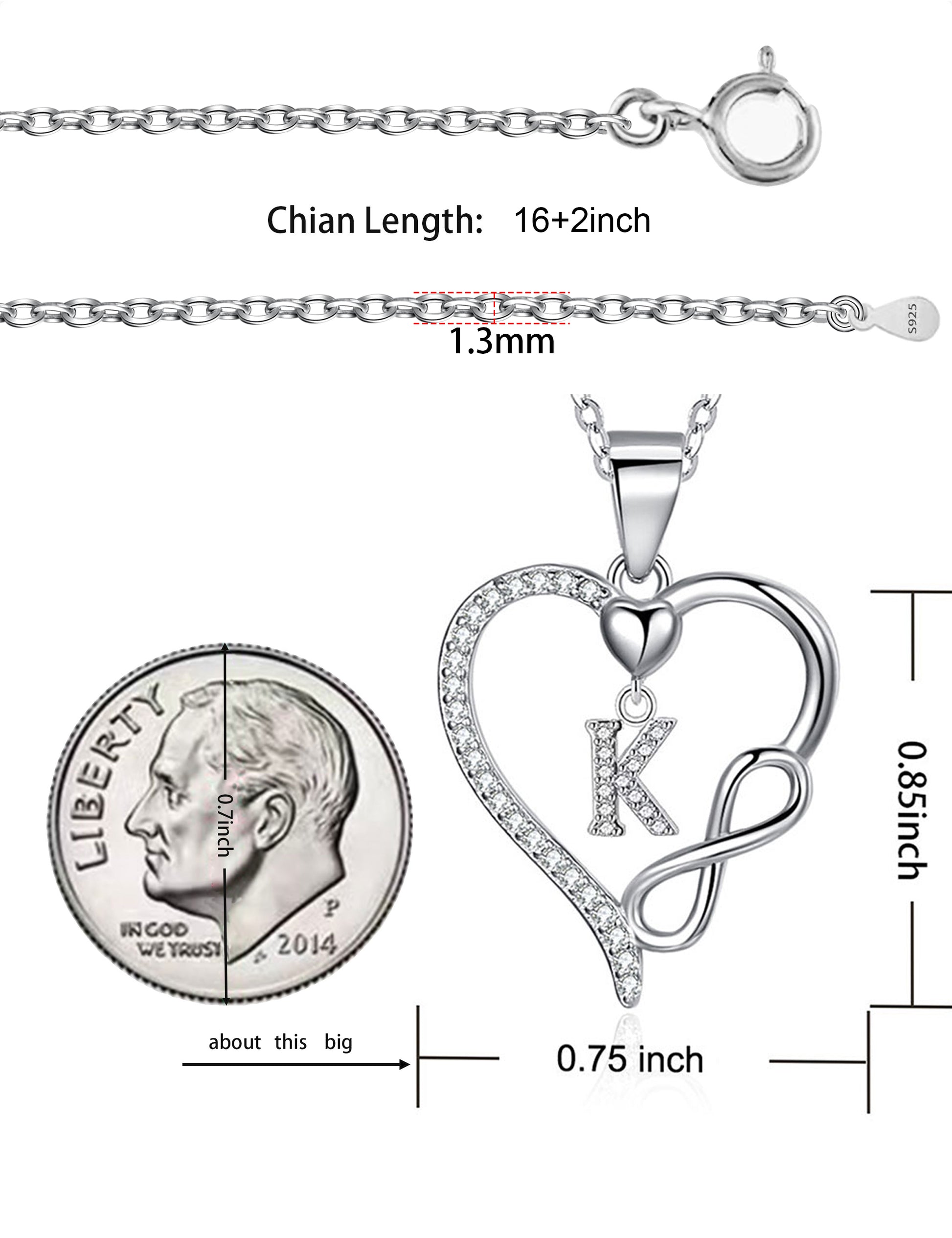 Silvery necklace, heart-shaped pendant with first letter necklace, 925 silver plated zircon pendant necklace, women's jewelry gift, Valentine's Day gift for women's wives and girls
