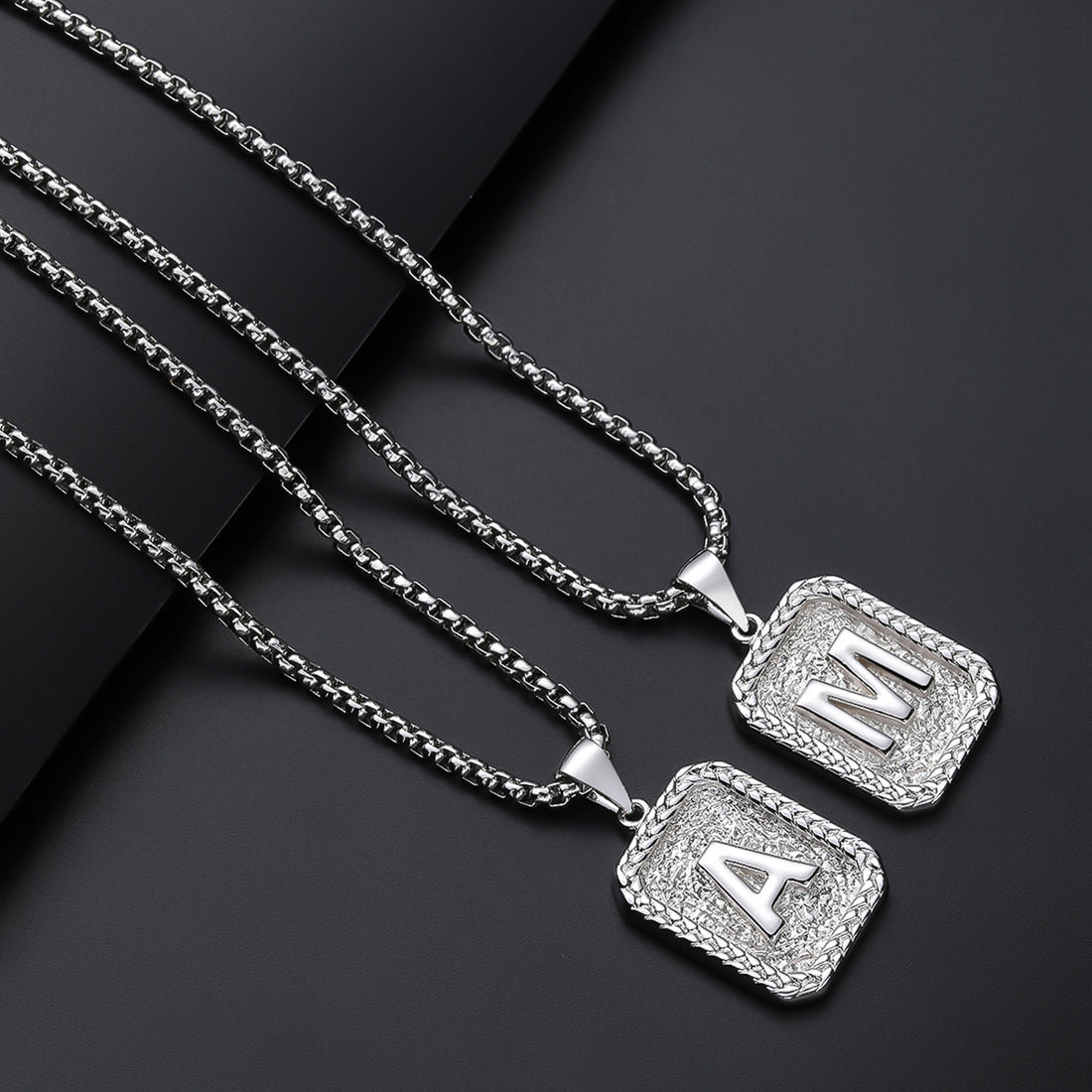 Silvery Initial A-Z Letter Necklace Stainless Steel Cuban Chain Initial Necklace for Men Women Jewelry Gifts