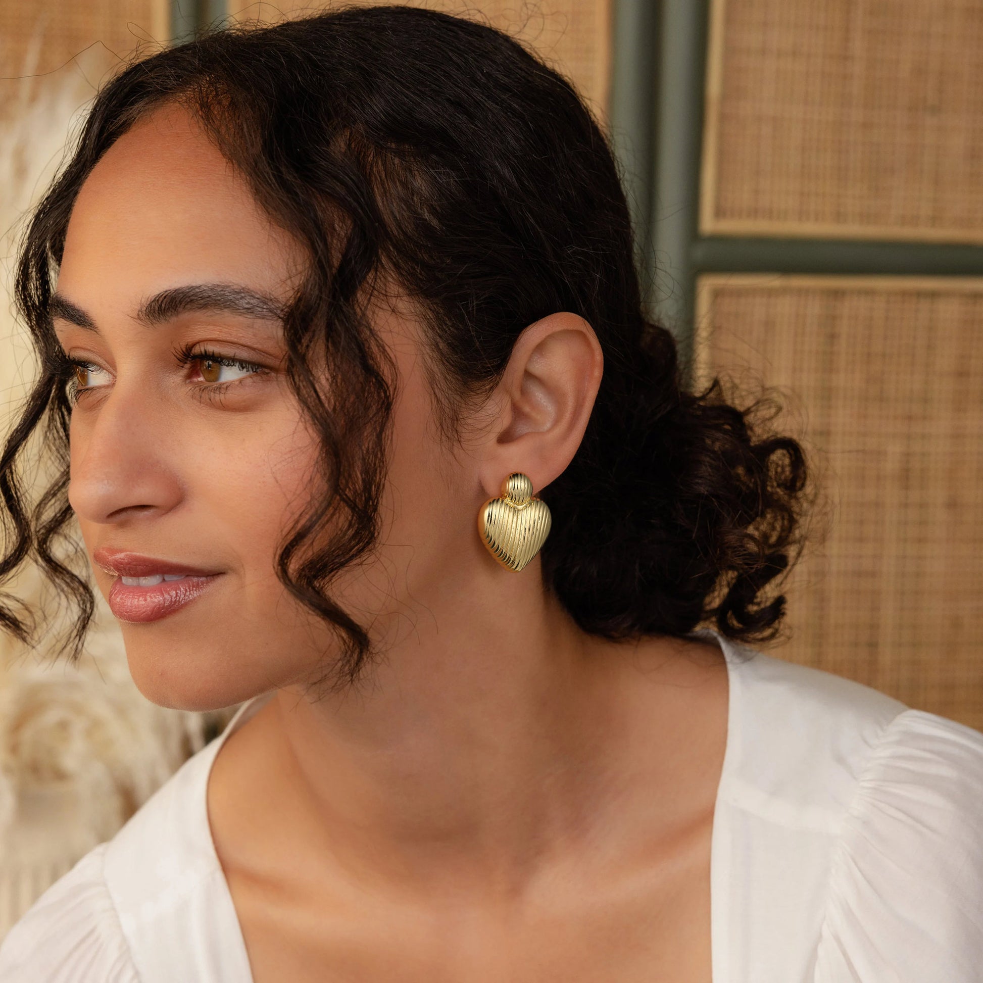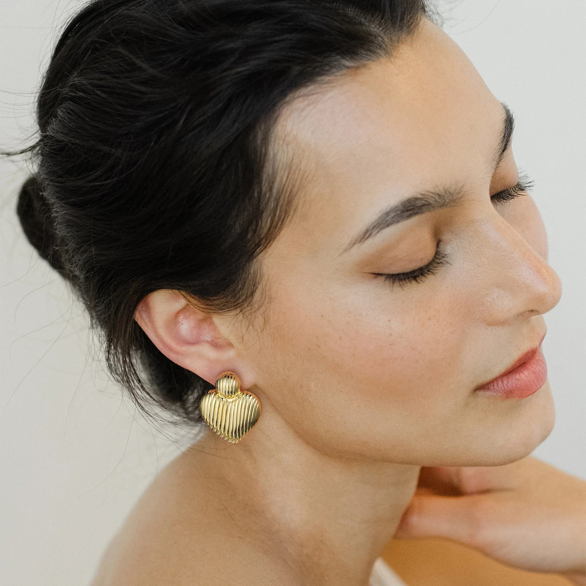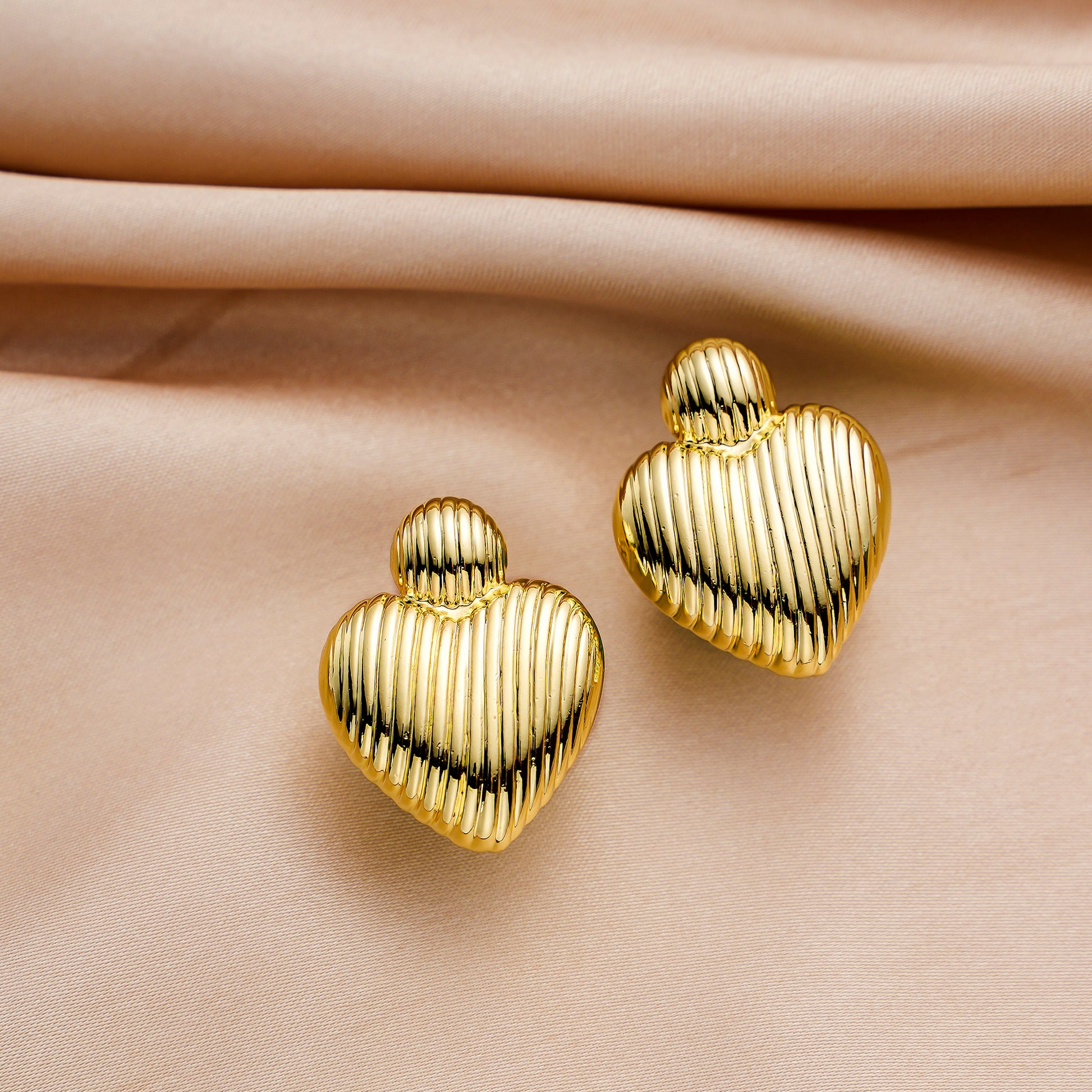 Golden-colored, bird-like heart-shaped earrings