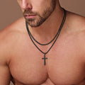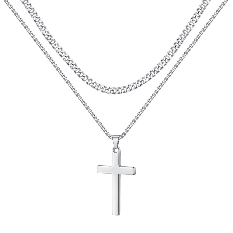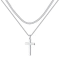Golden/Black/Silvery, Short Cuban Chain, Extended Pearl Chain, Double Layer Chain, Cross Pendant Necklace, Style B - Medium Pendant