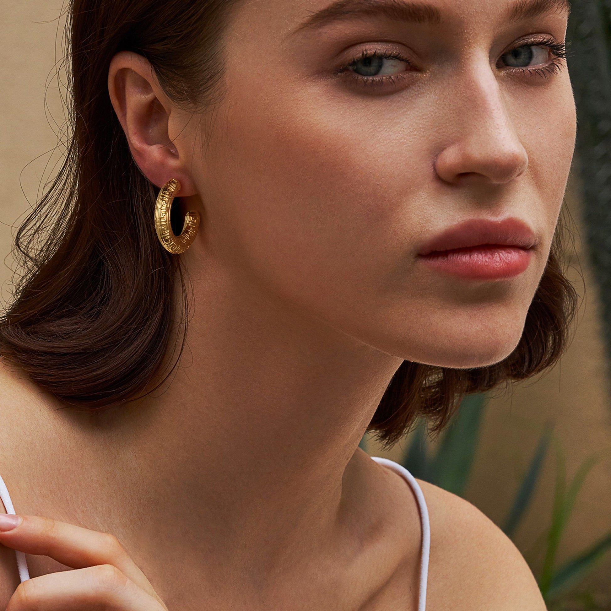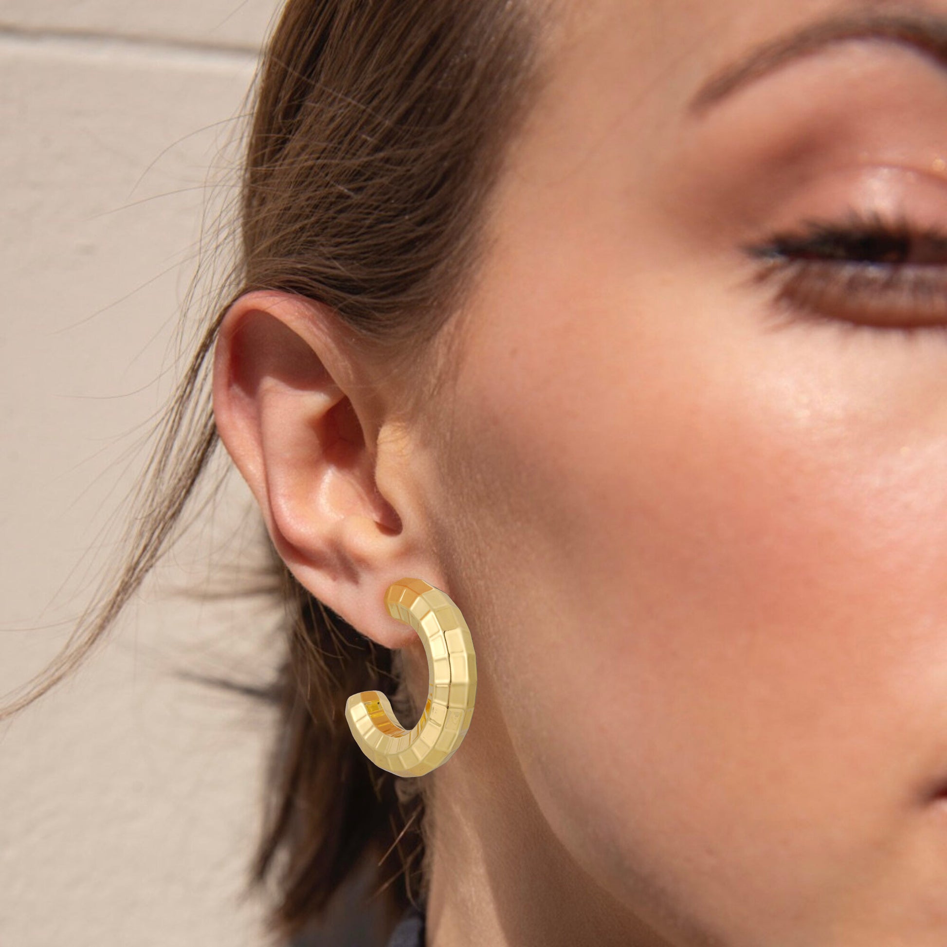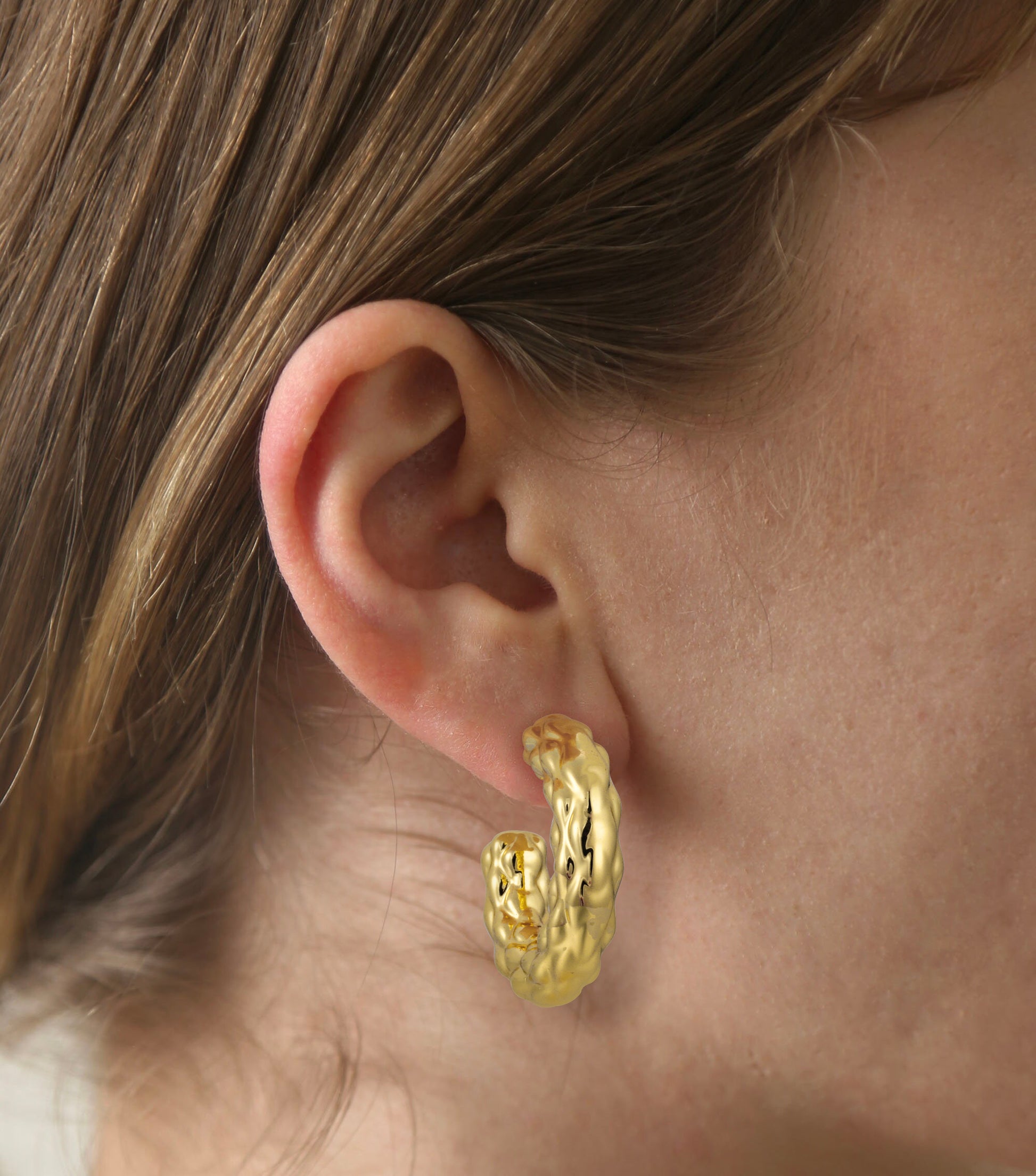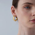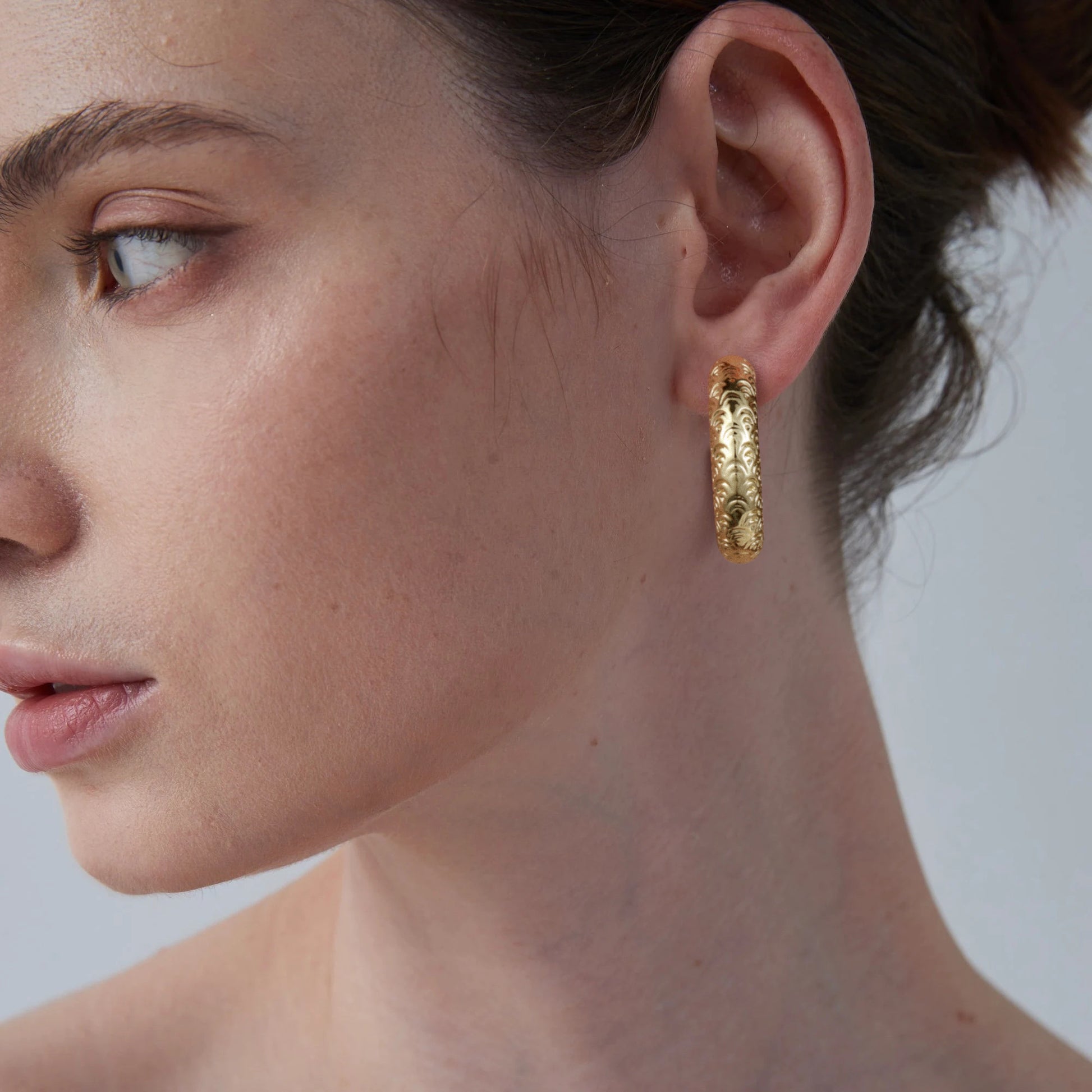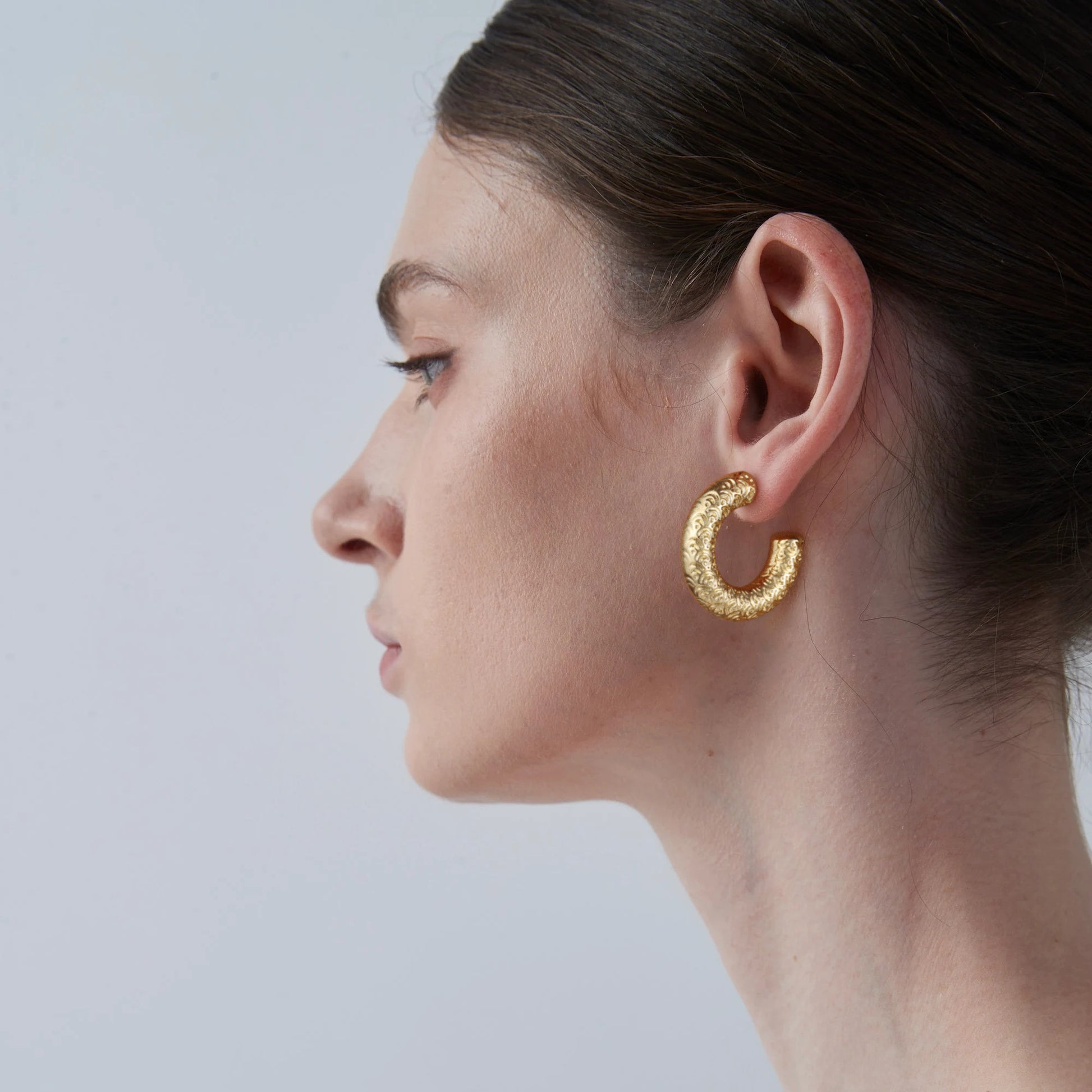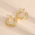 Golden earrings with auspicious cloud and half-moon pattern in curved shape