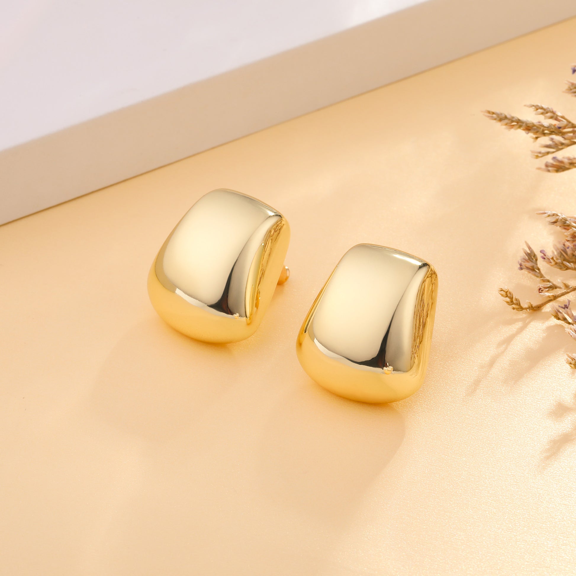 Thick golden earrings: This golden earring combines the flashing luster with the heavy appearance, giving people a unique aesthetic feeling. The round shape in the square makes the earrings more elegant, and the hollow design brings you a light wearing experience.