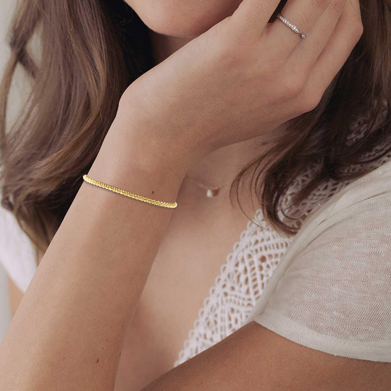 Silver and gold bracelet for women is crafted from a variety of sustainable precious metals, carefully chosen for their ethical and eco-friendly properties. A decorative silver and gold plating coats the surface of the bracelet, enhancing its overall appearance. With a solid 925 sterling silver lobster clasp, the sparkling bracelet fits easily around your wrist.