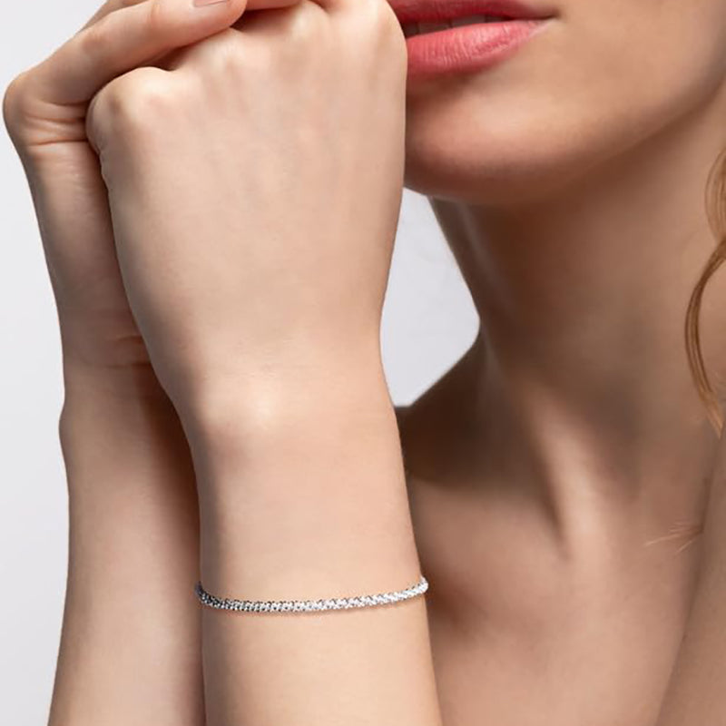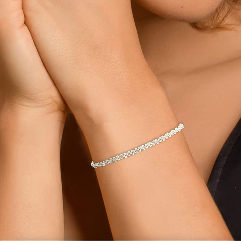 Sparkling bracelet for women uses the Italian diamond cutting process to enhance its beauty and sparkle. The Italian cutting process is known for its precision and attention to detail, resulting in a highly reflective and brilliant finish.