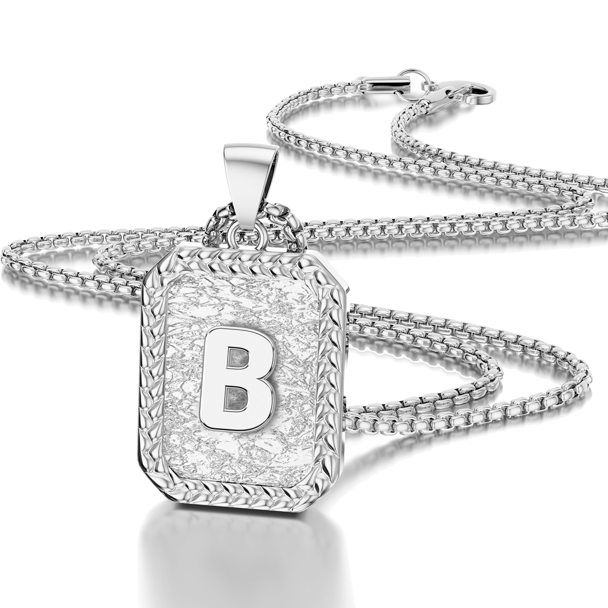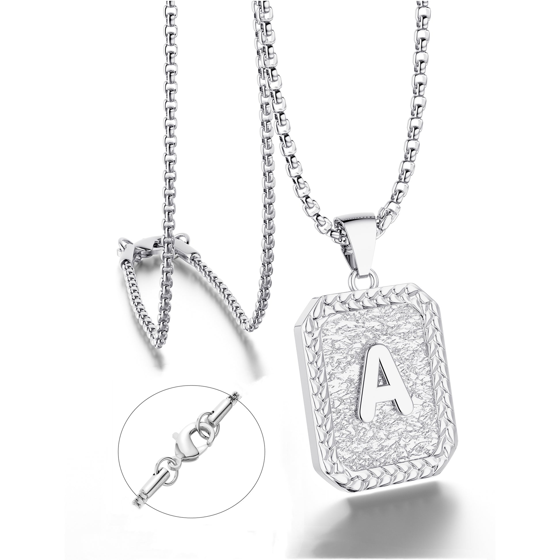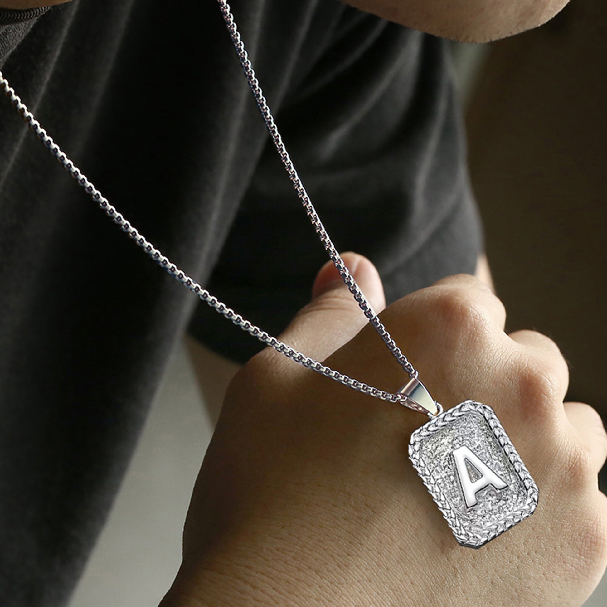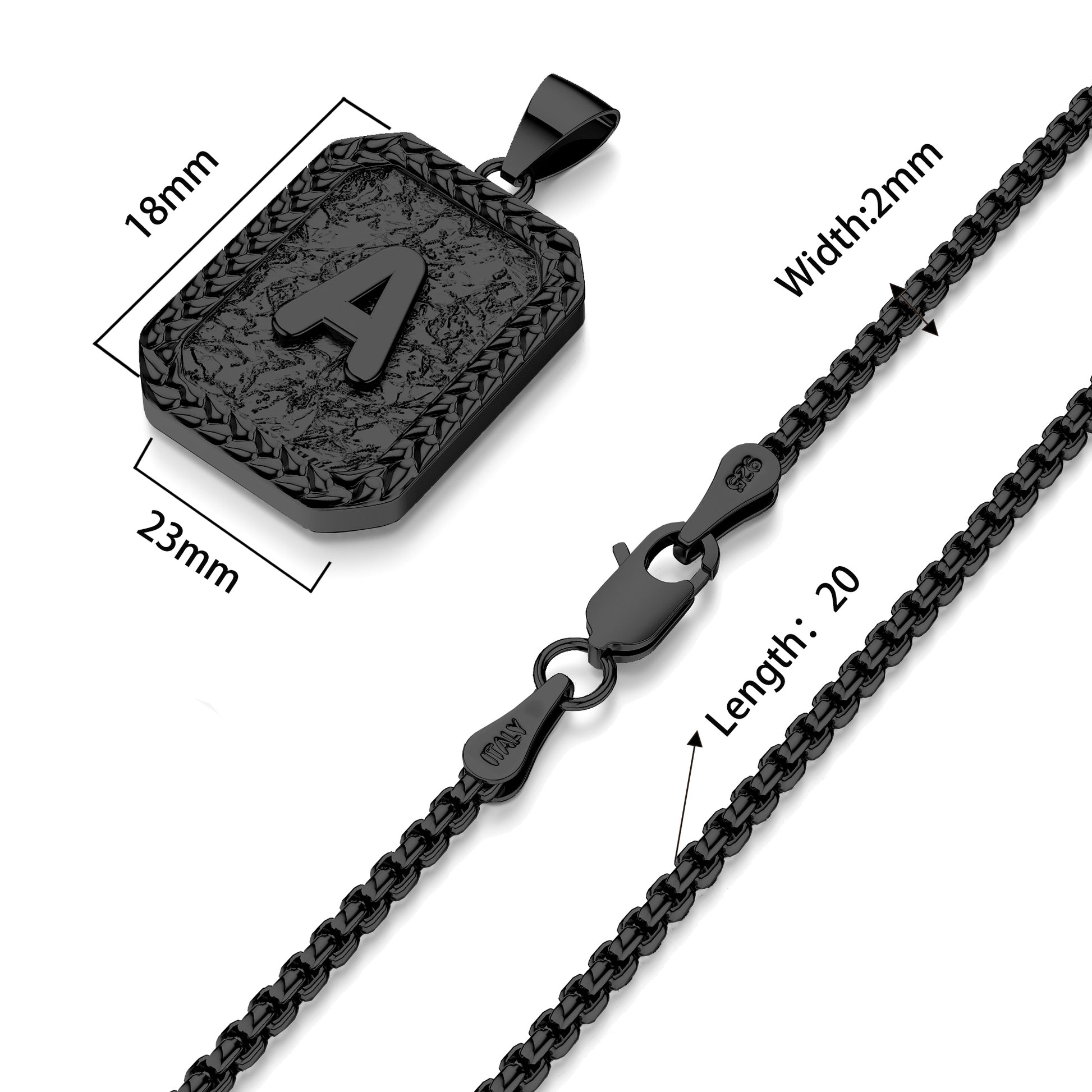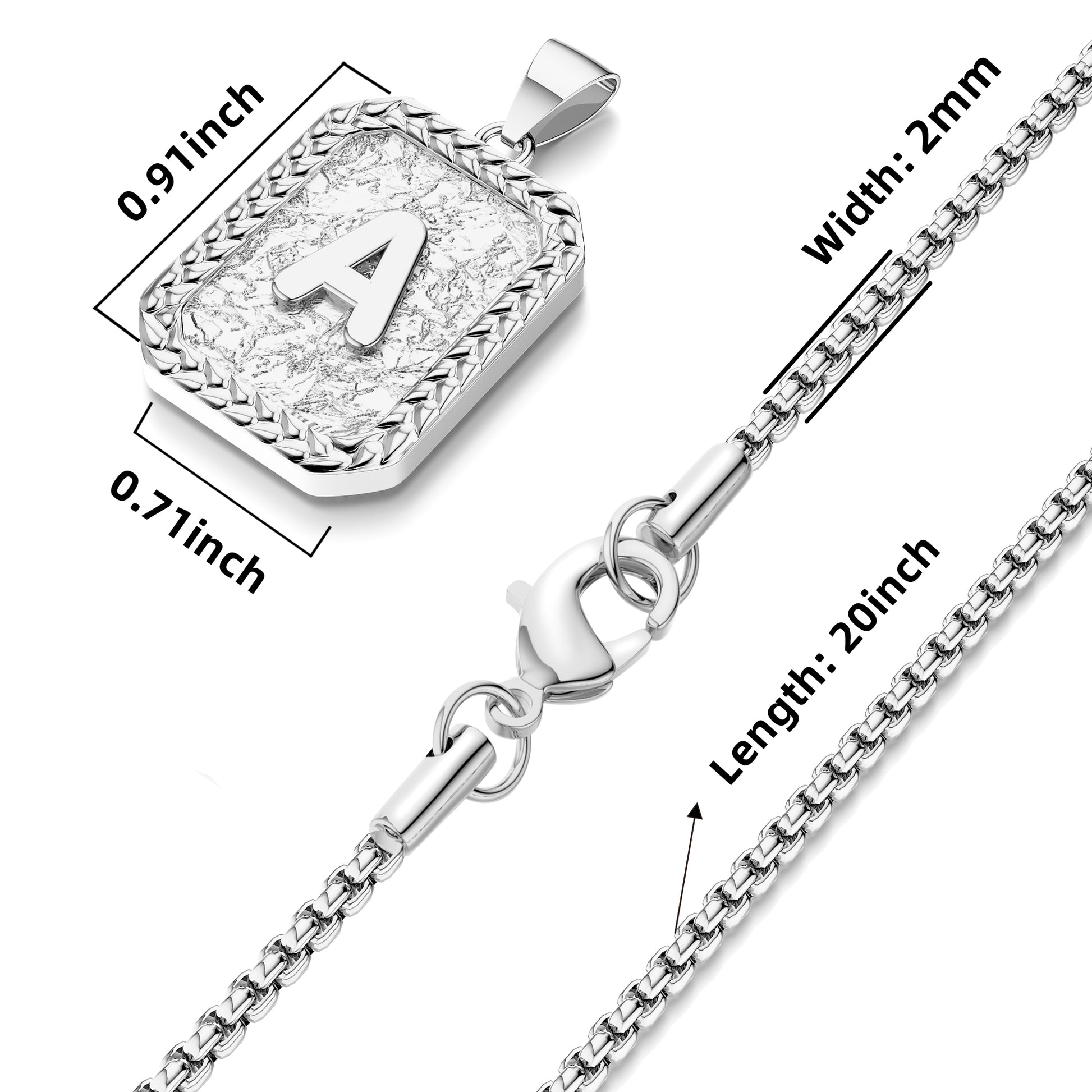 [Size and Material] Box Chain Length: 50.8 centimeters, Width: 2.5 millimeters, Letter Pendant Size: 0.91 inches * 0.71 inches. Men's letter necklace is lead-free and nickel free. The initial necklace is safe and comfortable, non irritating to sensitive skin, and the smooth surface can effectively protect your skin.