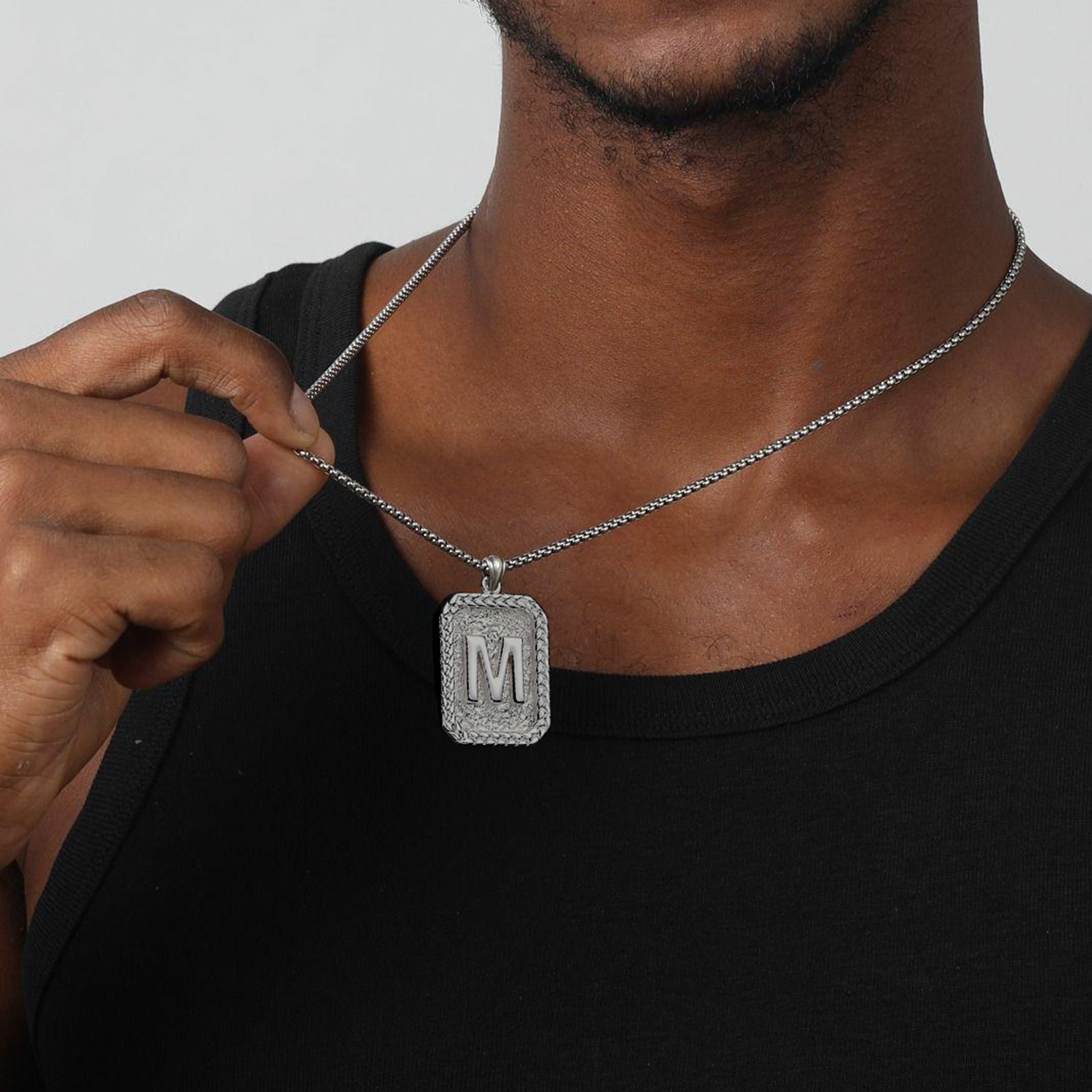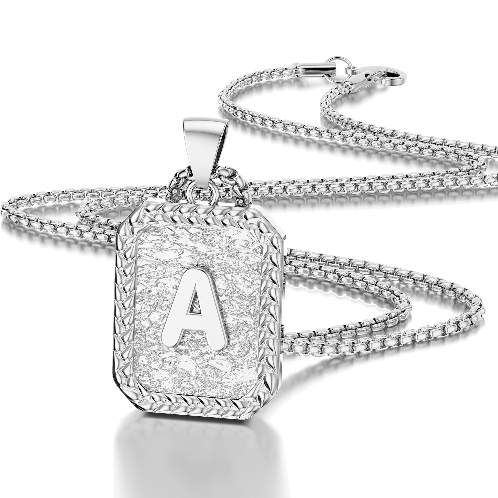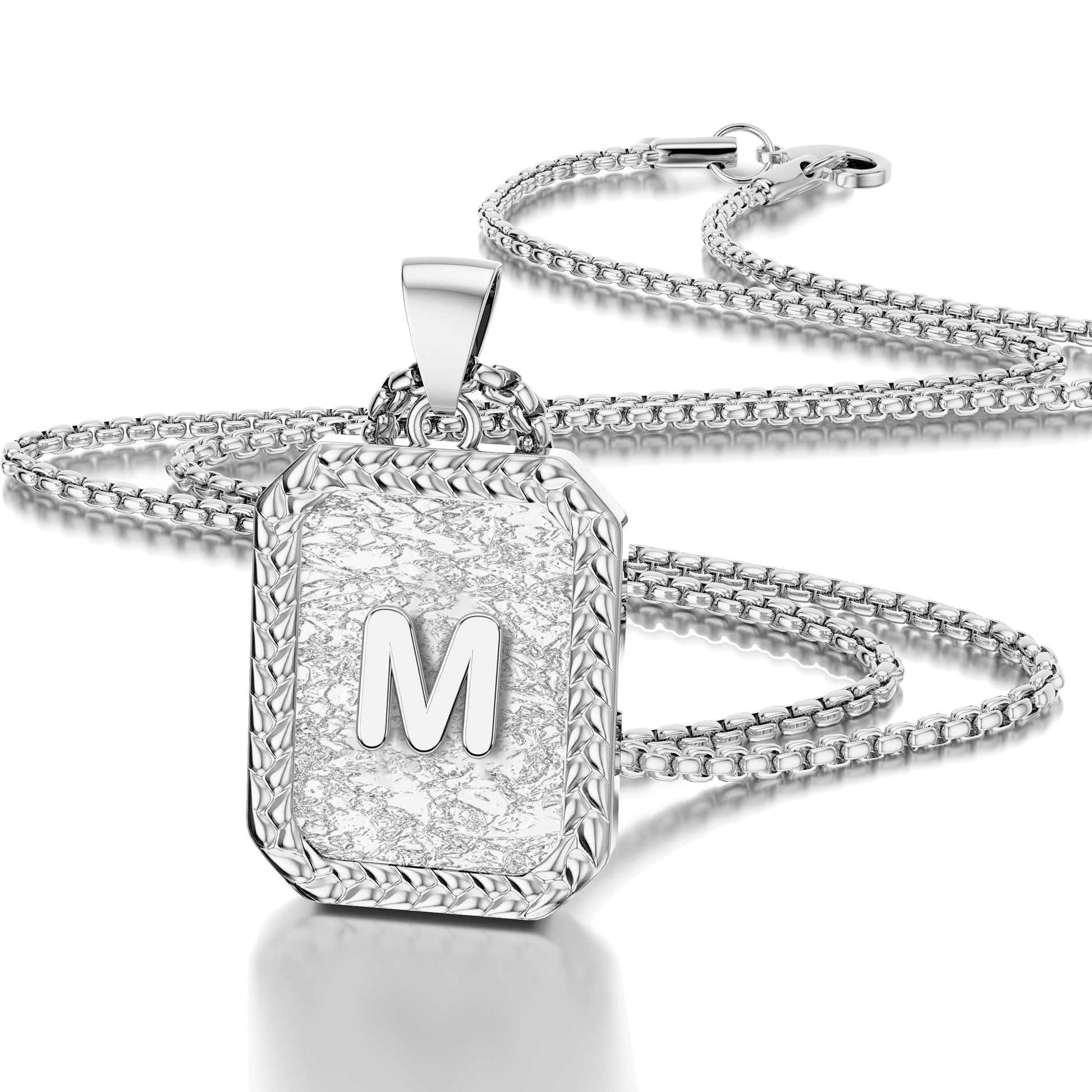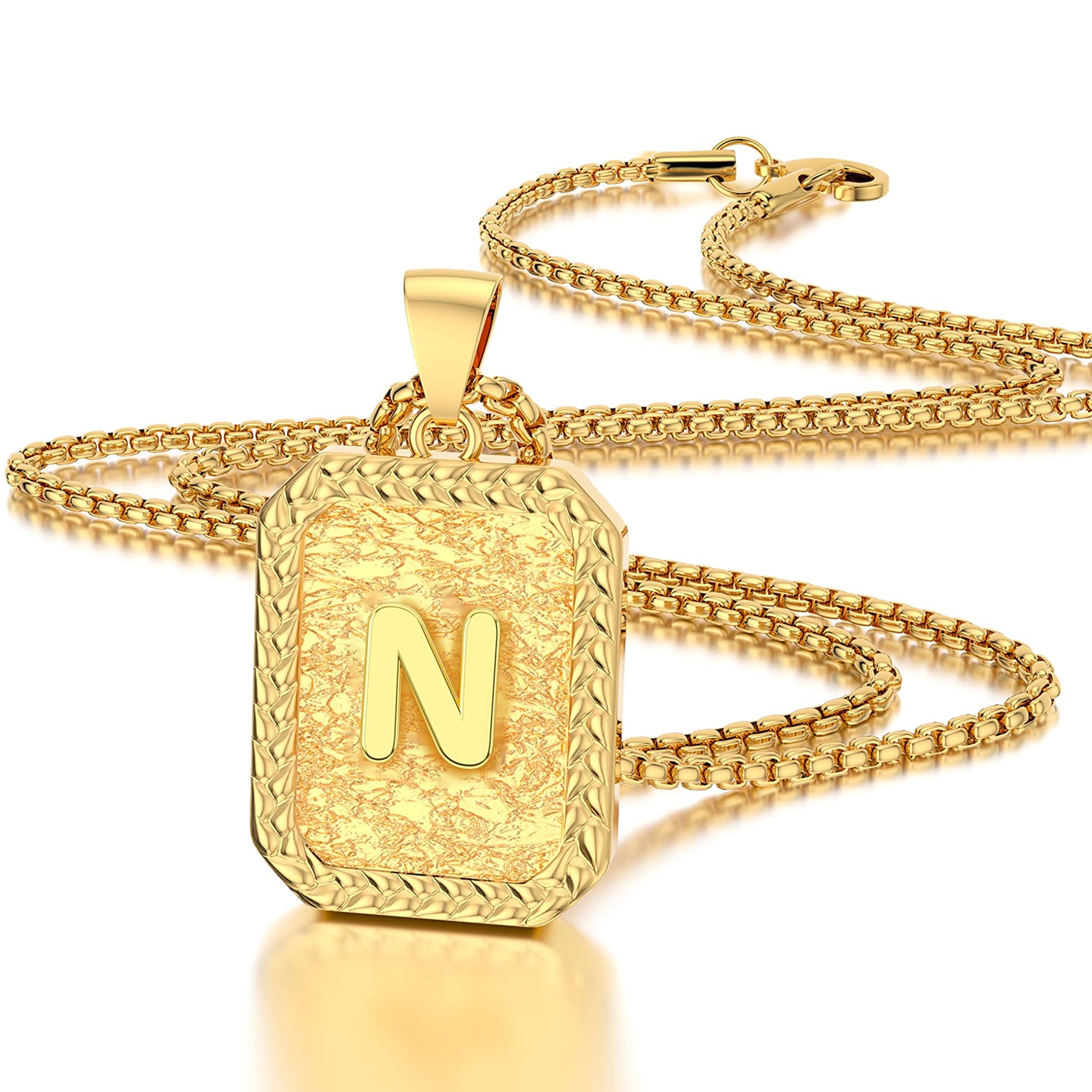 [Size and Material] Box Chain Length: 50.8 centimeters, Width: 2.5 millimeters, Letter Pendant Size: 0.91 inches * 0.71 inches. Men's letter necklace is lead-free and nickel free. The initial necklace is safe and comfortable, non irritating to sensitive skin, and the smooth surface can effectively protect your skin.
